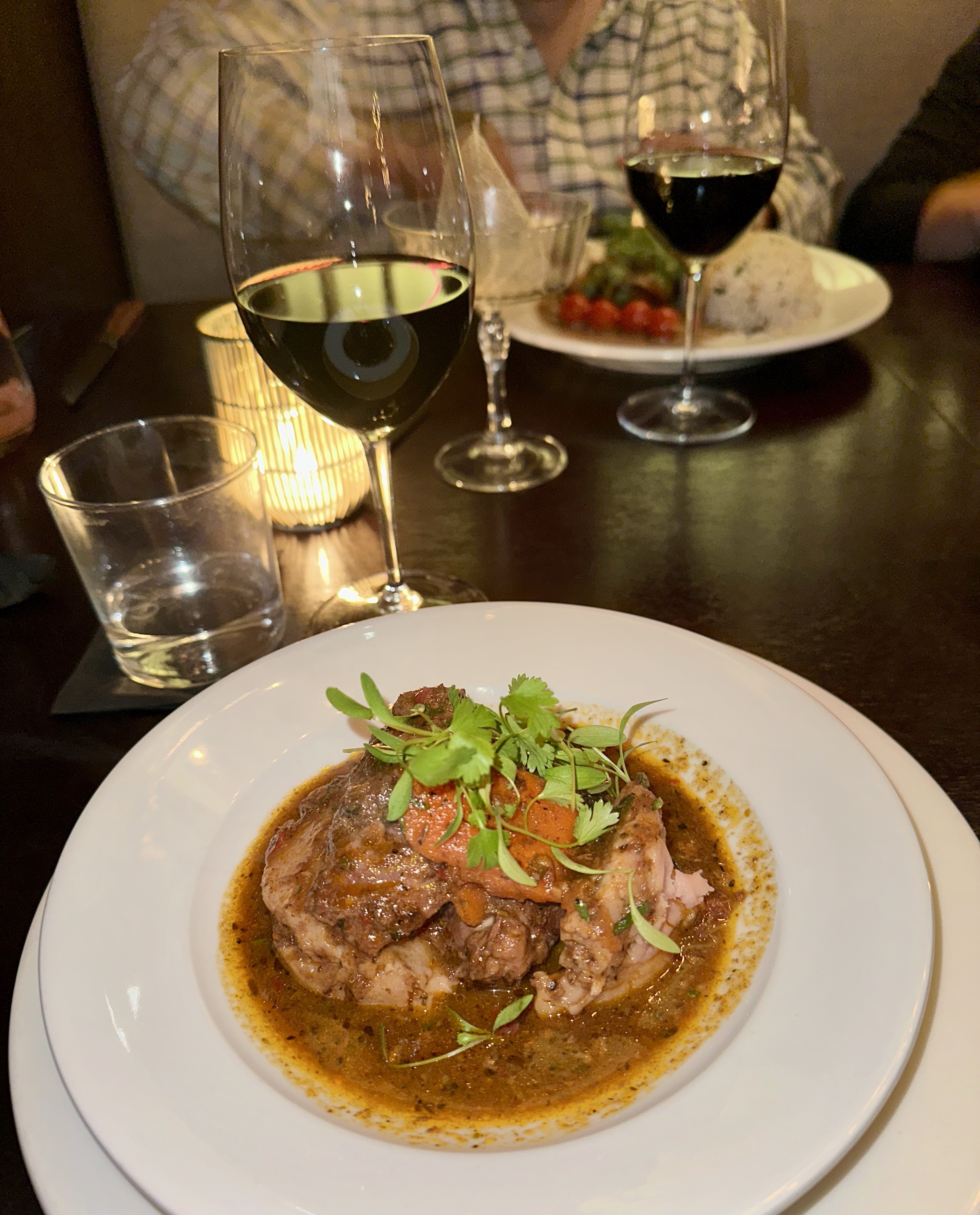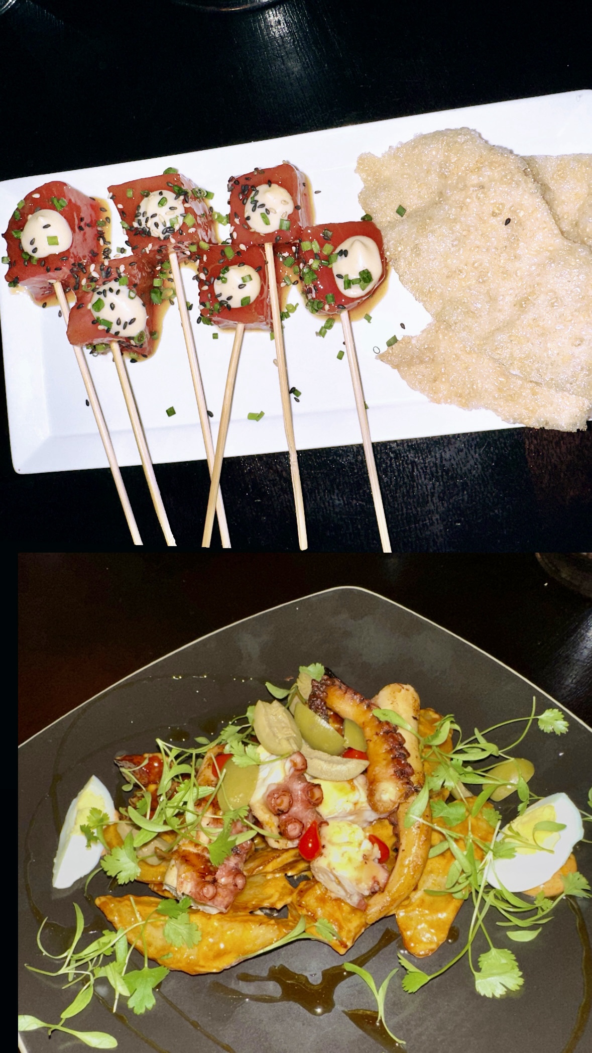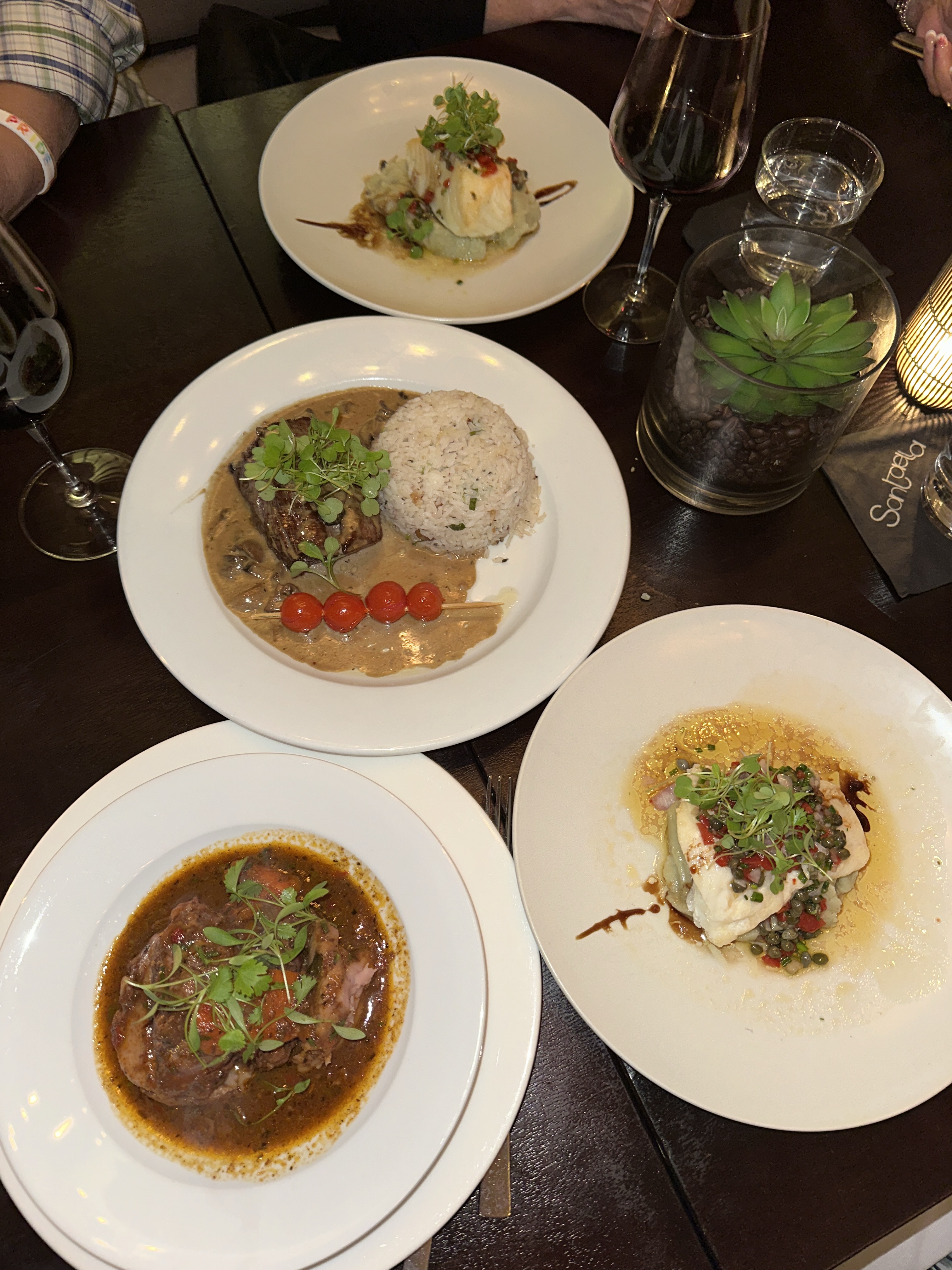 After dessert we decided to head back to the hotel and lay out by the pool for a bit. It was overcast and cloudy but after all the walking I needed to relax and lay out. Iris ended up going in the pool and was like a fish doing laps back and forth – she was cracking me up. Eventually we went upstairs and got ready for dinner. Tonight we were going to Santaella which was rated as one of the best restaurants in San Juan, I was very excited. The restaurant was located right in La Placita de Santruce and was very unassuming from the outside, but as soon as you walked in the vibe was upscale modern, and it smelled delicious.