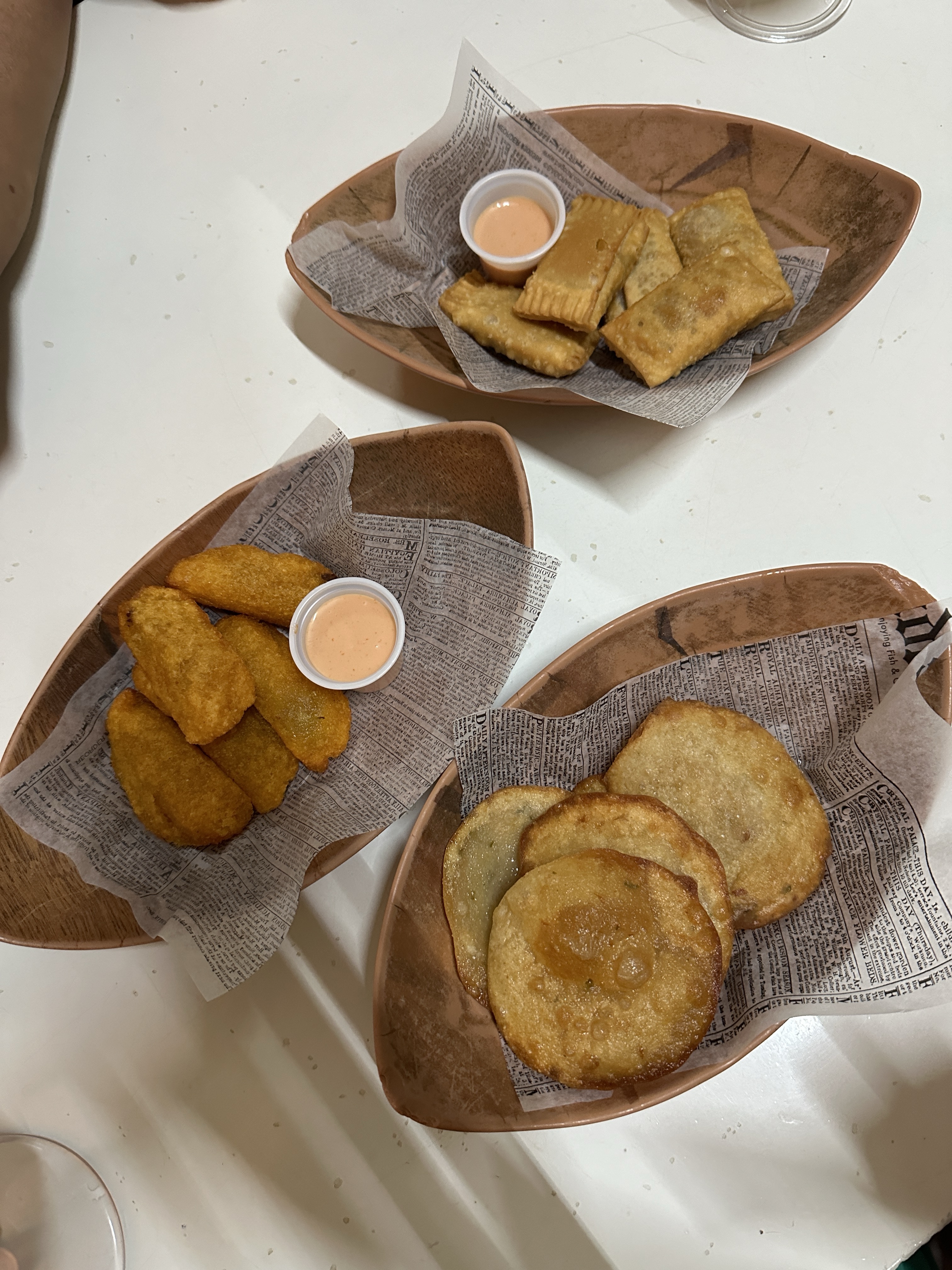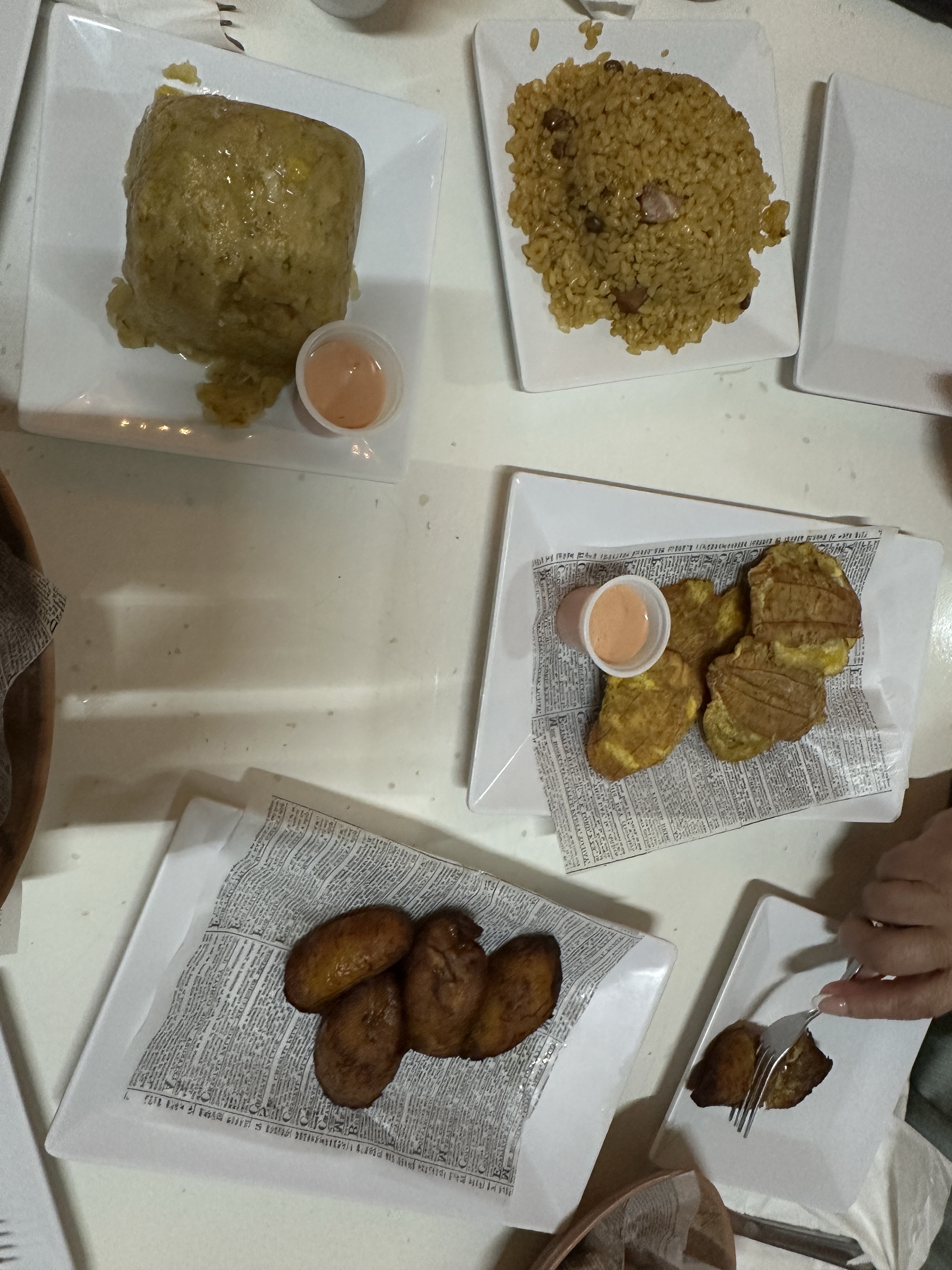 We freshened up, changed, and ubered to Old San Juan for lunch. Our destination was Deaverdura but upon arrival the line was around the corner. Luckily I noticed we passed El Jibarito on the way there which was another place that I read about, so the uber dropped us at the corner and we walked two blocks back. By this time it was 2pm and we had dinner reservations at 7:30, but all of us were starving. Instead of each ordering entrees we decided to do a tapas style lunch and share a bunch of local Puerto Rican appetizers that were on the menu. Our lunch for 4 included the following: Acapullia (beef stuffed inside a fried plantain), bacalaito (cod bites), empanadas de pollo (chicken empanada), tostones (fried green plantains), Maduros (sweet plantains), arroz con gandules, (yellow rice with pigeon peas), & mofungo with garlic sauce (mashed plantain). Although it was a lot, they were all little bites leaving us satisfied but not overly full. My favorite was the acapullia.