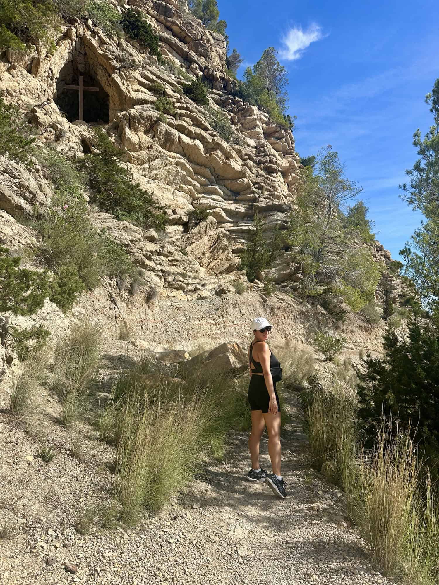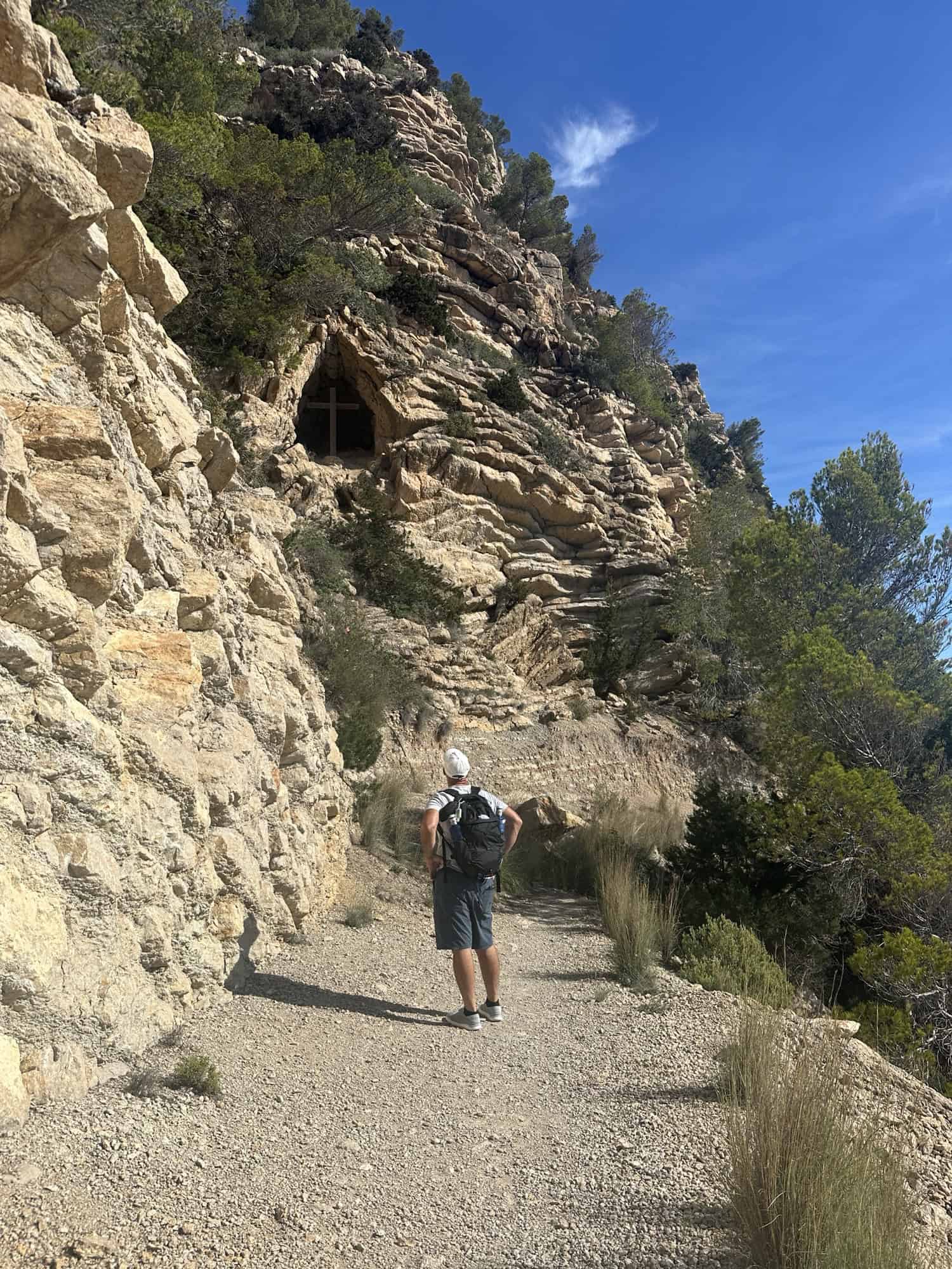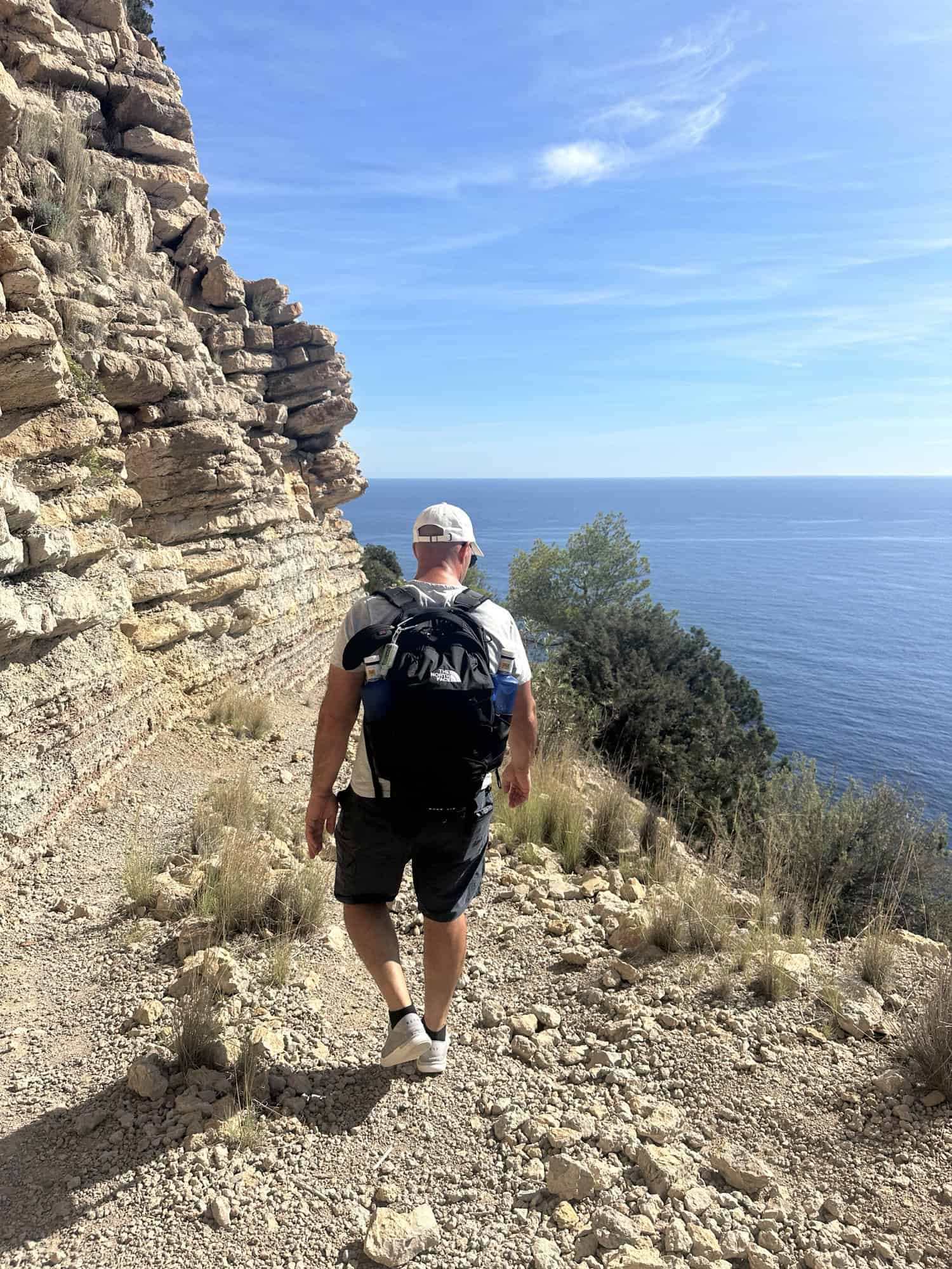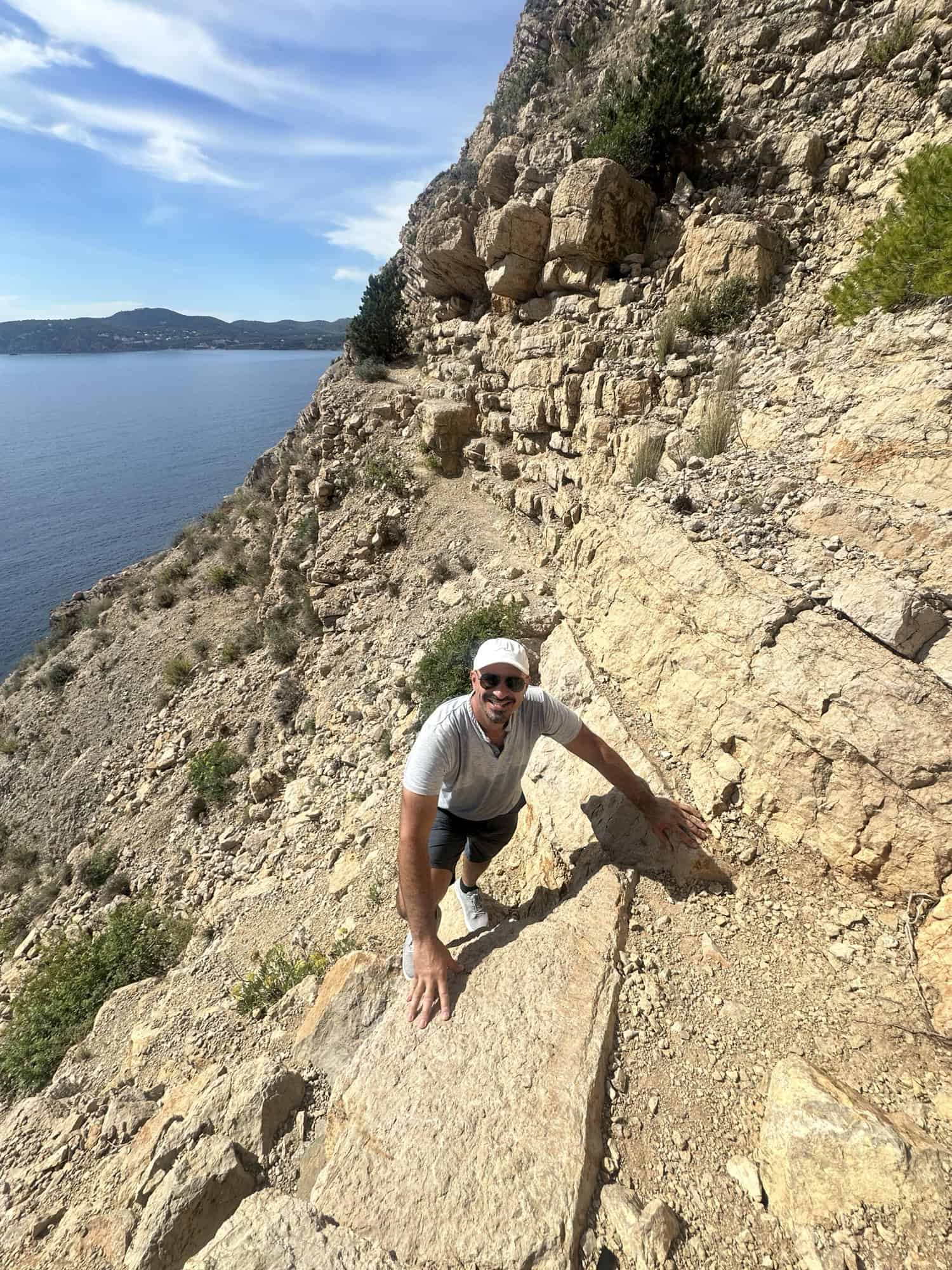 We hopped on our bike and drove 40 minutes north to Cala San Vicent. I had this hike saved in my AllTrails app and downloaded the map ahead of time which was necessary because there was zero cell service once we were 0.5 miles into it. The 3 mile hike was rated Hard on AllTrails which made me a bit nervous, but to Stelios’s point our Mt. Naxos hike was almost double in length and triple the elevation – We got this!!