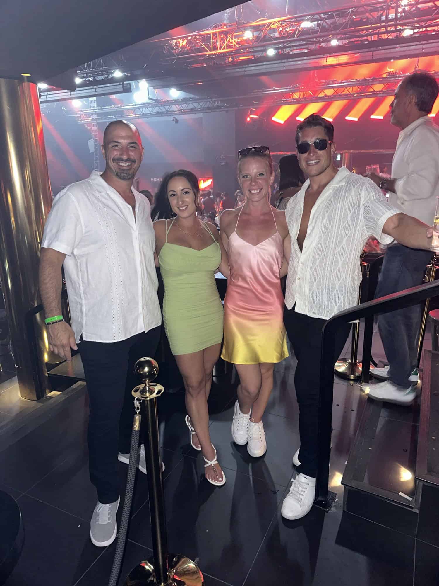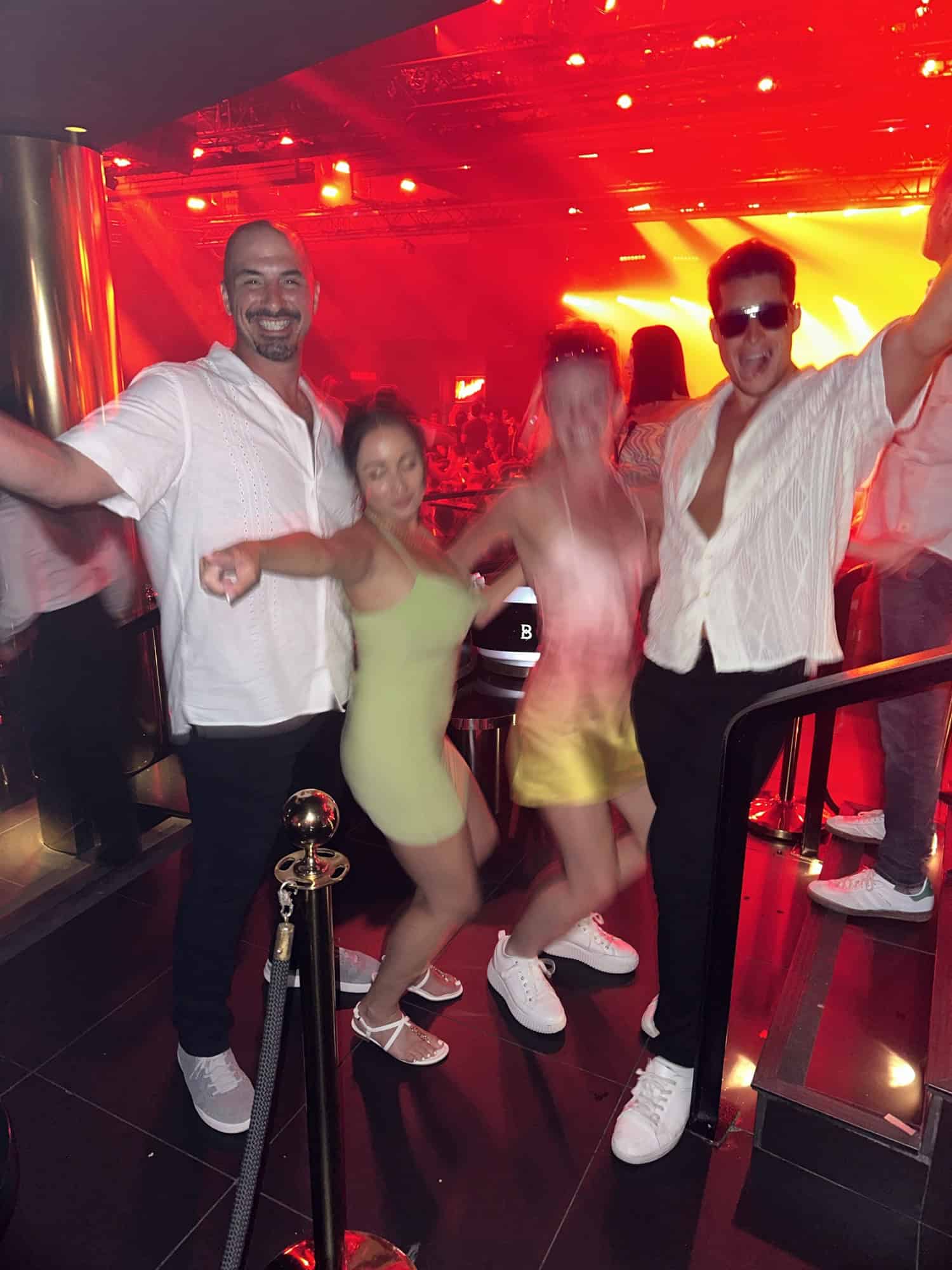 By 11:30pm we drove 20 minutes back to the hotel and changed into our club attire. It was our last night so we had impulsively decided to go to the closing party at HI Ibiza where Fisher & Green Velvet were playing. Our friends Krista & Matt from back home were also on their honeymoon in Ibiza (what are the odds!) Krista had texted me earlier in the day and they were down to split a VIP table which worked out, because last minute tables were definitely more expensive. I messaged the Taste Ibiza team and we got a table for 4.