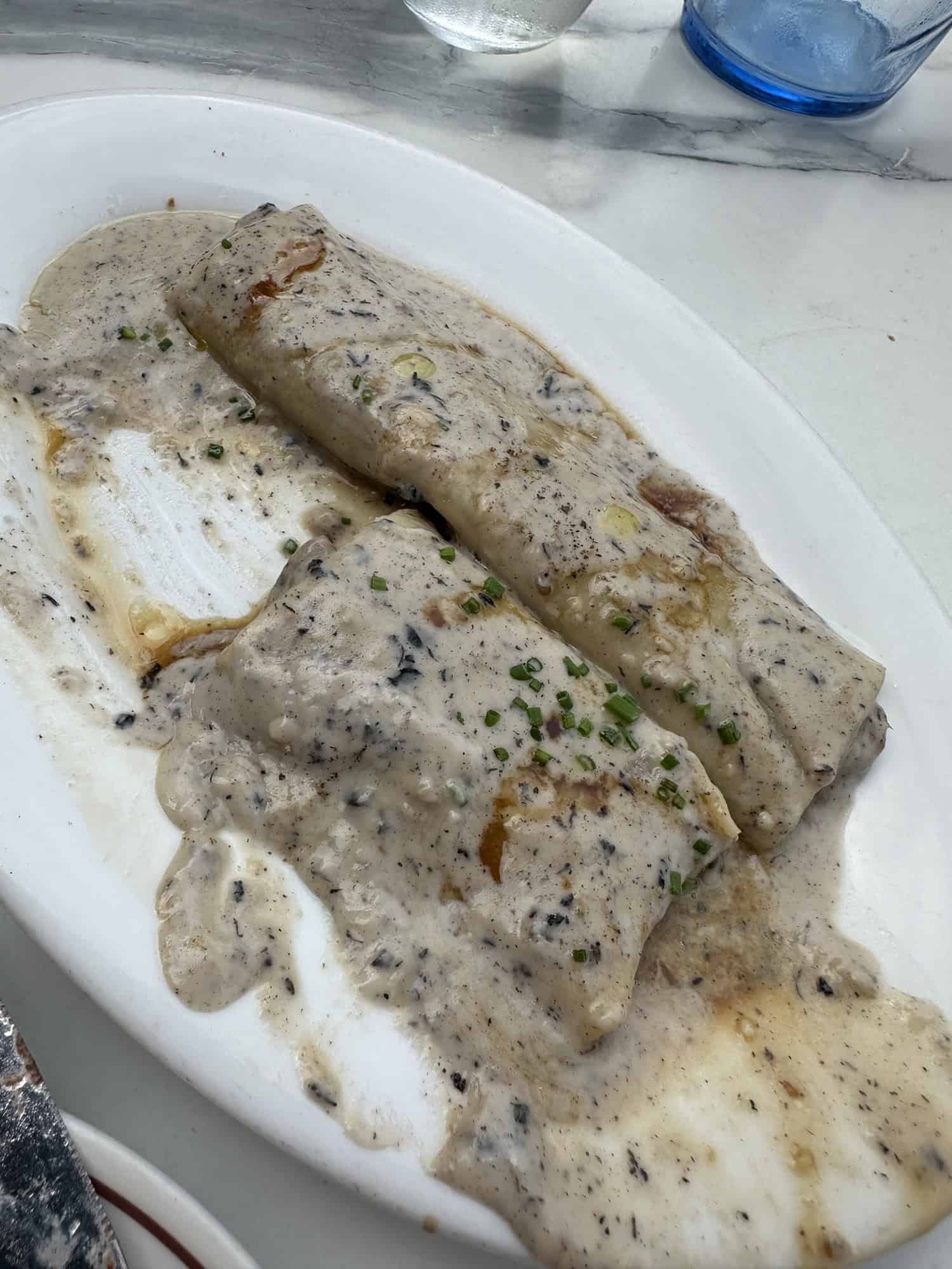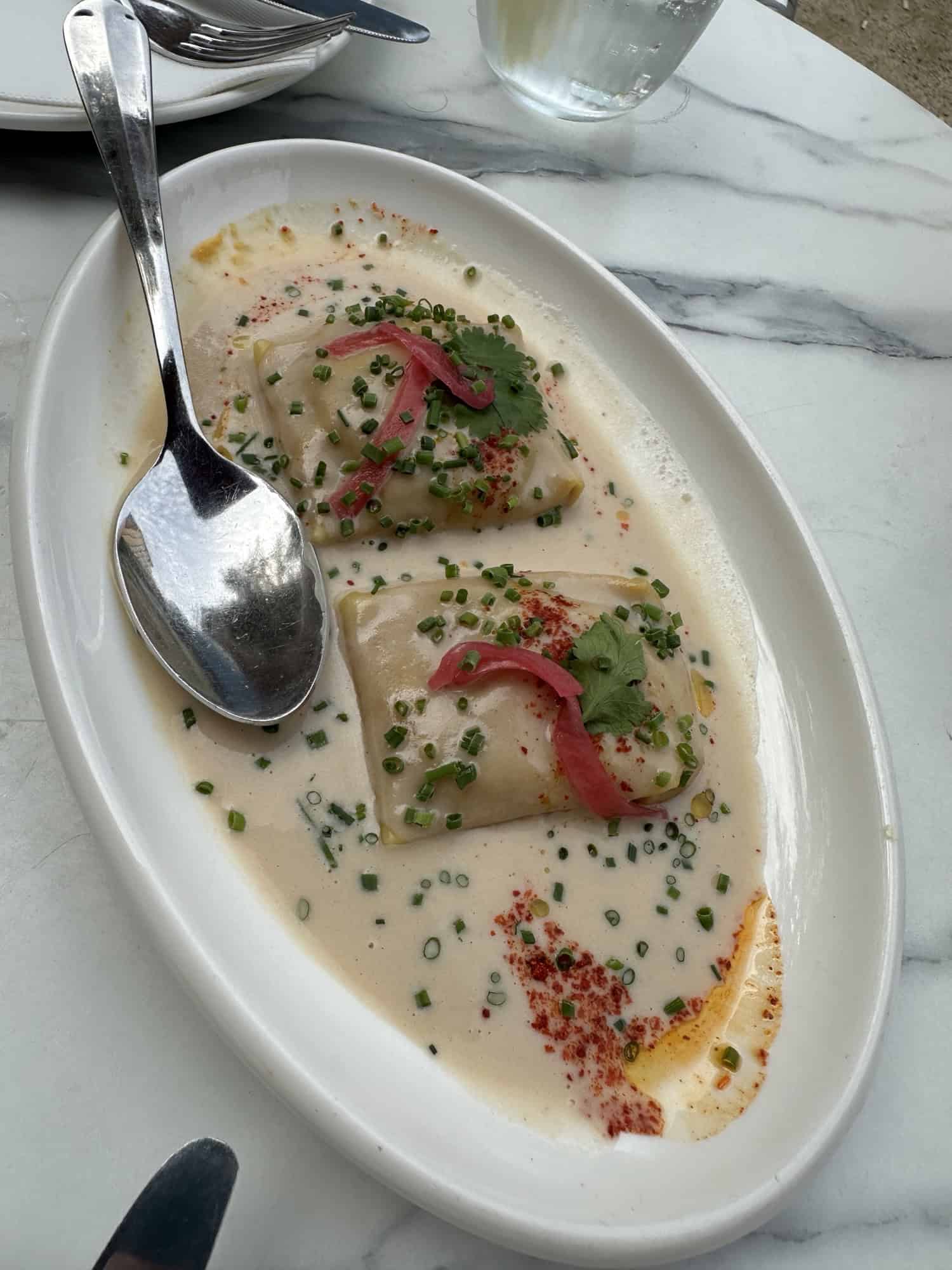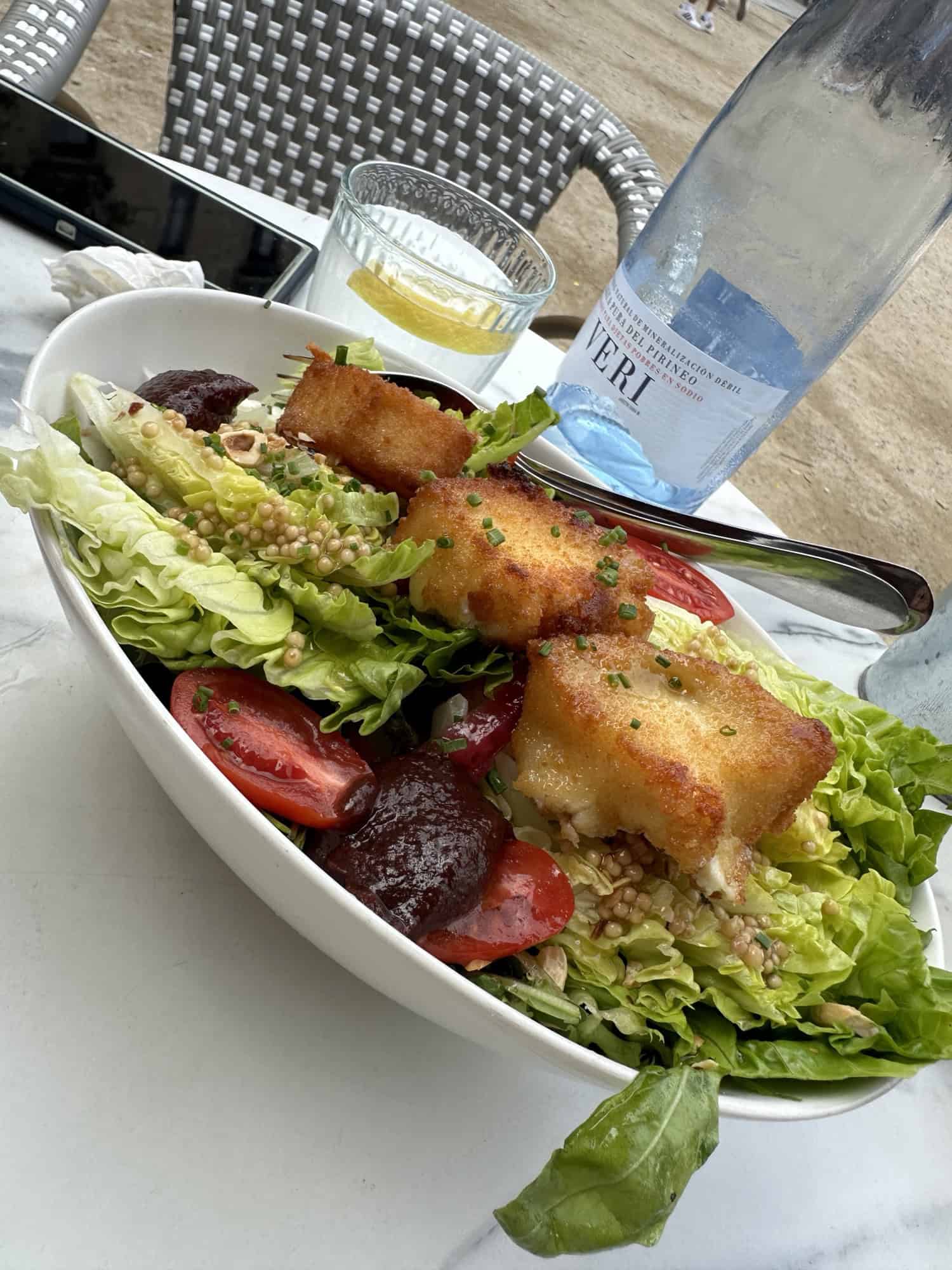 This morning I slept in until 11am while Stelios woke up at 9am to go for a morning stroll and explore the city. He brought me back some hot green tea and I mustered up some energy to get ready for the day. We decided to walk towards Betlem, a tapas restaurant recommended to us by my friend Ali. We grabbed a table for 2 outside to people watch and enjoy some local tapas. There were a lot of people with dogs in the square and it is wild to me how many dogs are off leash and well behaved in Spain. They just prance around the square not bothering anyone and casually folllowing their owners. I wonder if dogs in Europe are more well behaved because the environment and the people are more relaxed? In America it’s very rare to see a dog off leash and not barking all the time when other people or dogs pass by. The tapas we ordered were delicious, the only thing missing was enjoying it with a nice glass of wine. We ordered the goat cheese salad, crab ravioli, veal cheek cannelloni, and the local Catalan cheese and honey dessert that I forgot to take a picture of.