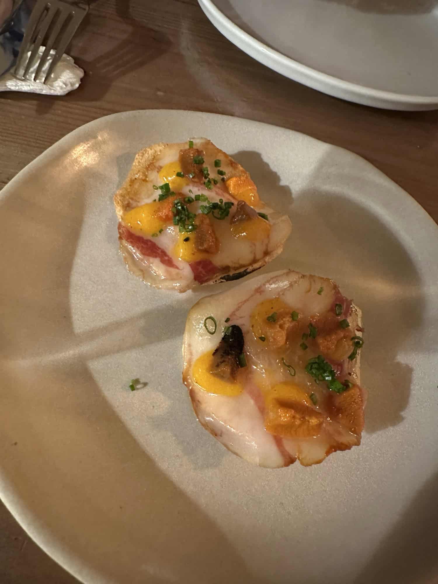 - Dinner was at Besta Barcelona, a Michelin restaurant that specialized in Seafood. We decided to order a bottle of white wine to share that would pair well with the fish forward tasting menu. I would later regret having the wine in the morning. The dinner was excellent and I was most impressed by the skate cheeks in bechamel sauce. Back home when my dad catches Skate he throws them back, so I asked the chef how they filet and prepare them here. He was shocked we throw them back in the states and told us in Spain the cheeks are a delicacy and people also eat the fins, but they are very hard to filet. I took some notes from the chef so we’ll have to see if Captain Mike can figure out the filet process next summer. After dinner we called it a night since I was low on energy and needed to rest. I couldn’t wait to kick this cold.