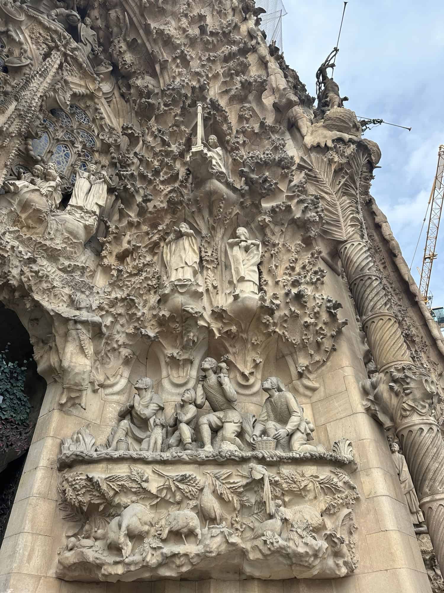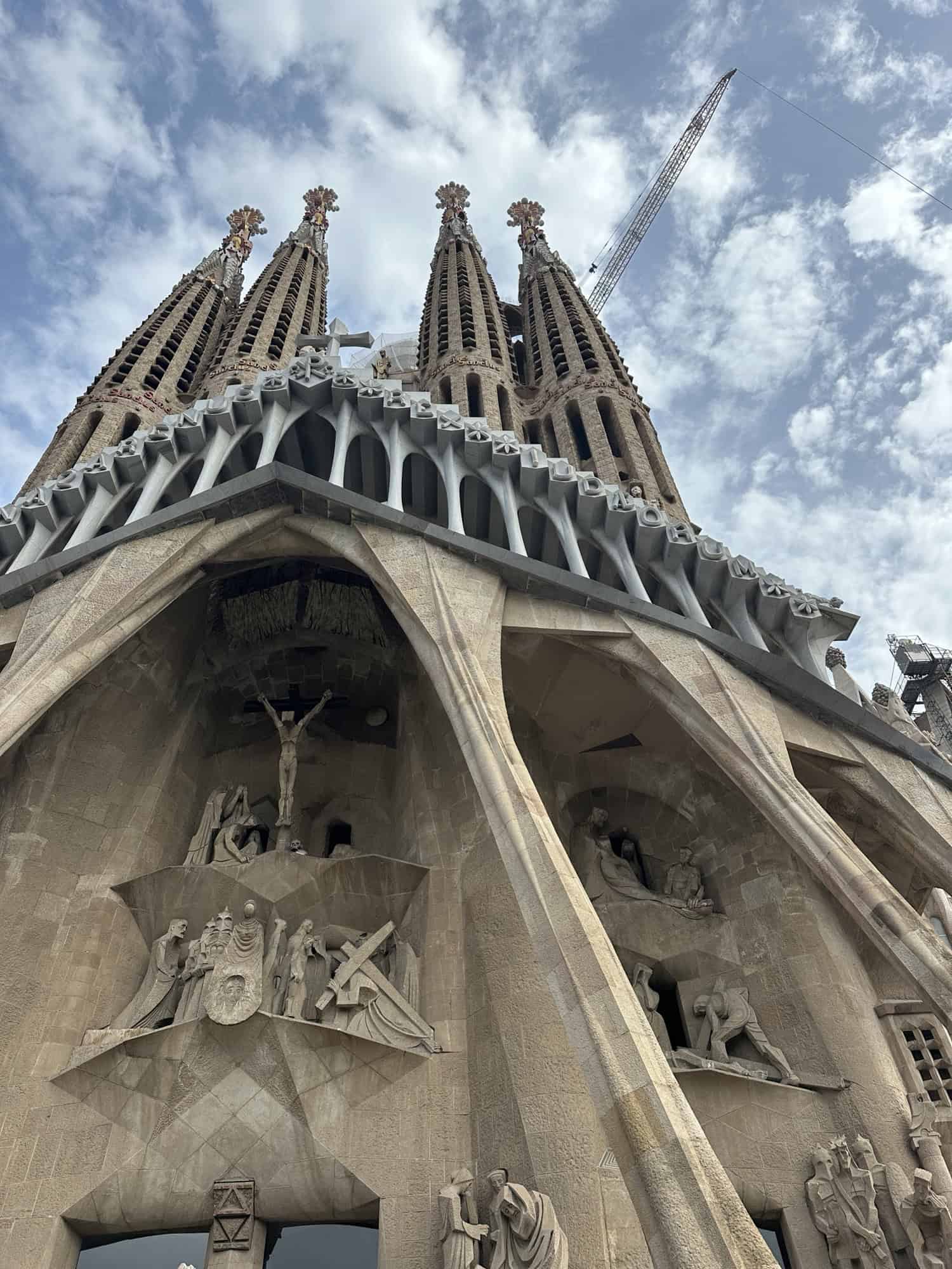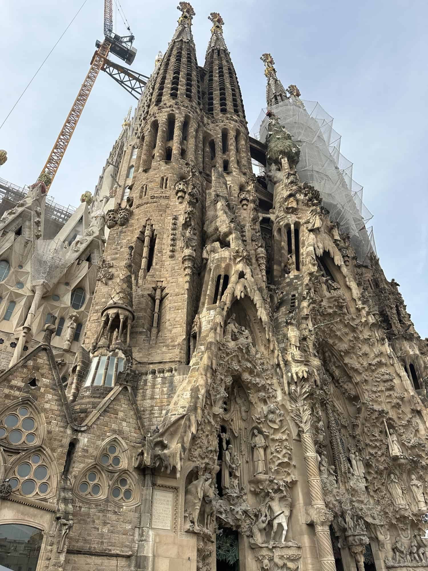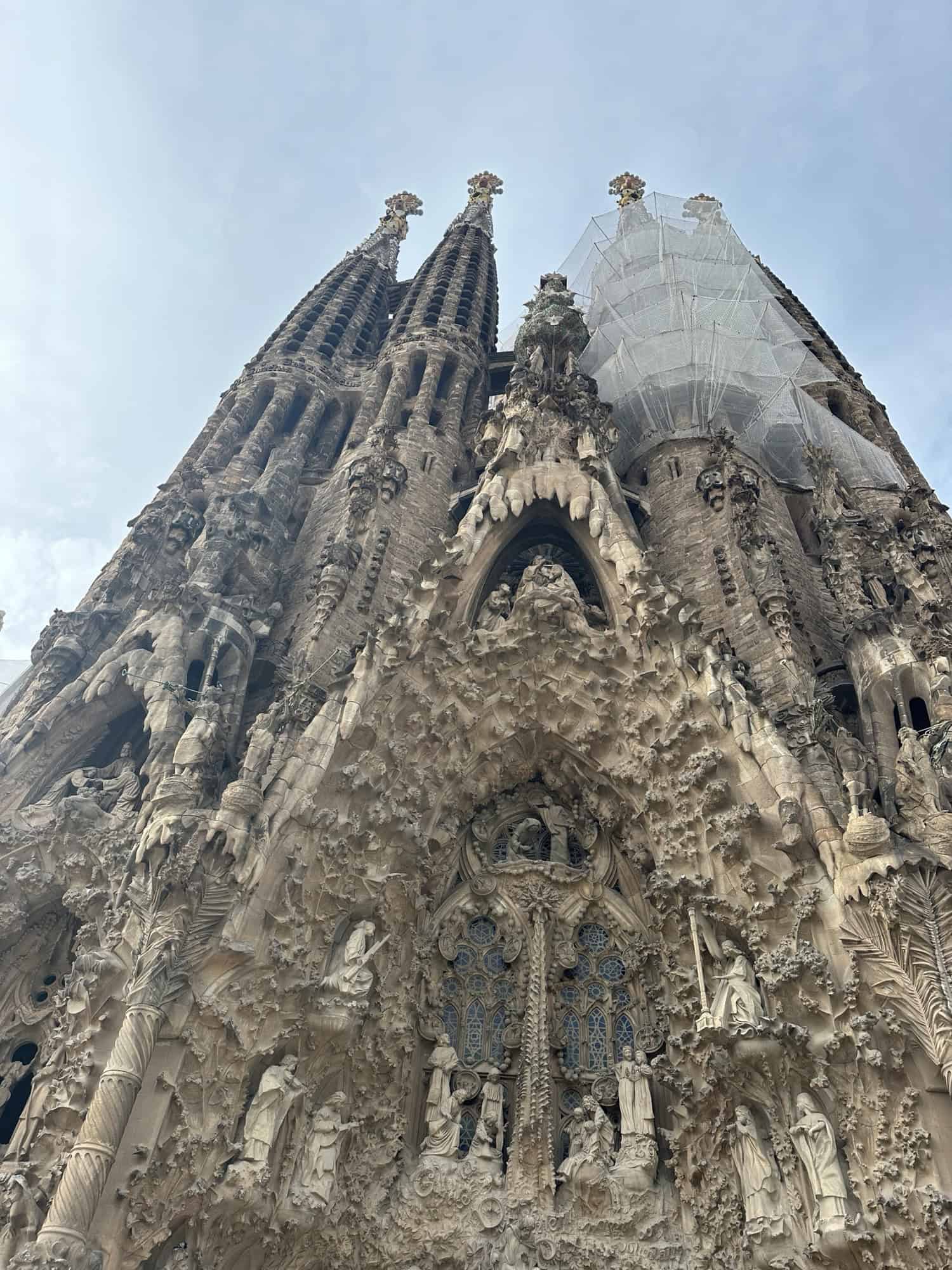 The outside of La Sagrada Familia is immaculate. You can see the original architecture from when Gaudi was alive is much more detailed than the newer sections being built. The outside of it is like a cement story, each section of the face of the building showcasing a different stage of Jesus’s life with other symbols embedded in the structure.