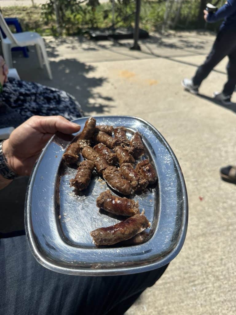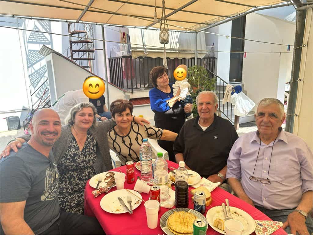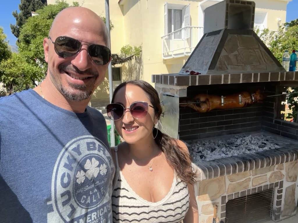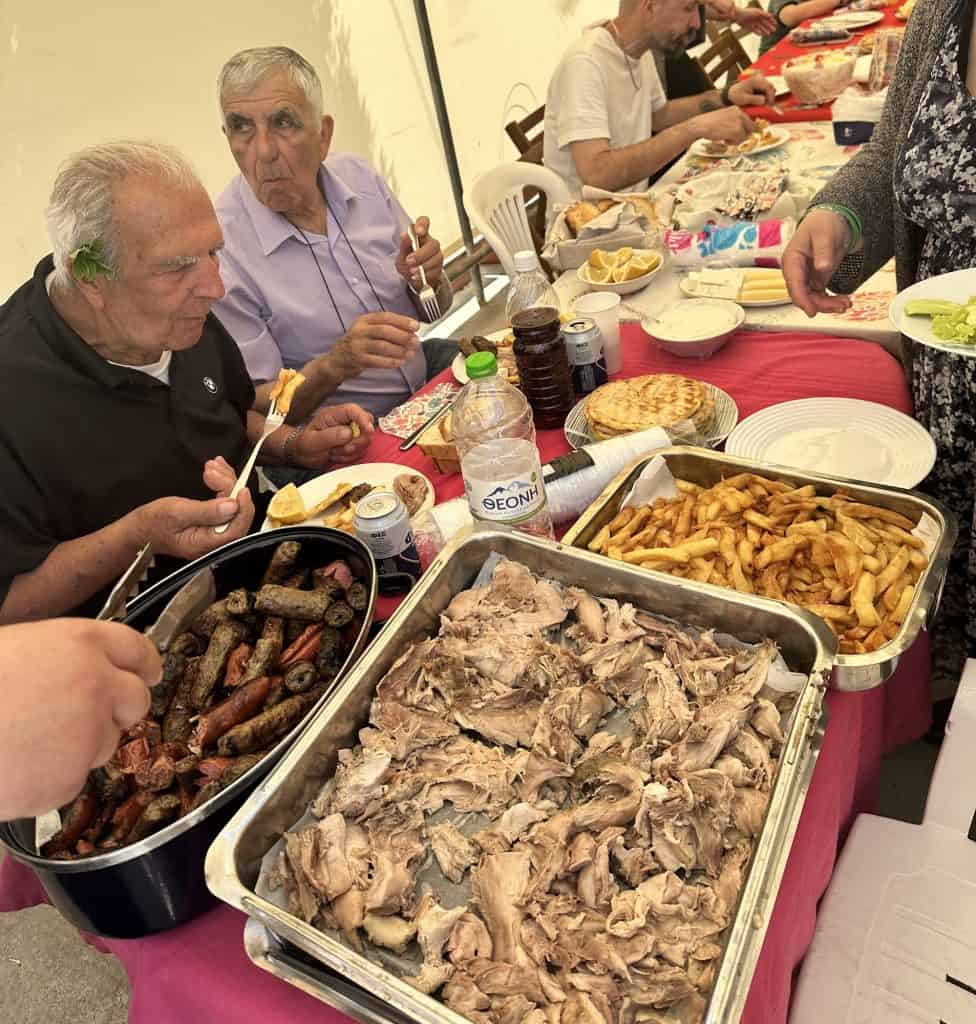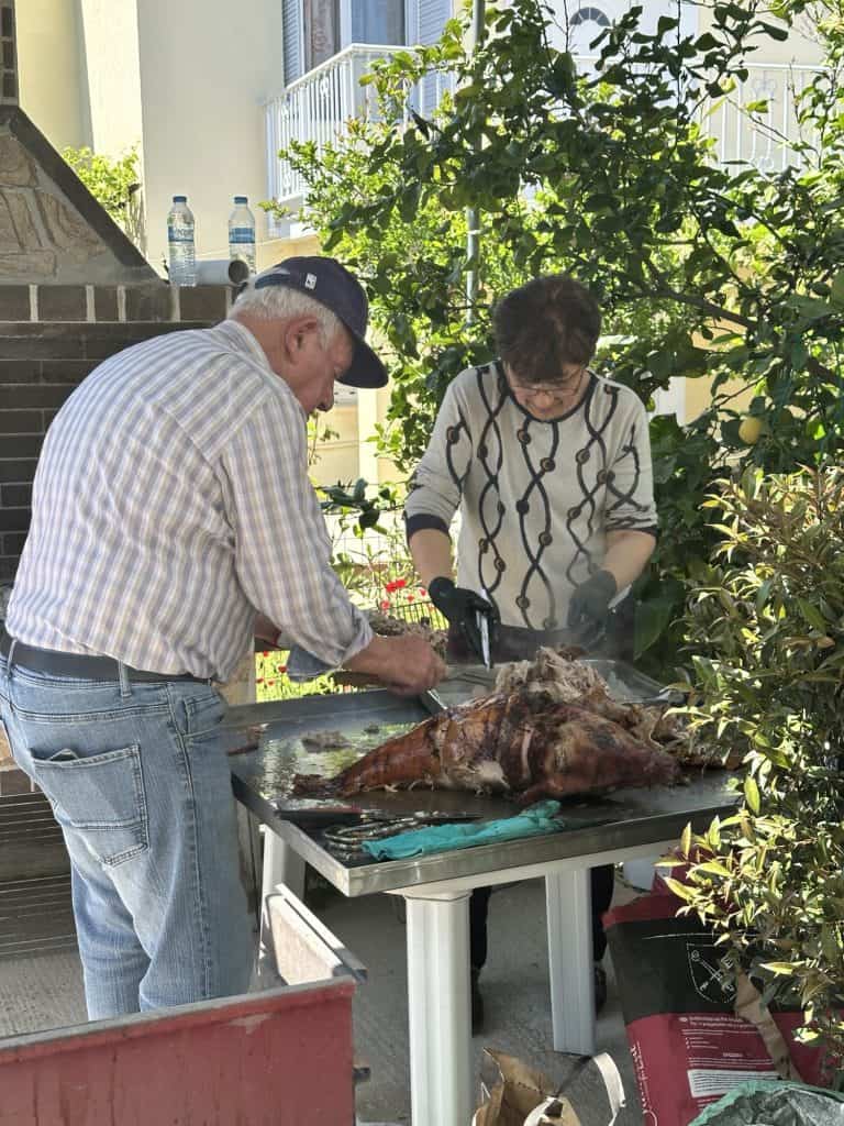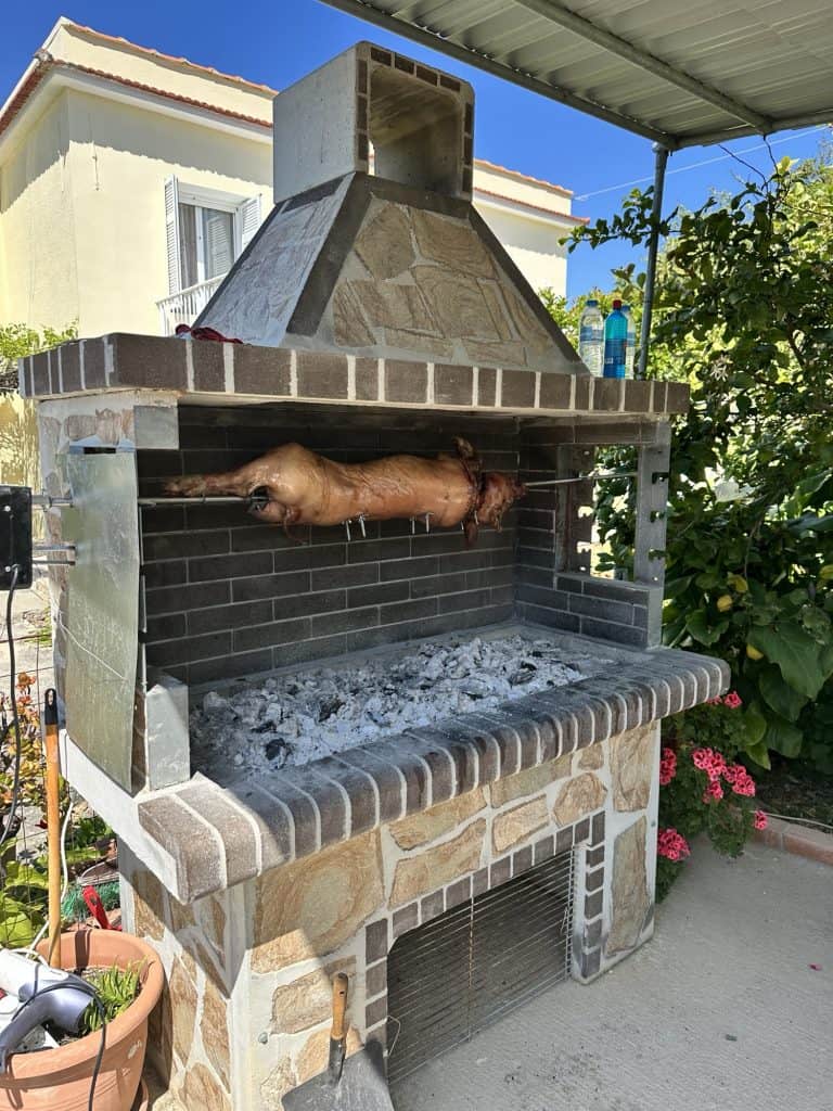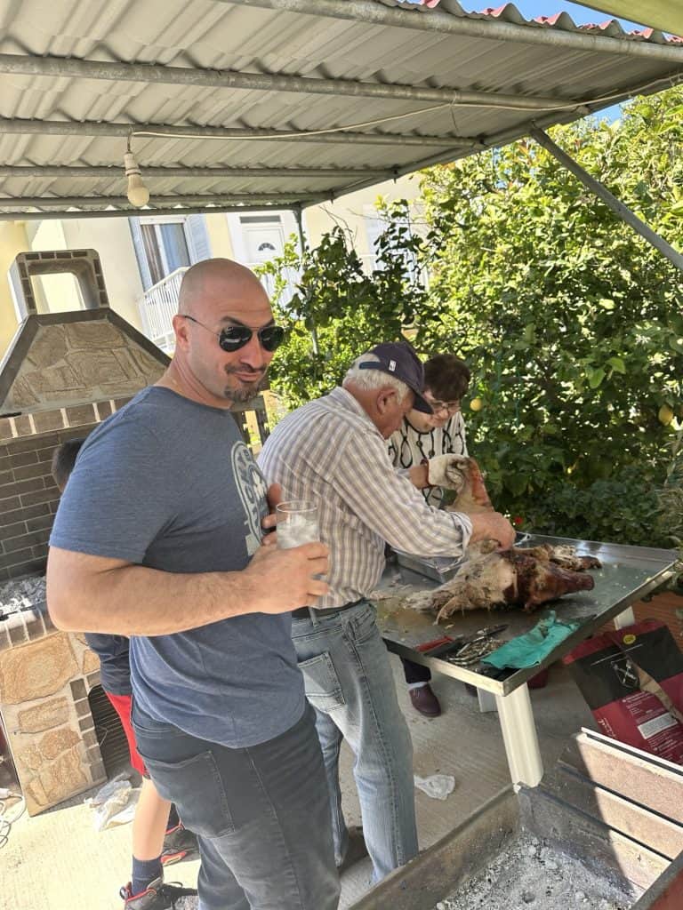 Back at the house the family started setting the table and getting ready to feast. The kids have officially ran out of pop rocks at this point but Tasos keeps dropping the loud dynamite bombs sneakily that the kids aren’t allowed to play with. He’s got quite the poker face too. I think I’m going to go partially deaf with all the noise bombs going off. I debated getting my earplugs to wear but I didn’t.