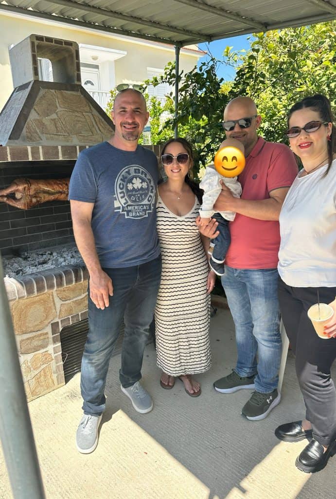 Happy Easter! I woke up at 10am and got ready for the day. Stelios and Leo had been up since 8:30am and were already outside. Today’s plan was a big family cookout in the backyard to celebrate Easter. The sun was shining and weather was perfect. Leo and his cousin Angelou were playing with pop rocks in the basketball court, while the rest of the family sat and chatted around the pig roast. Normally lamb is the traditional meal or so we thought, but this year for whatever reason they decided to do a pig roast because more people enjoy it. Either way I think anything they cook in that commercial roaster will taste amazing. Also the pig roast looked cool but I had to stop myself from looking at it when it turns all the way around and seeing the whole pig and its face on the stick because then I feel bad/weird about eating it. Ignorance is bliss 🙂