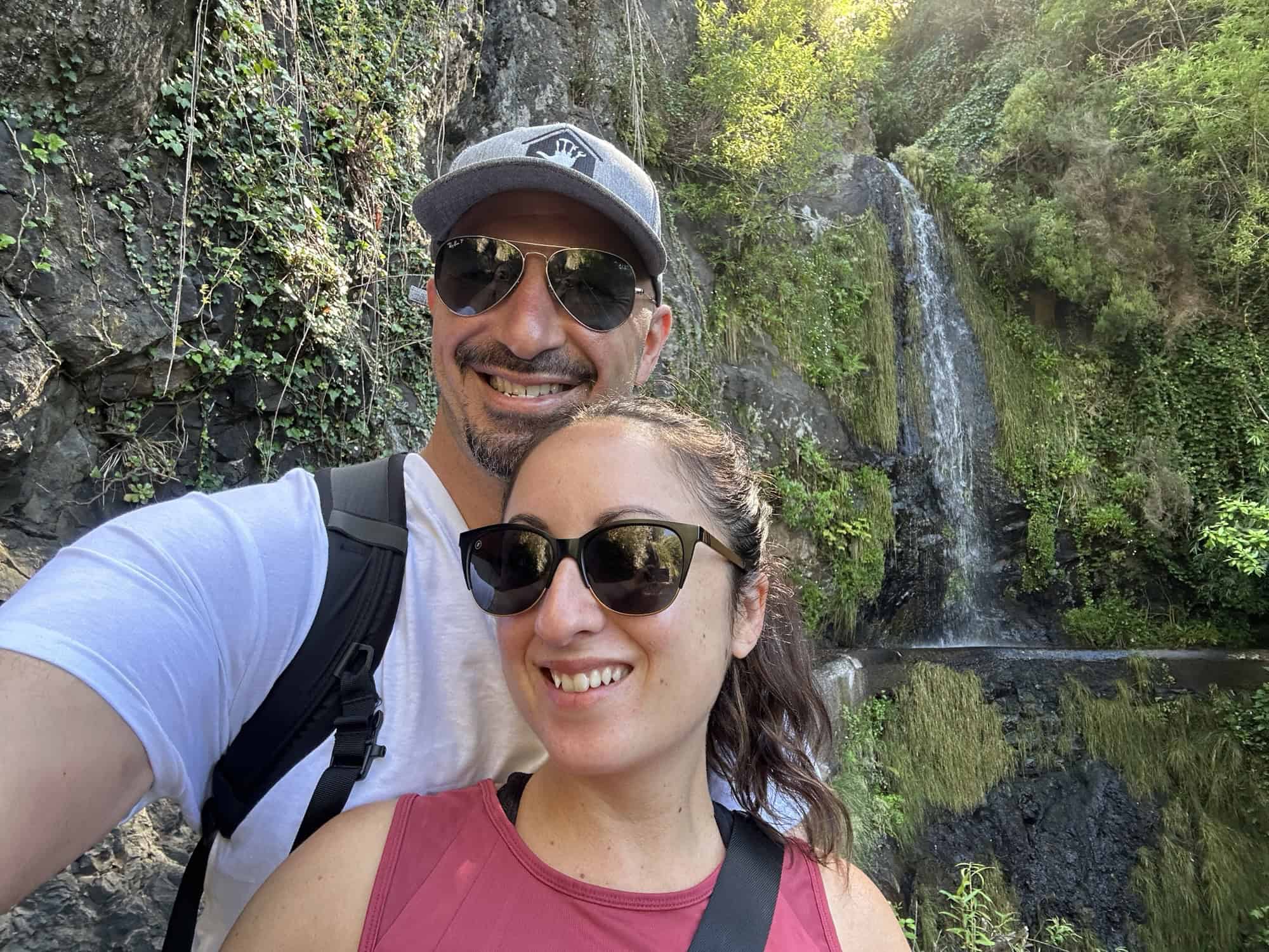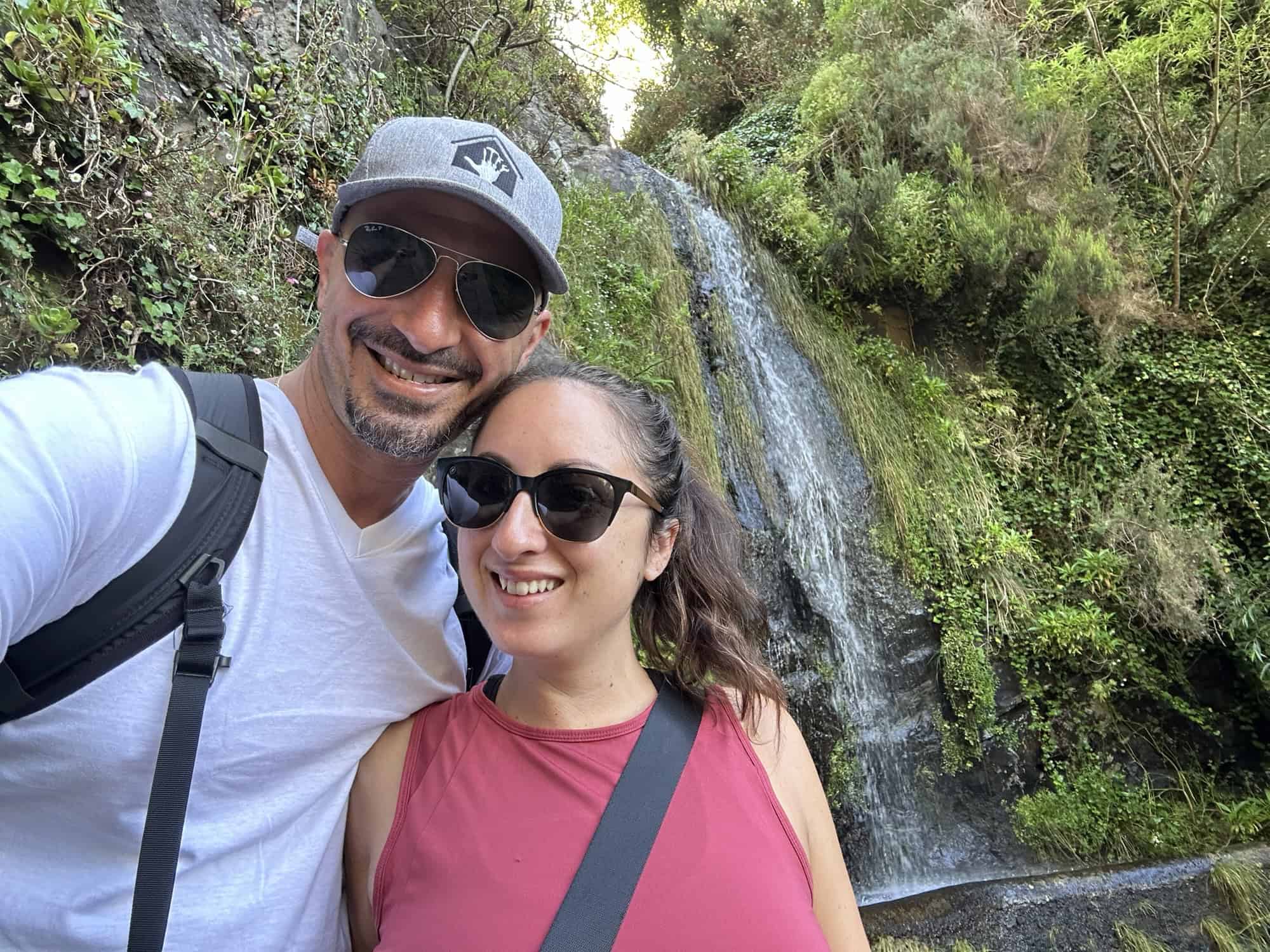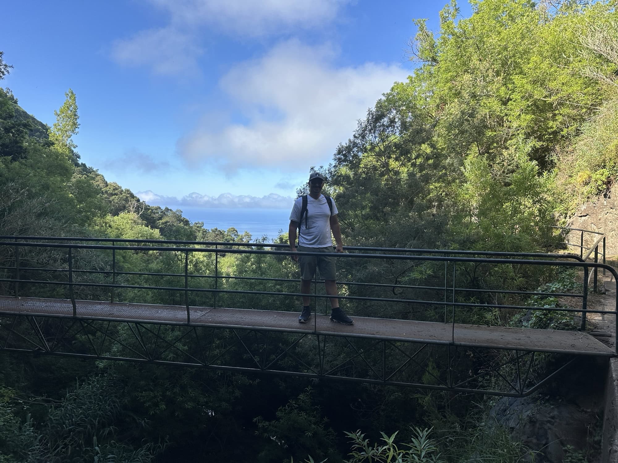 The drive to the Levada starting point reminded us of Sicily with the ocean in sight as we zipped around the highway and went through lots of tunnels going through the mountains to get to our destination. At one point the road became so narrow and steep we were both praying no other cars would come downhill. Stelios successfully maneuvered the car up the steep incline and we found a spot to park off the side of the road. The Levada walk was a perfect way to immerse ourselves in the nature of Madeira and we were the only ones on the trail. We walked over a sketchy bridge, passed by a waterfall, saw many types of flowers and agriculture, crouched through a cave, and even saw a cow grazing. The Levada path ended going into someone’s backyard so we stopped for a water break before turning around and going back the way we came to the car. Overall I think the irrigation channels are very impressive and it’s wild to think that these are all over the island. I wonder how long it took them to build this system.