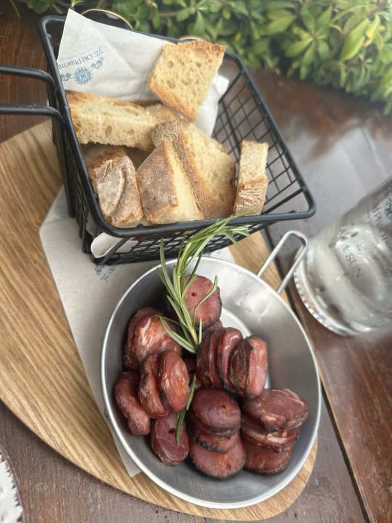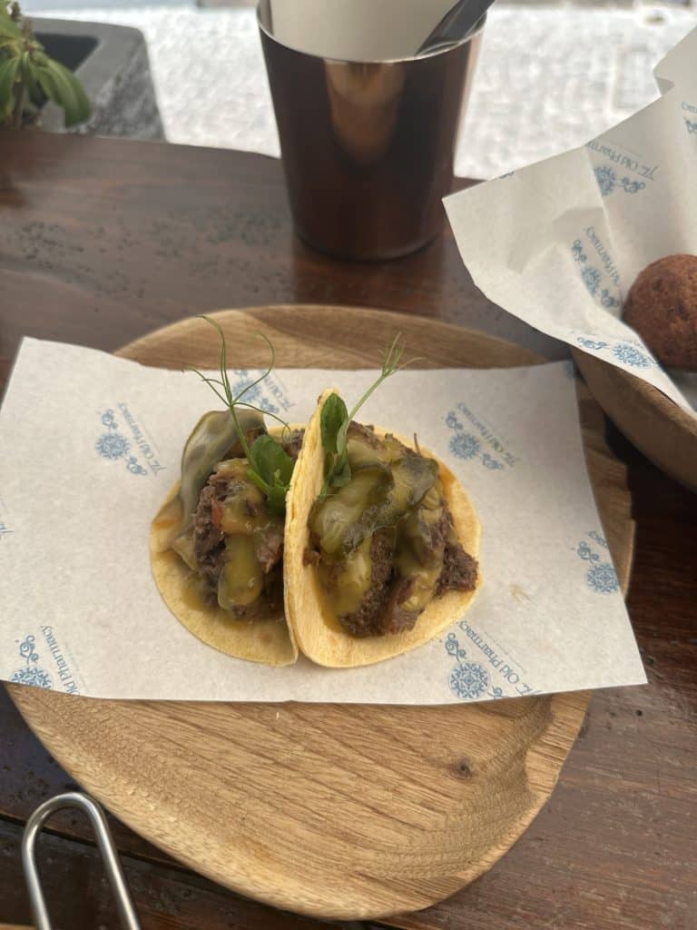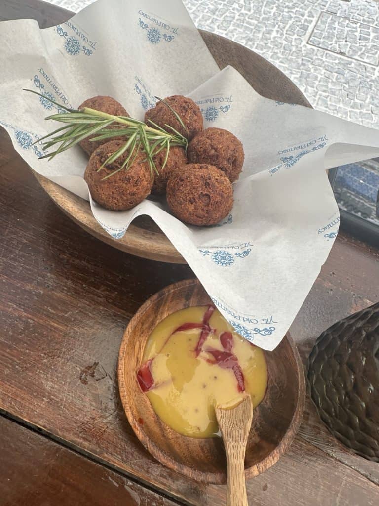 We decided to stop in Ponta do Sol at a restaurant called “The Old Pharmacy” that served Portuguese tapas so we could enjoy some lite bites. We ordered the grilled shrimp, Alheira truffles, chorizo, oso buco tacos, and brownie for dessert. All of the tapas were incredible but my favorite were the tacos and Stelios liked the Alheira truffles best.
