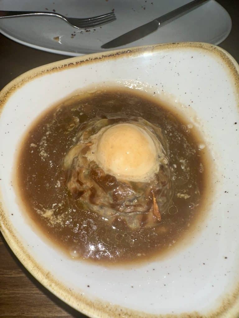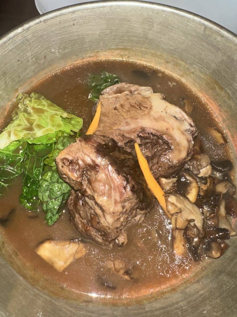 We ordered the bread, beef tartar with mushroom, oxtail ravioli with truffle and foi gras mousse, and shared the ox belly entree with mushroom and truffle mashed potatoes. Just WOW. What an incredible dinner experience. My favorite was the oxtail ravioli – not a traditional Italian ravioli like you would think, but my mouth was exploding with flavor every bite I took. Every trip we’ve been on there is usually 1 restaurant that we fall in love with and want to dine at a second time before we leave – I think that Kampo might be it.