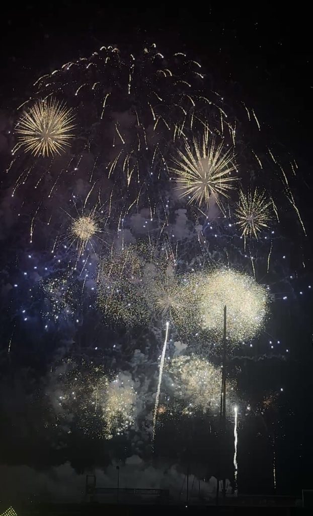 After dessert we walked back to the waterfront but there were so many people I couldn’t see the stage #shortgirlprobs. I saw some kids sneak through the fence and go up onto the bleachers to see the stage so I quickly followed them and Stelios was right behind me. We snuck through just in time before security got there to prevent other people from going through and grabbed 2 front row seats on the highest bleacher. A literal elevated experience. The concert was cute and included a mix of a woman singing in Portuguese, kids performing traditional dancing, a group of boys in karate outfits did some breakdancing, and the final number was a combined choreographed dance. A little after 10:30pm they announced the fireworks would be starting. What a show it was! It was probably the largest fireworks display I have ever seen and they had the fireworks going off in patterns that timed perfectly with the music that was playing – incredible. By 11pm the show ended and the crowd dispersed. One of the side gates that enclosed the bleachers had been removed at this point to allow more people to exit the park so we didn’t even have to sneak out. Success! We walked 30 minutes back to our hotel, showered, and were in bed by midnight. A full day 2 in Madeira, Goodnight!