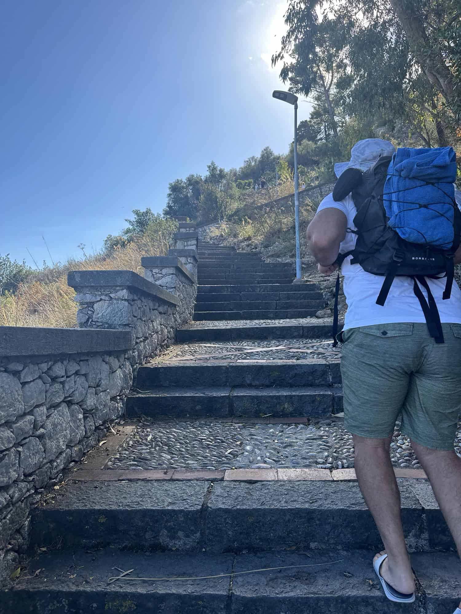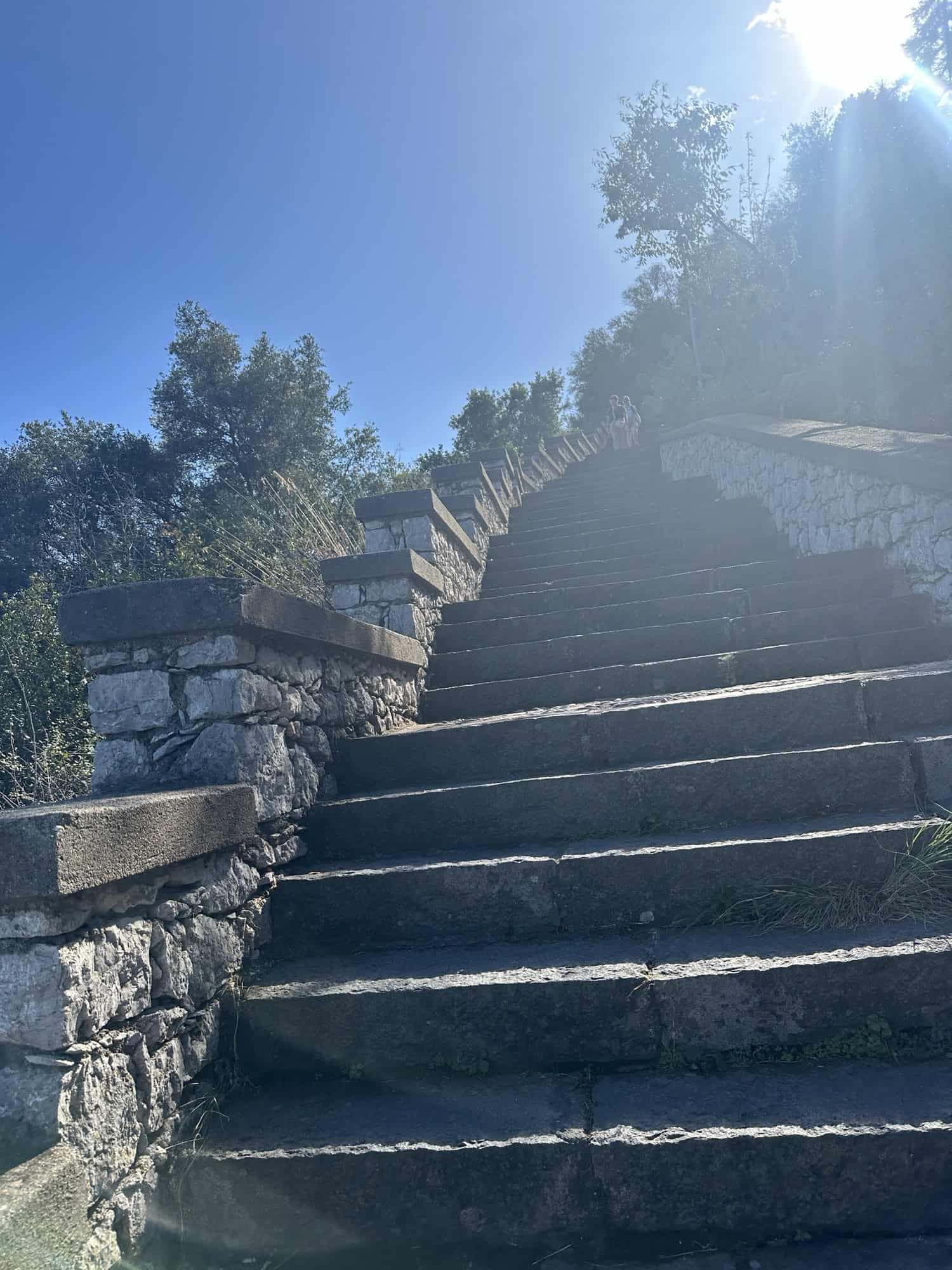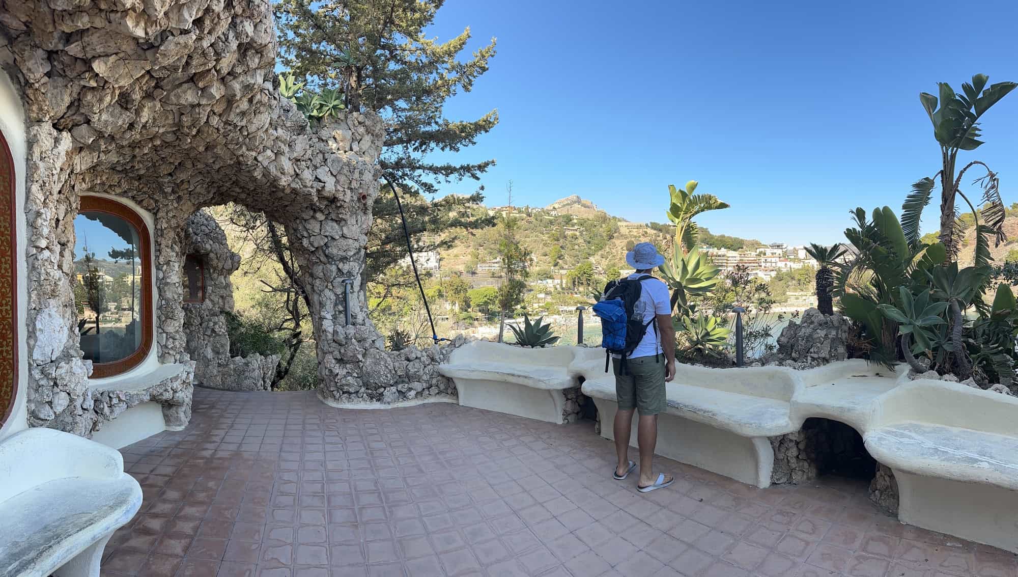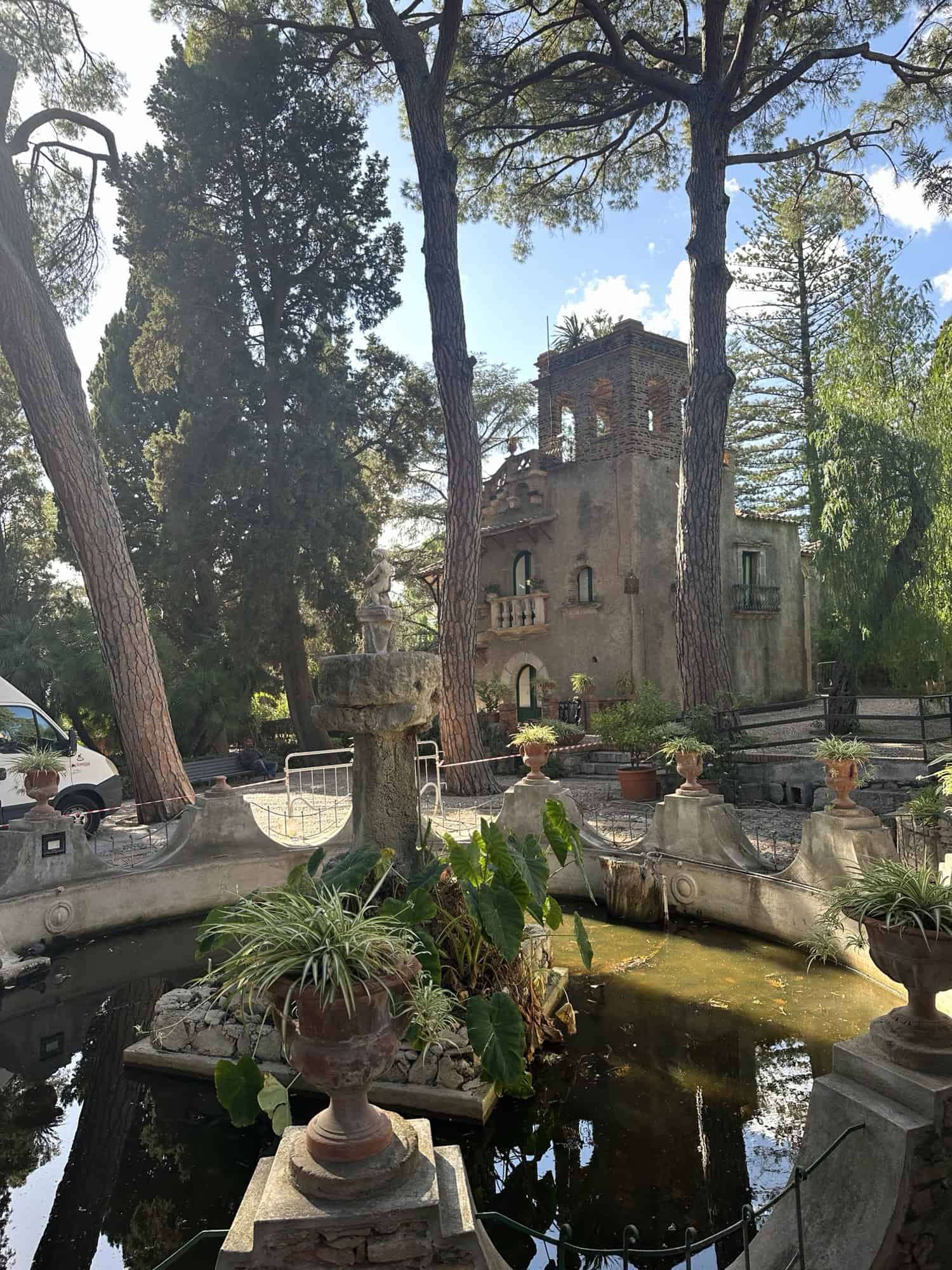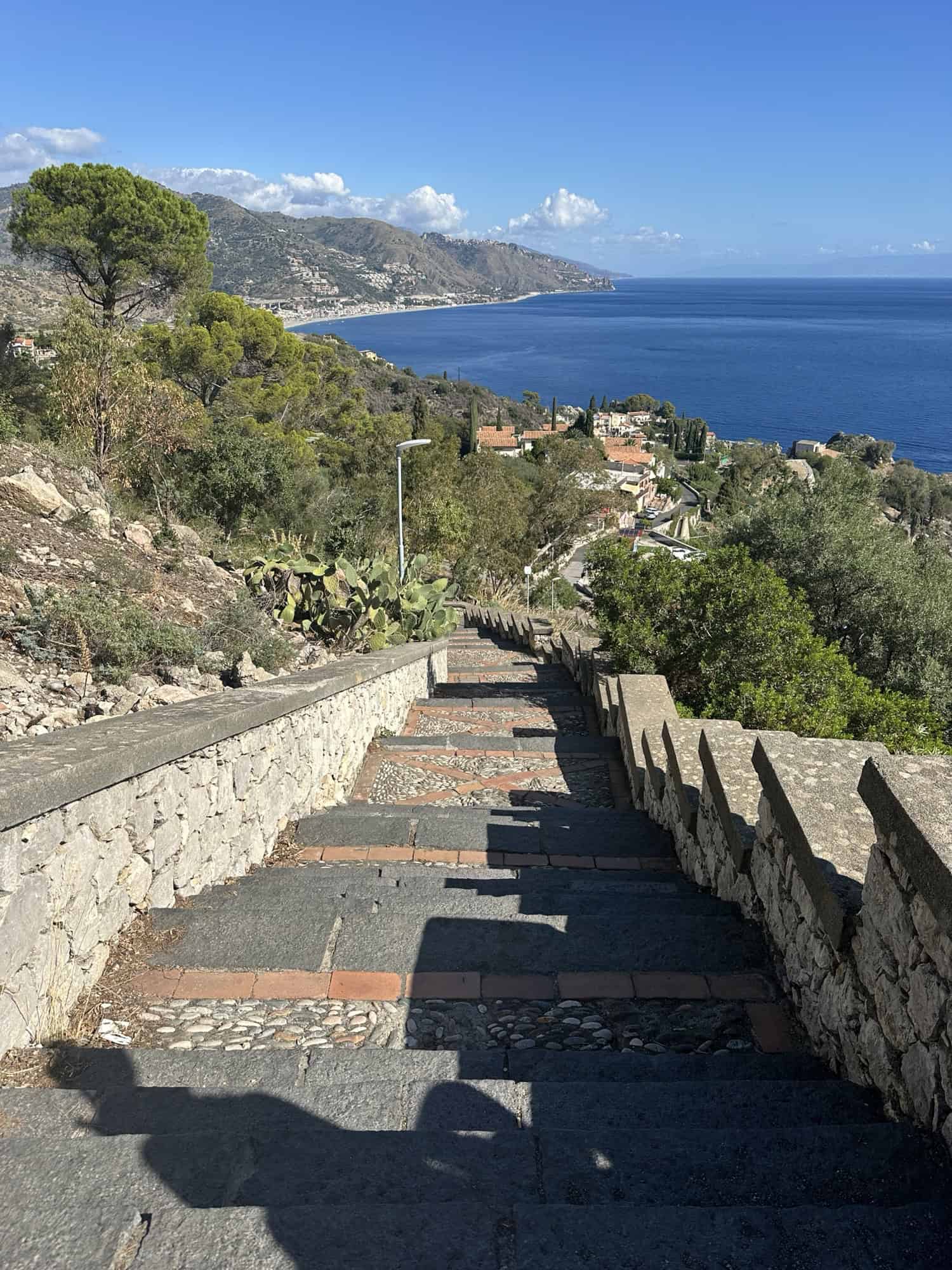Once we had enough of the sun we got ready to make the trek back up the stairs to the top of town. For some reason the walk up didn’t seem as long as the walk down, and we even took a few water breaks along the way. We took a different path back to the Airbnb that lead us through the Villa Cominale di Taormina (a public park and gardens) which were full of interesting structures also created by Florence Trevelyan that she used for bird watching and enjoying tea in the park.