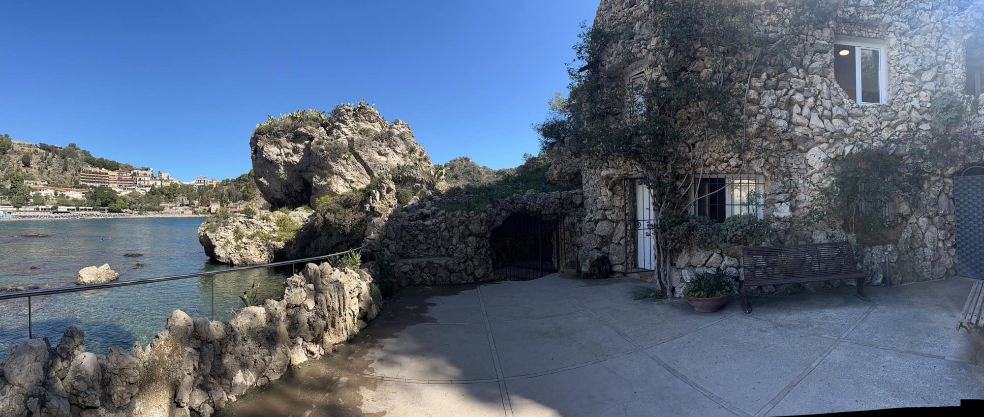It was truly incredible that someone had essentially built a villa into the rock of the island. The house was huge, and even used to have a pool. We learned that island was purchased by a woman named Florence Trevelyan who we later found out pioneered quite a few large projects in Taormina in the 1800s. I thought it was really cool because women in history (especially back then) were rarely highlighted or given full credit for their accomplishments. But the museum made it clear that Florence was the driving force behind both the completion of Isola Bella and the Taormina gardens.