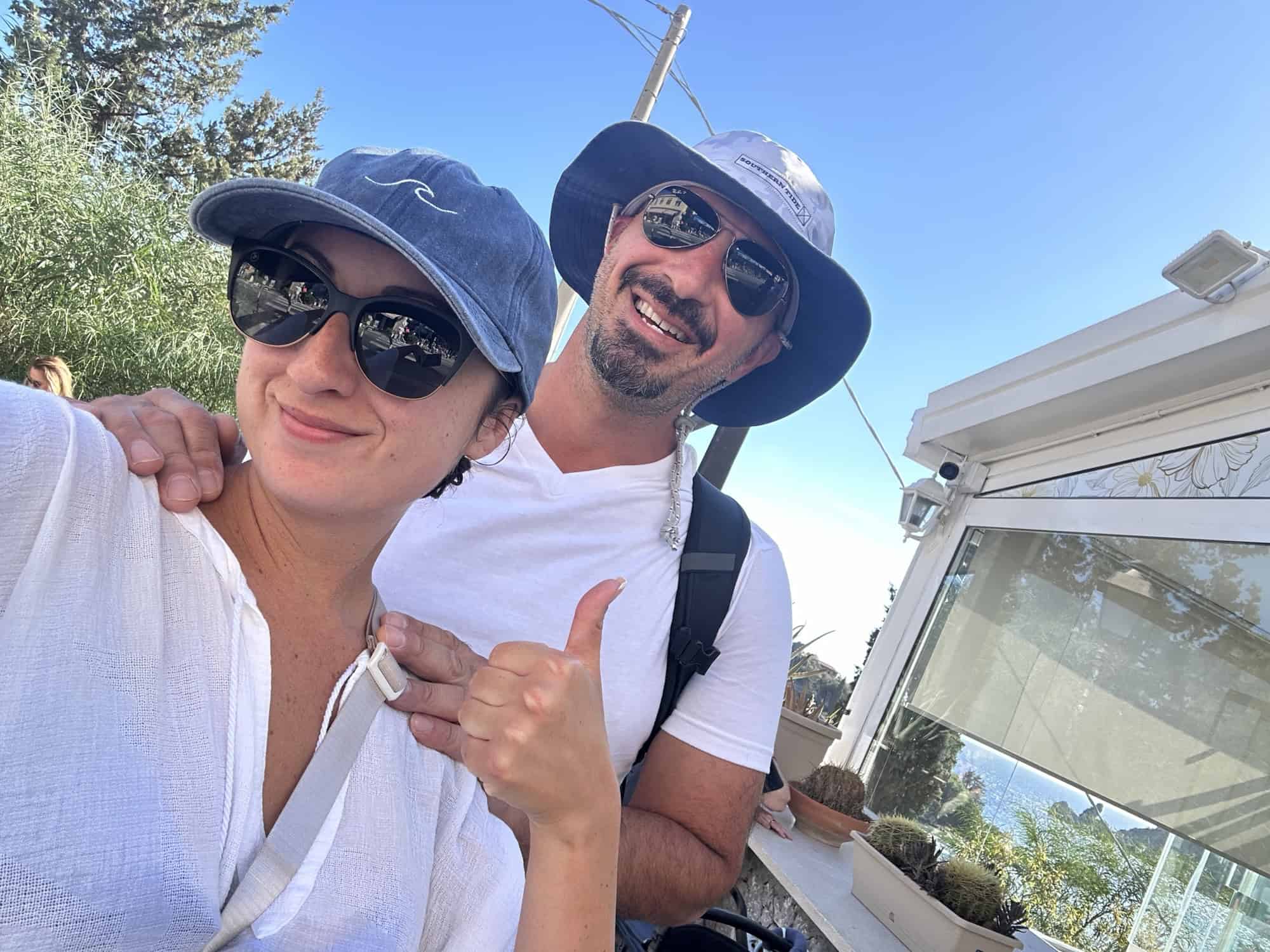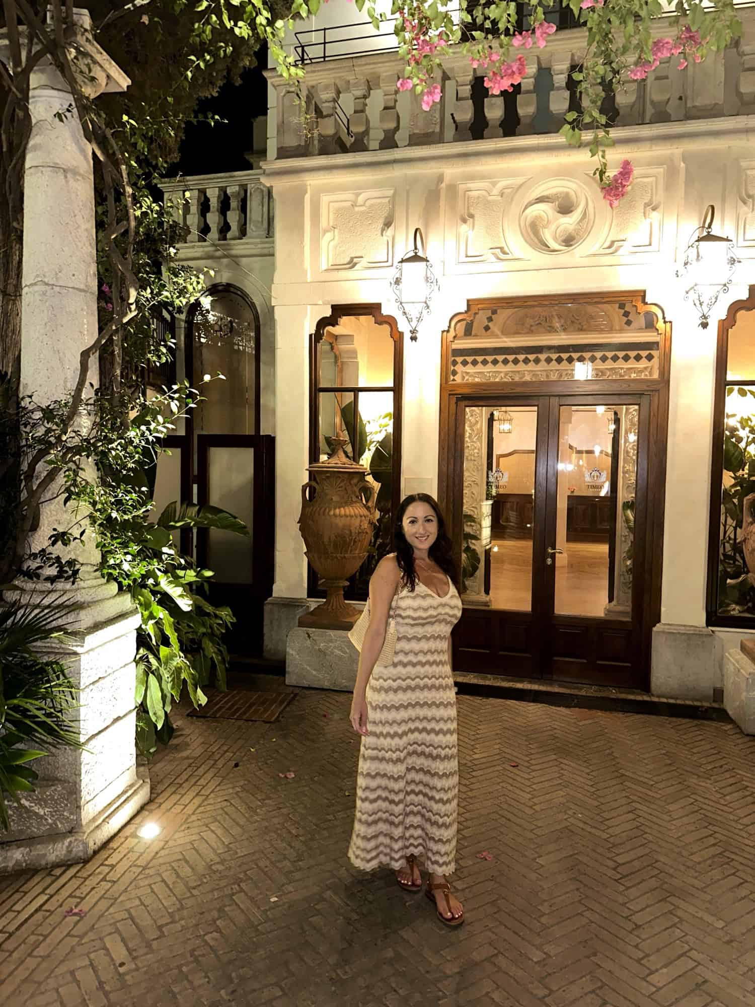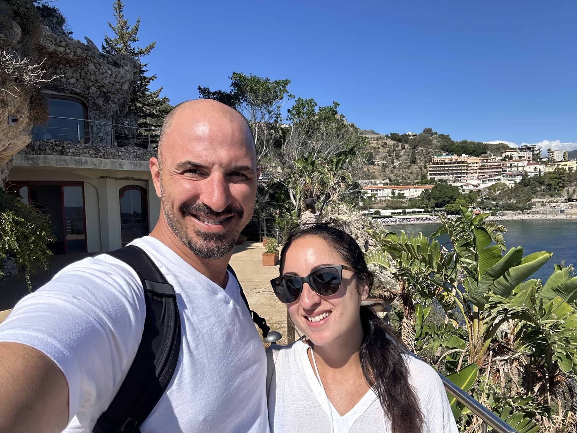 As we continued to walk, we passed an alley next to a jewelry store where there were 3-4 macho looking security guards standing out front. We had passed them the night before also and I assumed they were security guards for the jewelry store but it was 11:30pm and the jewelry store was closed. Stelios and I were both curious what they were guarding so we went up to them and asked. It turns out there was a speakeasy cocktail bar down below called Morgana, so Stelios and I decided to check it out. The bar was very cool with a Gatsby like decor, several rooms inside with a DJ playing and an outdoor courtyard. It was fairly empty but we decided to stay for a drink and dance. By 12am the place started to fill up with locals ready to party. What a great find! At one point there were 2 older gentleman, probably in their 70s or early 80s, decked out in Dior and they had their own private table behind the dance floor. They were giving full on Godfather energy because people seemed to nod to them from afar as they walked in. Maybe they were the owners, or maybe they were just 2 rich Italians in Taormina, we’ll never know. We danced the rest of the night away & officially hit our new record of 30k steps in 24 hours by the time we got back to our Airbnb.