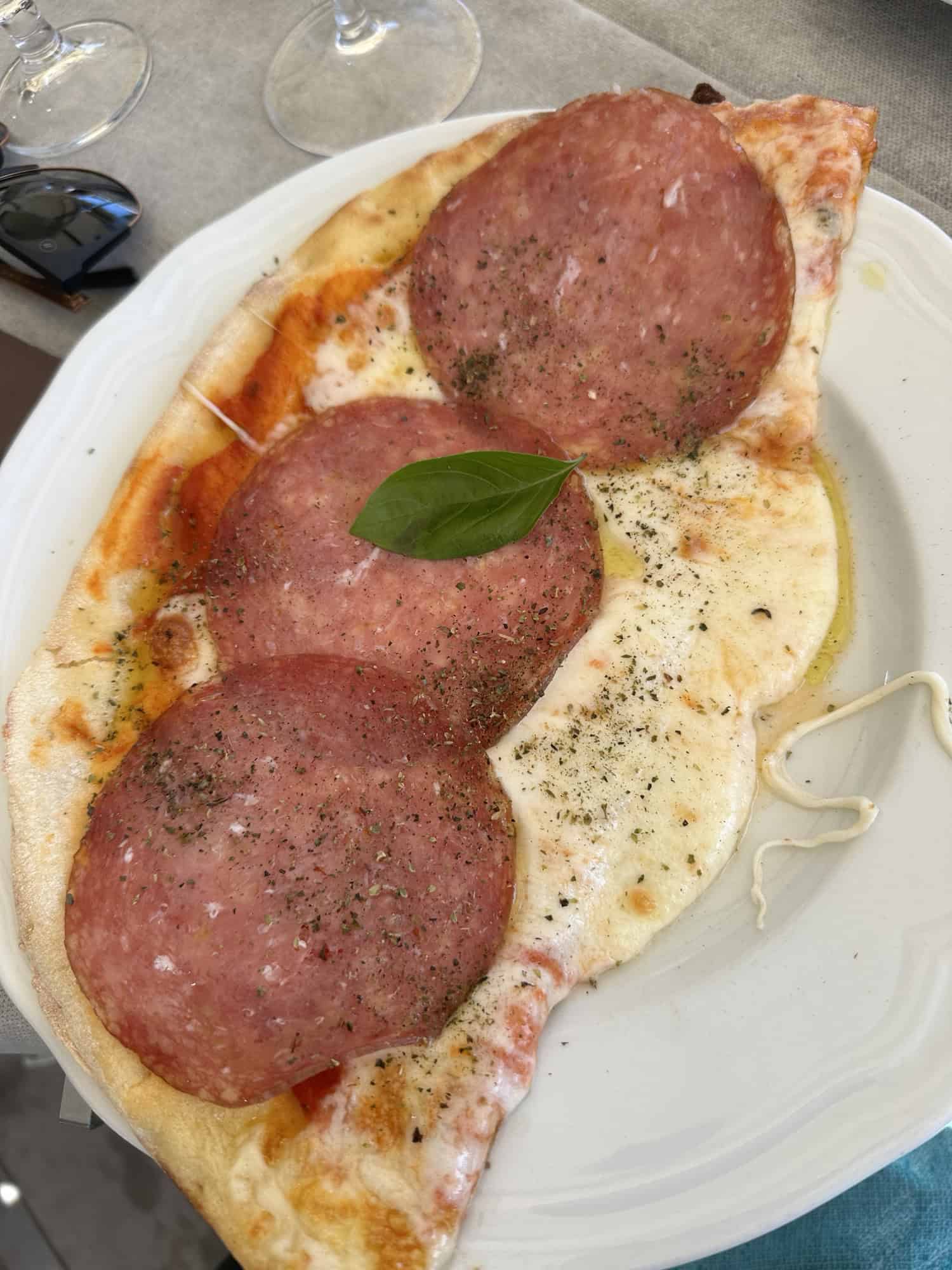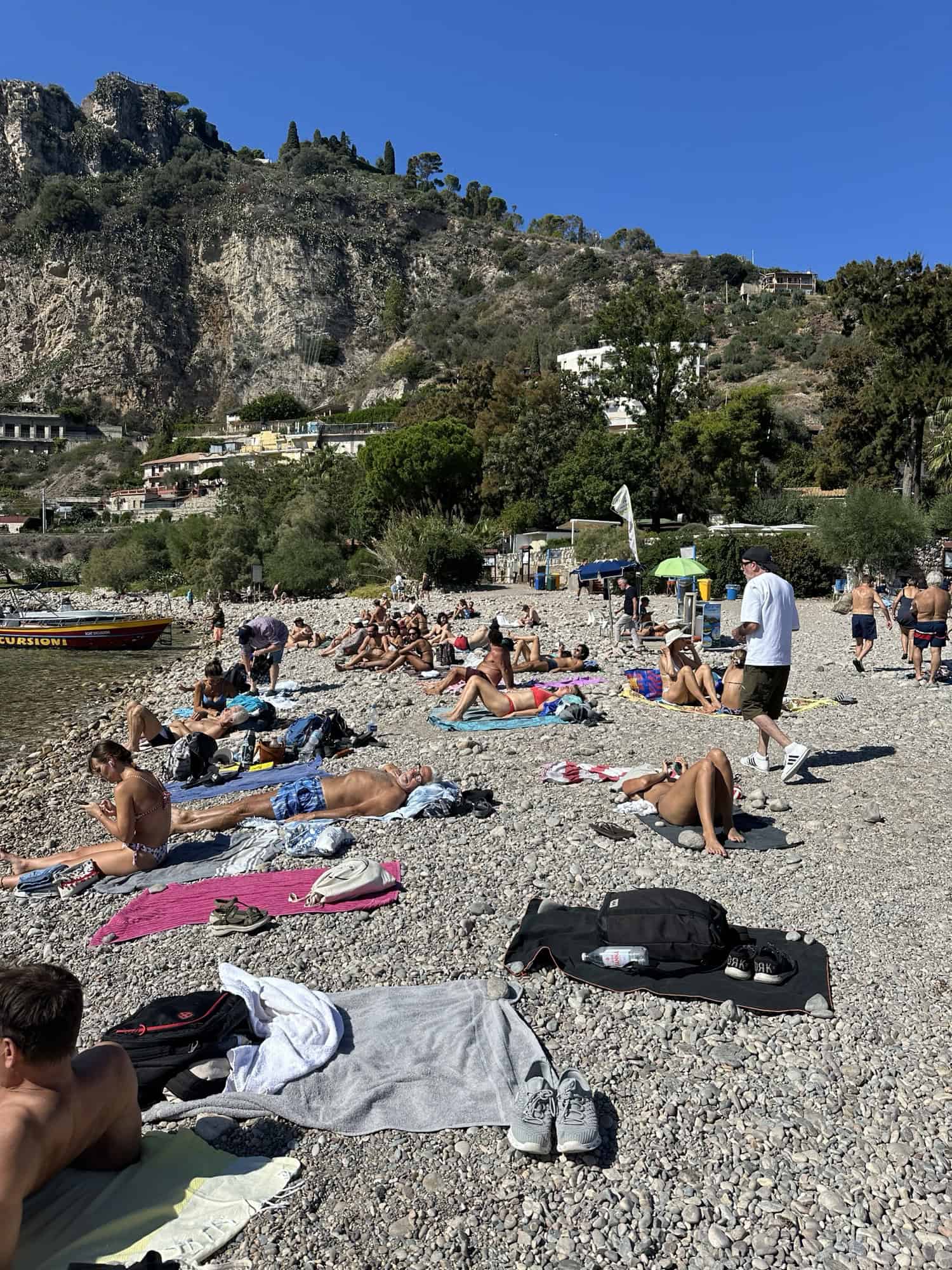 After touring Isola Bella we sat at Mendolia Beach Club and shared a pizza and 2 beach bombas for dessert (which was essentially a chocolate and pistachio granita, but the Bam Bar granita was still the best). After lunch we went for a swim and laid on the rocks which didn’t last long. I definitely prefer sandy beaches over rocky beaches for laying out in the sun. There were some local masseuses walking around offering massages so I figured why not – I got a 15 minute foot massage for 10 euro.