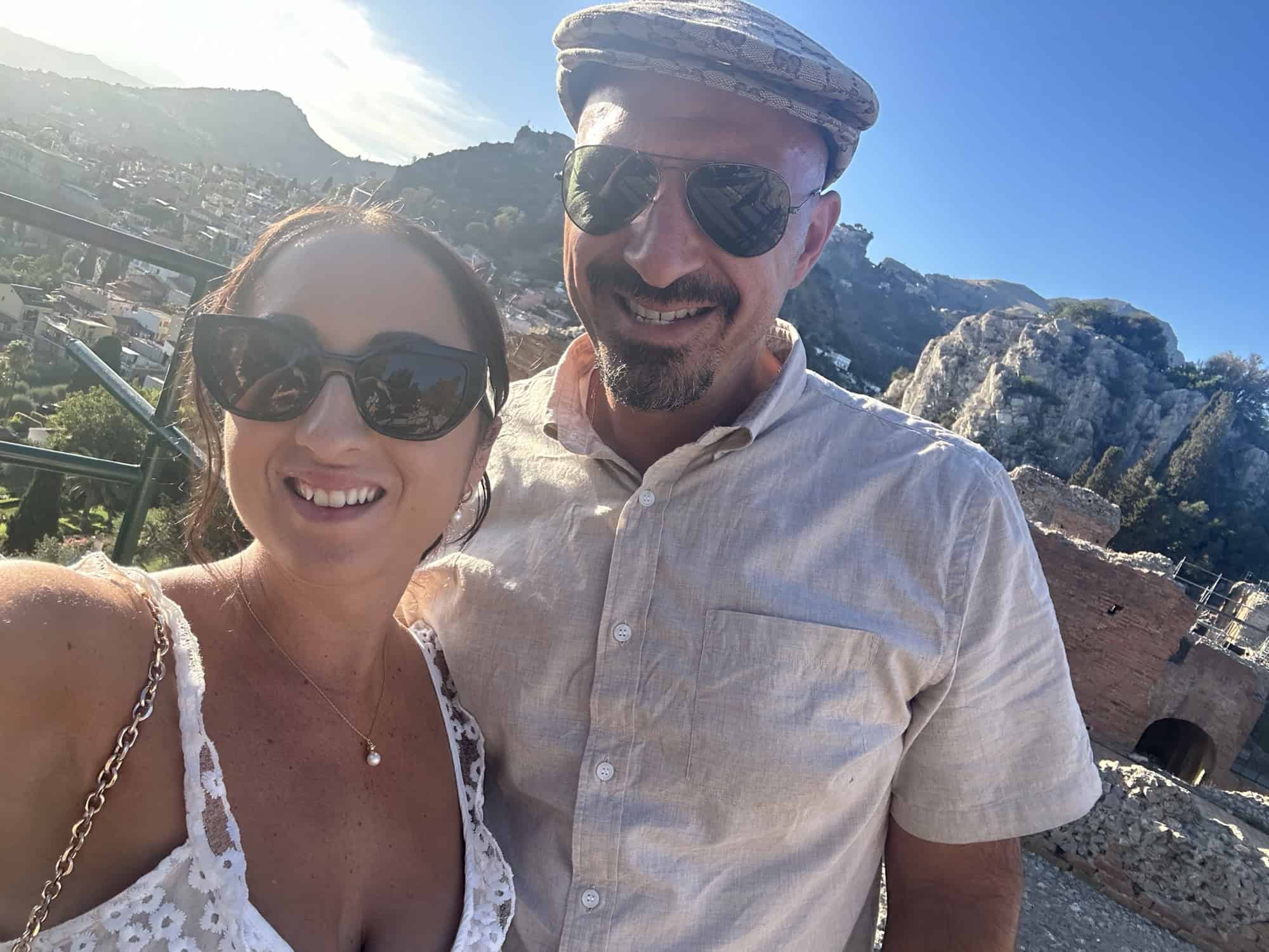 Overall the second winery was our favorite and I thought the wine tour was fun and we tried a lot of nice Sicilian wines, but the wine tours we did in Mallorca and Greece were better. By the end of the wine tour my head was buzzing and I was tired and ready for a nap, but my husband was set on seeing the Greek Theatre of Taormina before we left Taormina (it closed at 5pm and we’d be leaving before it opened tomorrow morning). Our driver kindly dropped us off at the entrance, however we did not anticipate the massive line on a late Sunday afternoon. Luckily the line moved fairly quickly – it cost 12€ each to enter and we were inside within 20 minutes.
