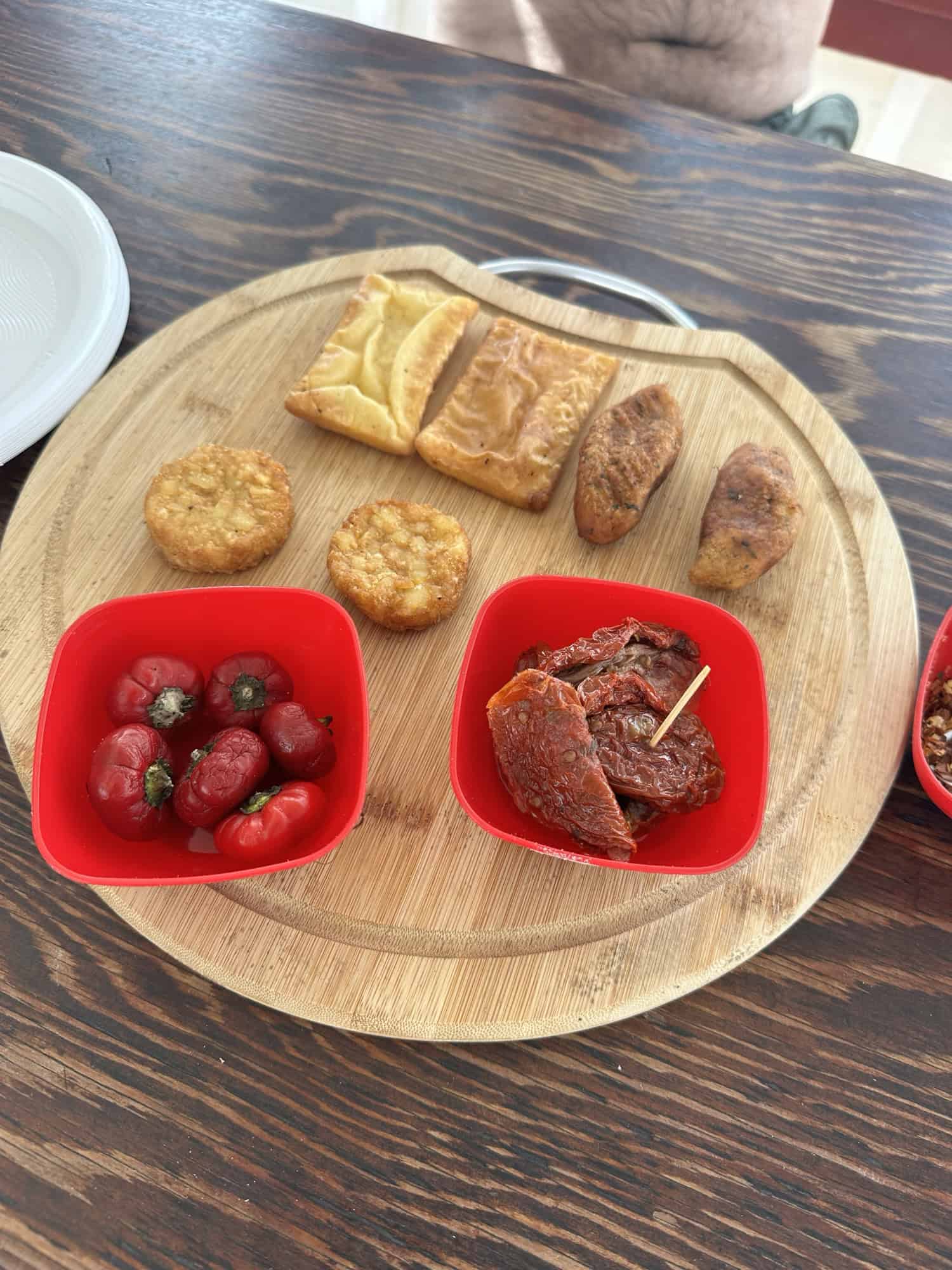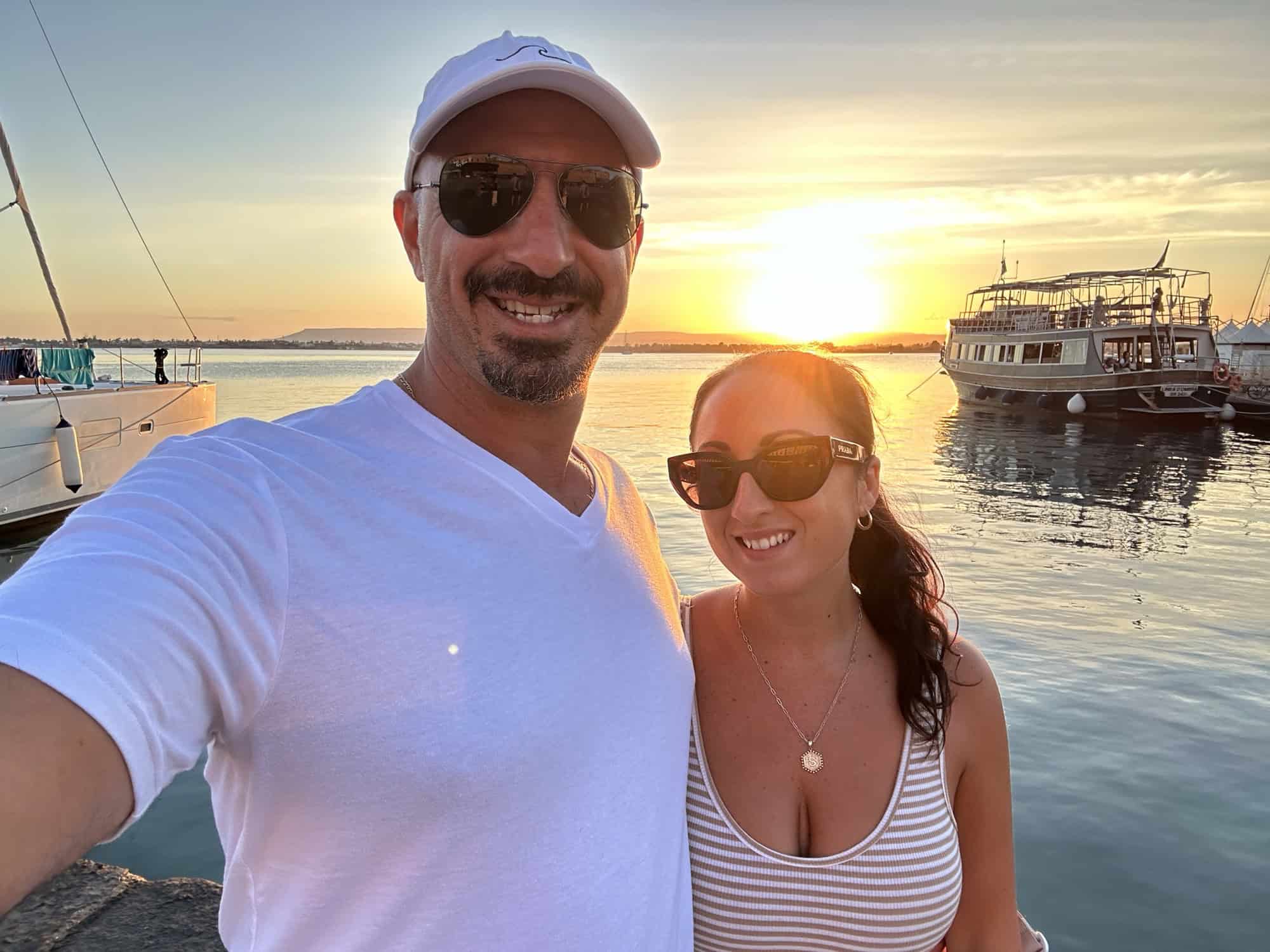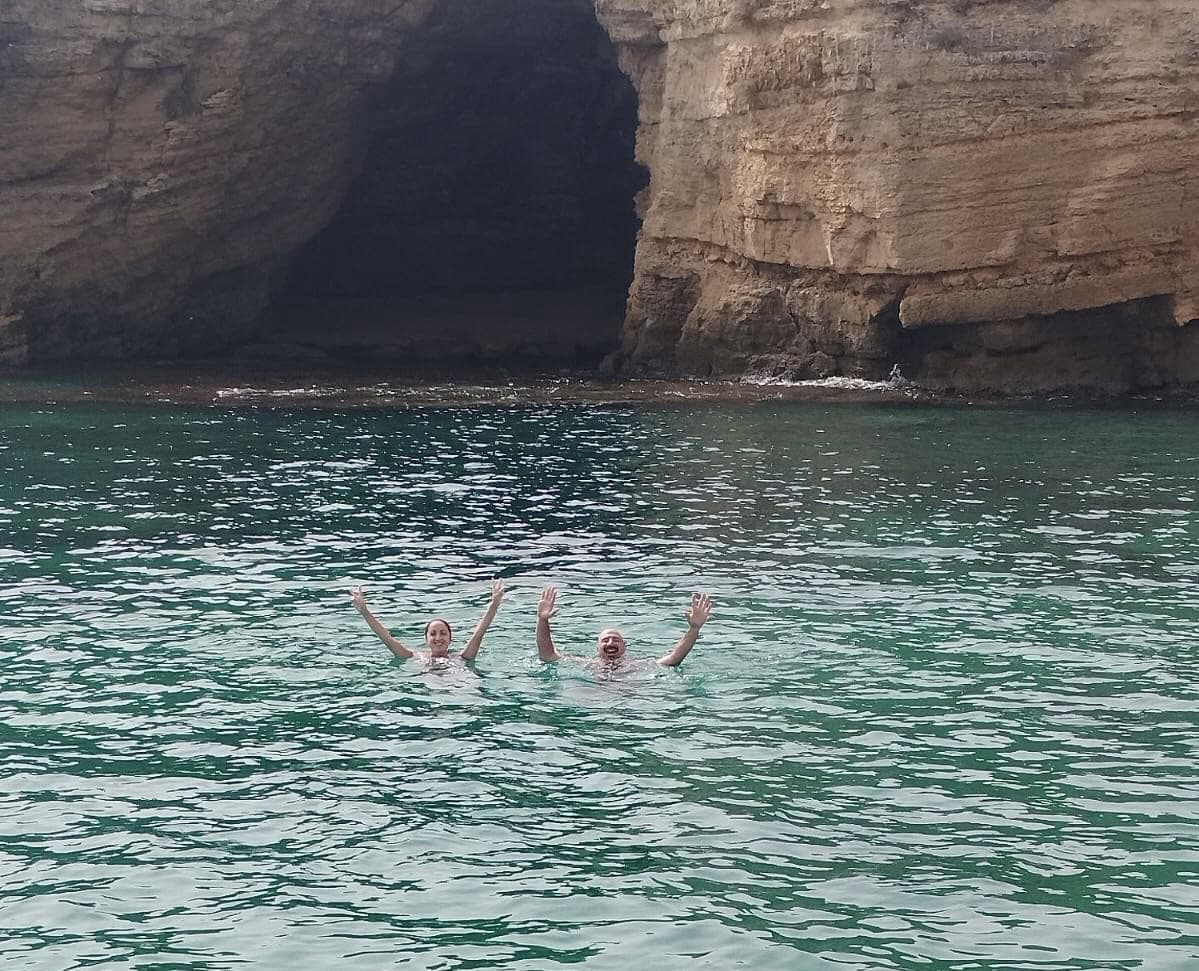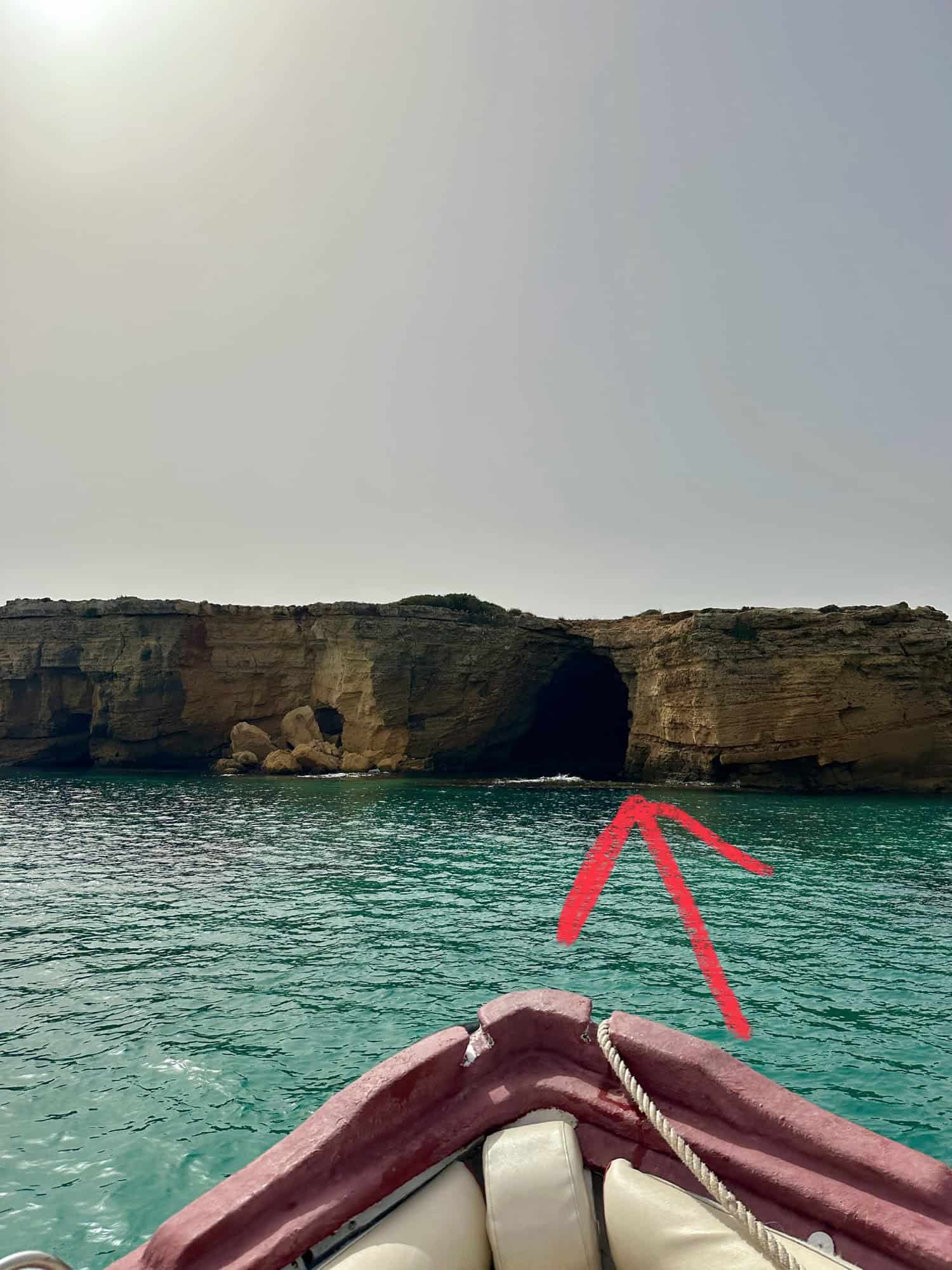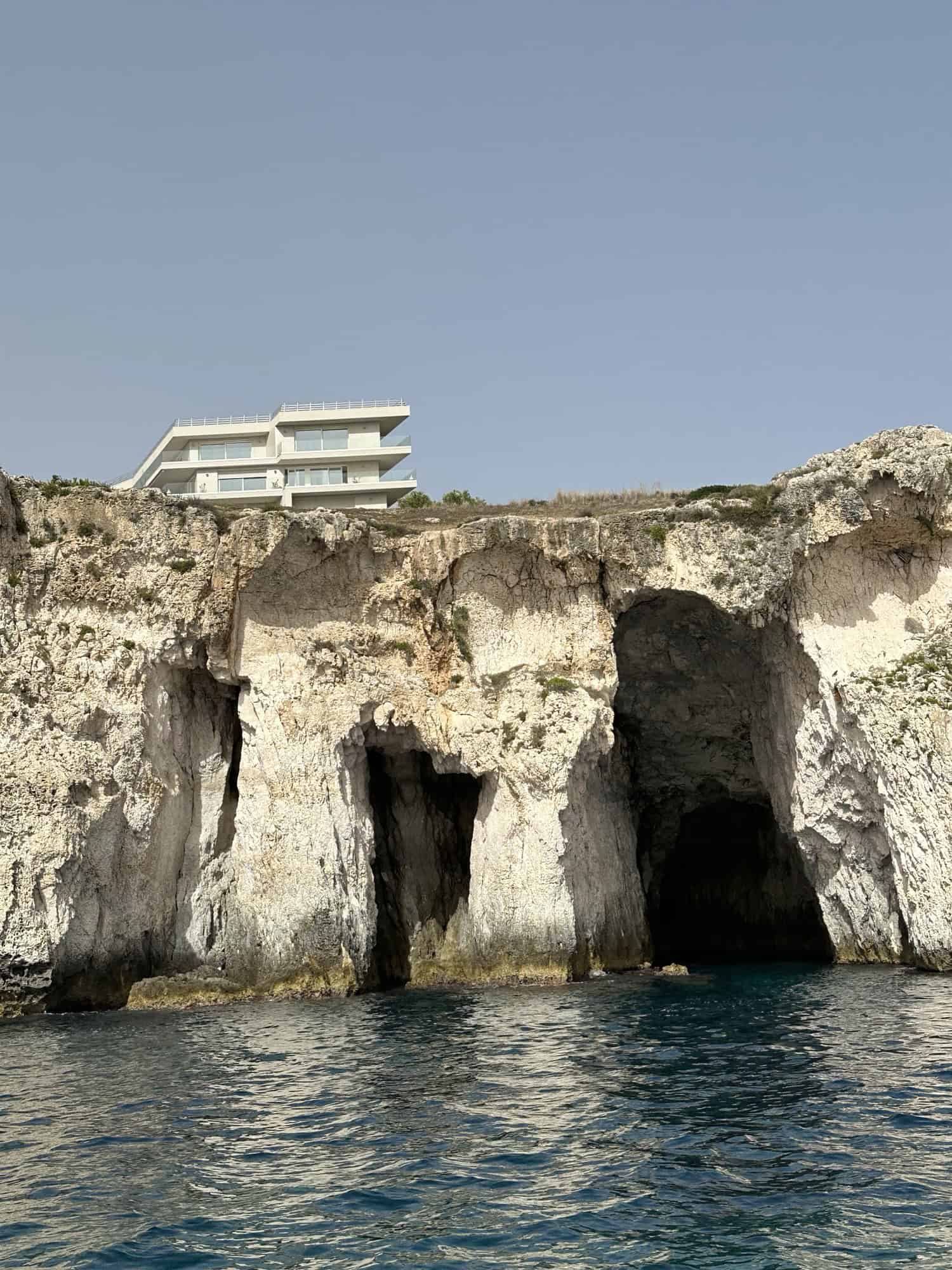 After breakfast it was time for our excursion. We had booked a private half day boat tour of Ortigia through Dolci Escursioni that would stop at 2 different sea caves. Our Captain Antonio and his first mate Nino were very nice and welcomed us on board. The boat was definitely older and looked like an old fishing boat that had been converted into a lounge boat with a nice mat to lay on in the front and a long table for eating in the back. There was also a second level with sofas for lounging. It wasn’t the type of boat I would typically search for but we booked this last minute (literally yesterday) so I wasn’t going to complain! Overall it was spacious and as long as we could jump in for a swim and had somewhere to lay out on the boat we were happy. The excursion also included wine/beer and lunch which was much needed after being in the sun and swimming around in the water.