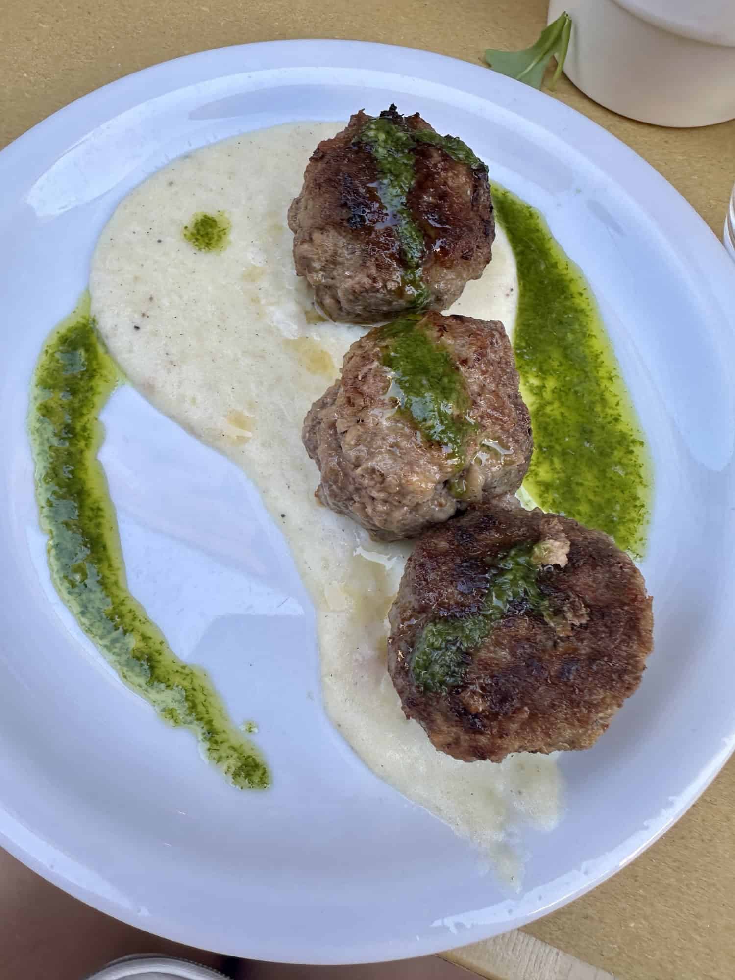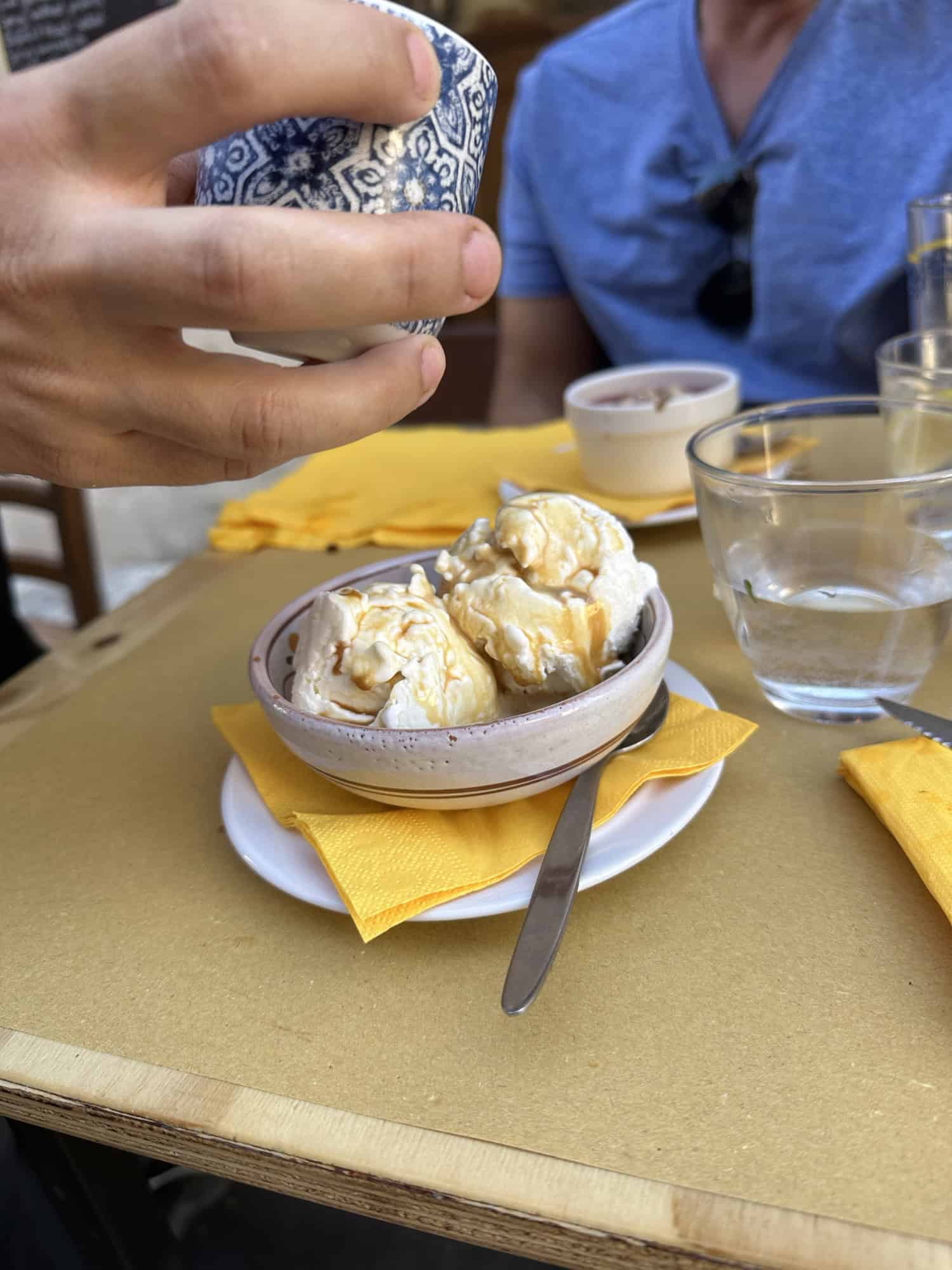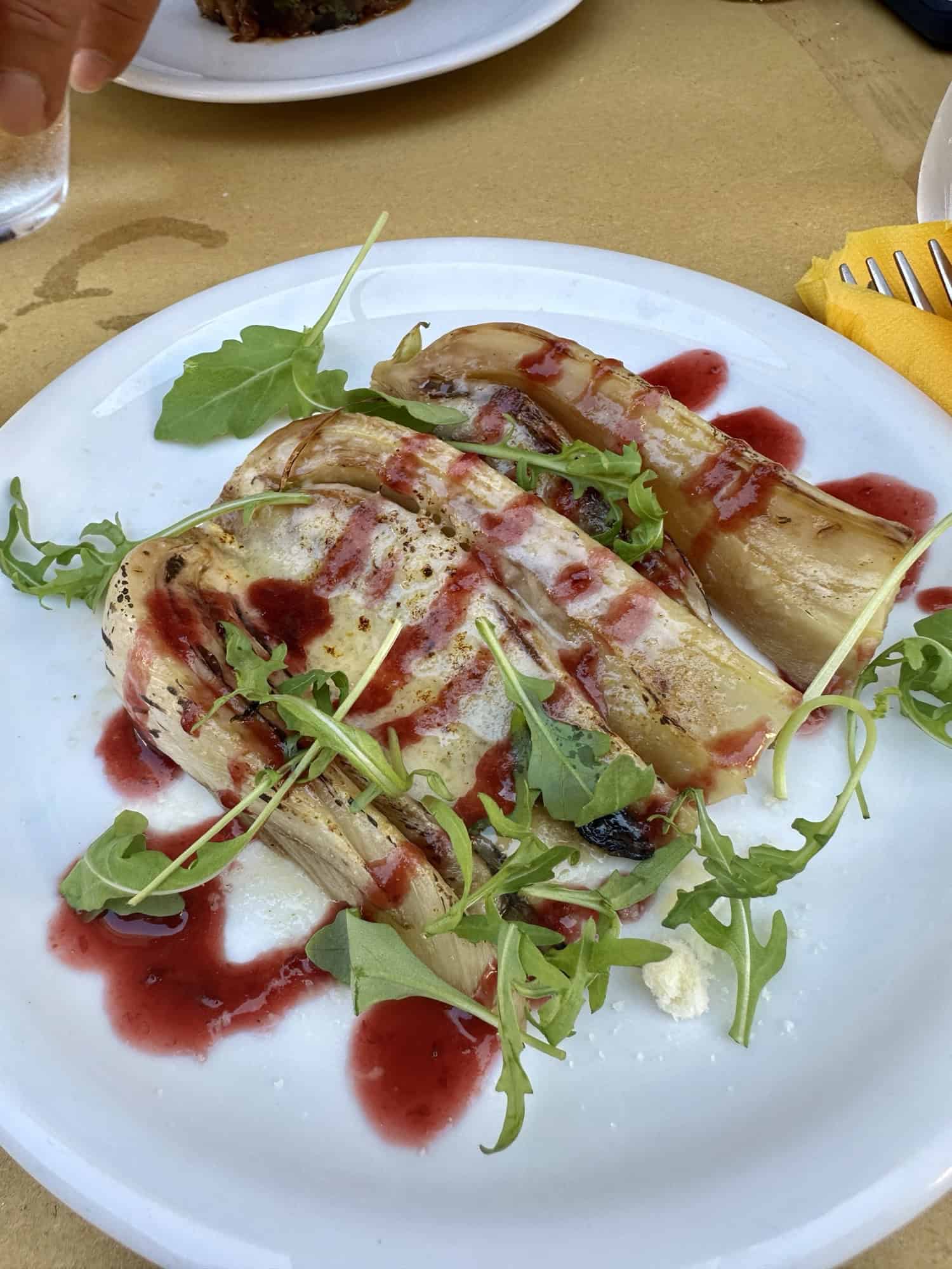 After an hour drive we arrived in Ortigia and luckily were able to check into our Airbnb early. It was a lovely apartment with a rooftop deck overlooking the water. The parking in Ortigia is for residents only so once we got our bags inside we had to drive 5 minutes down the road and park it in a lot, then walk 15 minutes back to the Airbnb. At this point I was getting hungry so I pulled up Google maps and found a Sicilian tapas spot 5 minutes away called Lemon. We grabbed a table outside and shared the grilled fennel, Eggplant Cappnata, Italian Meatballs, Pear & Buffala salad, and pumpkin crostini. We were so hungry that I forgot to take a picture of the last 2 dishes but everything was very fresh and tasty. It was a nice light lunch, but we couldnt help ourselves and ended up sharing 2 desserts: an affogato and chocolate raspberry mousse.