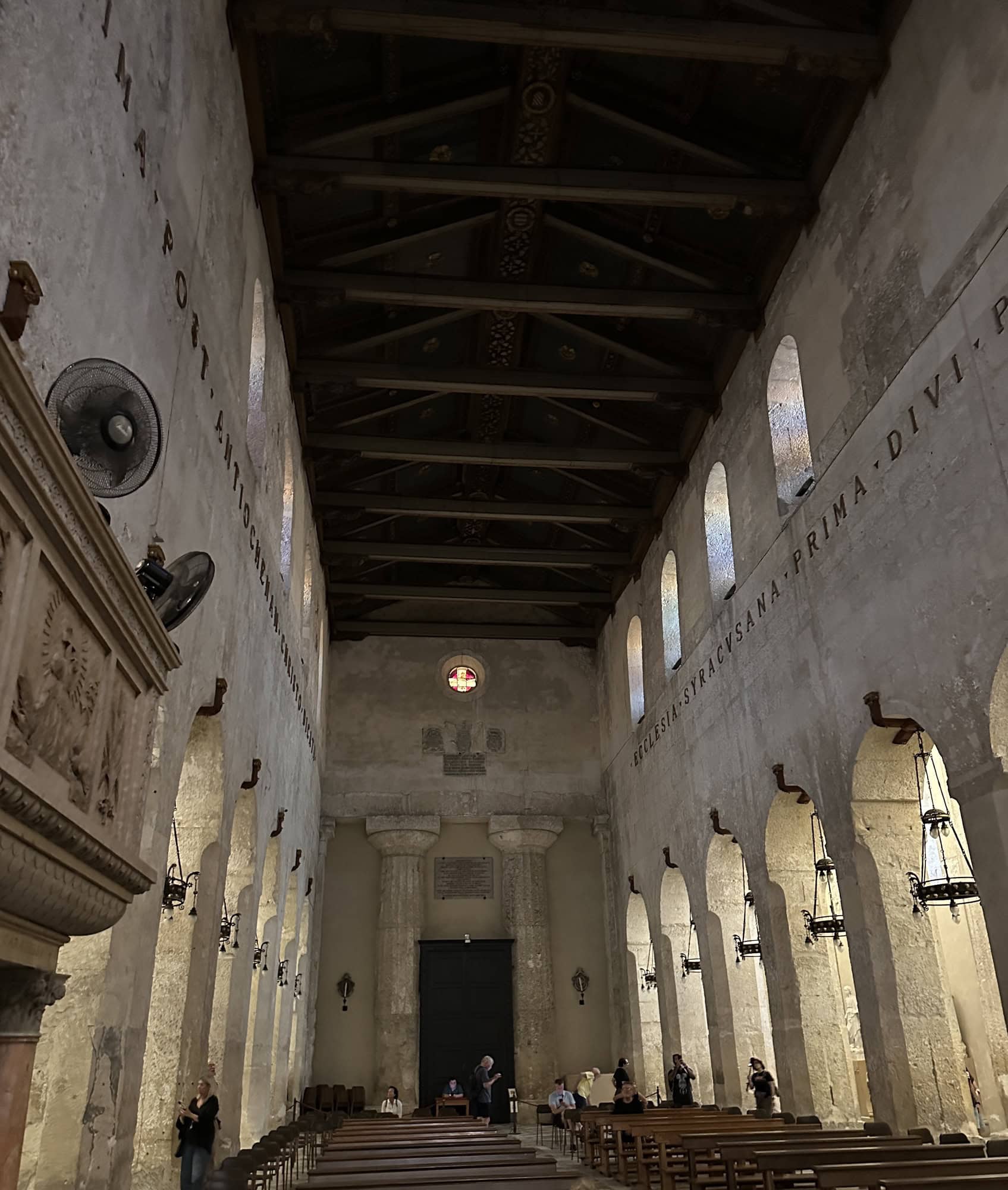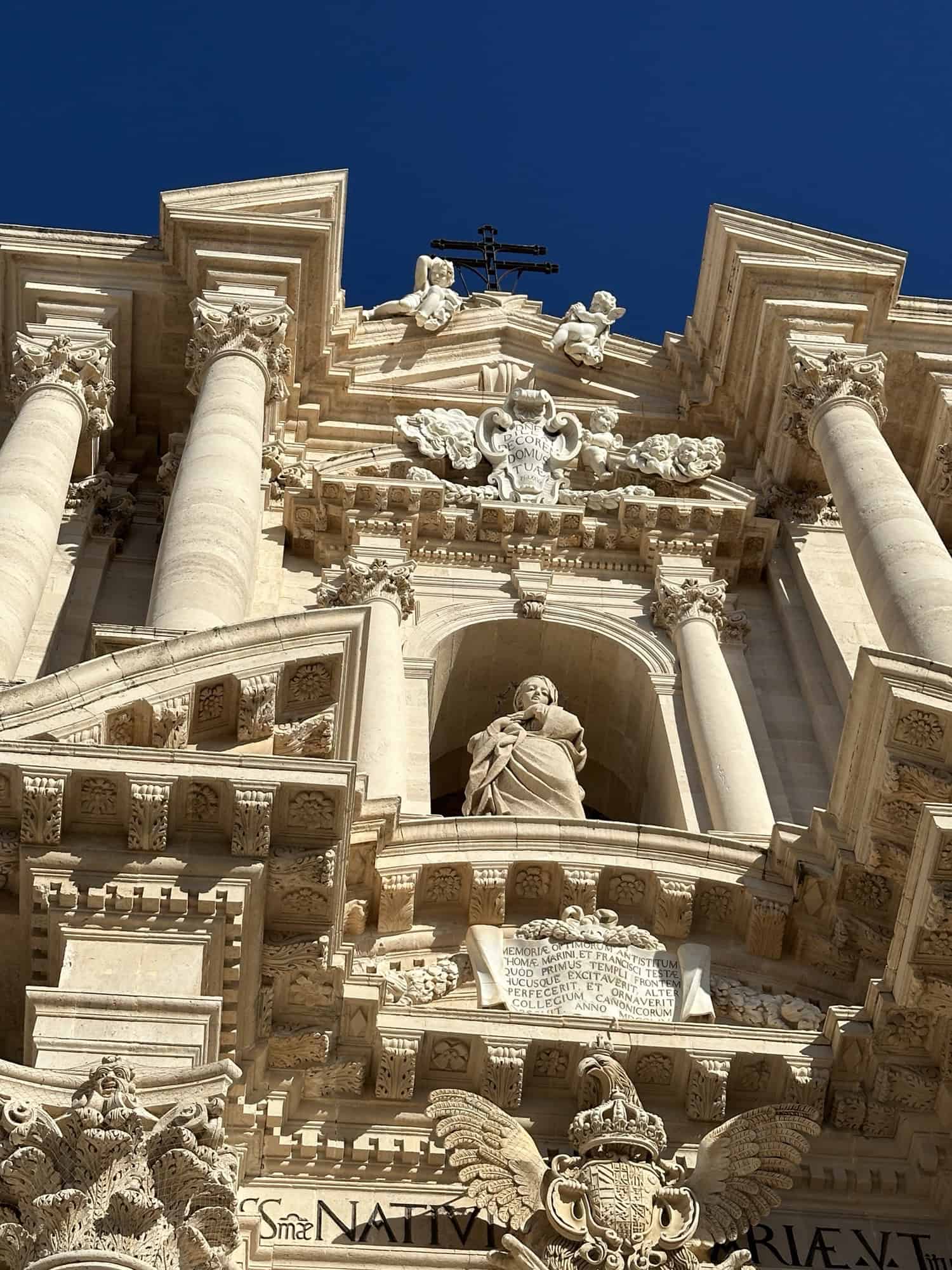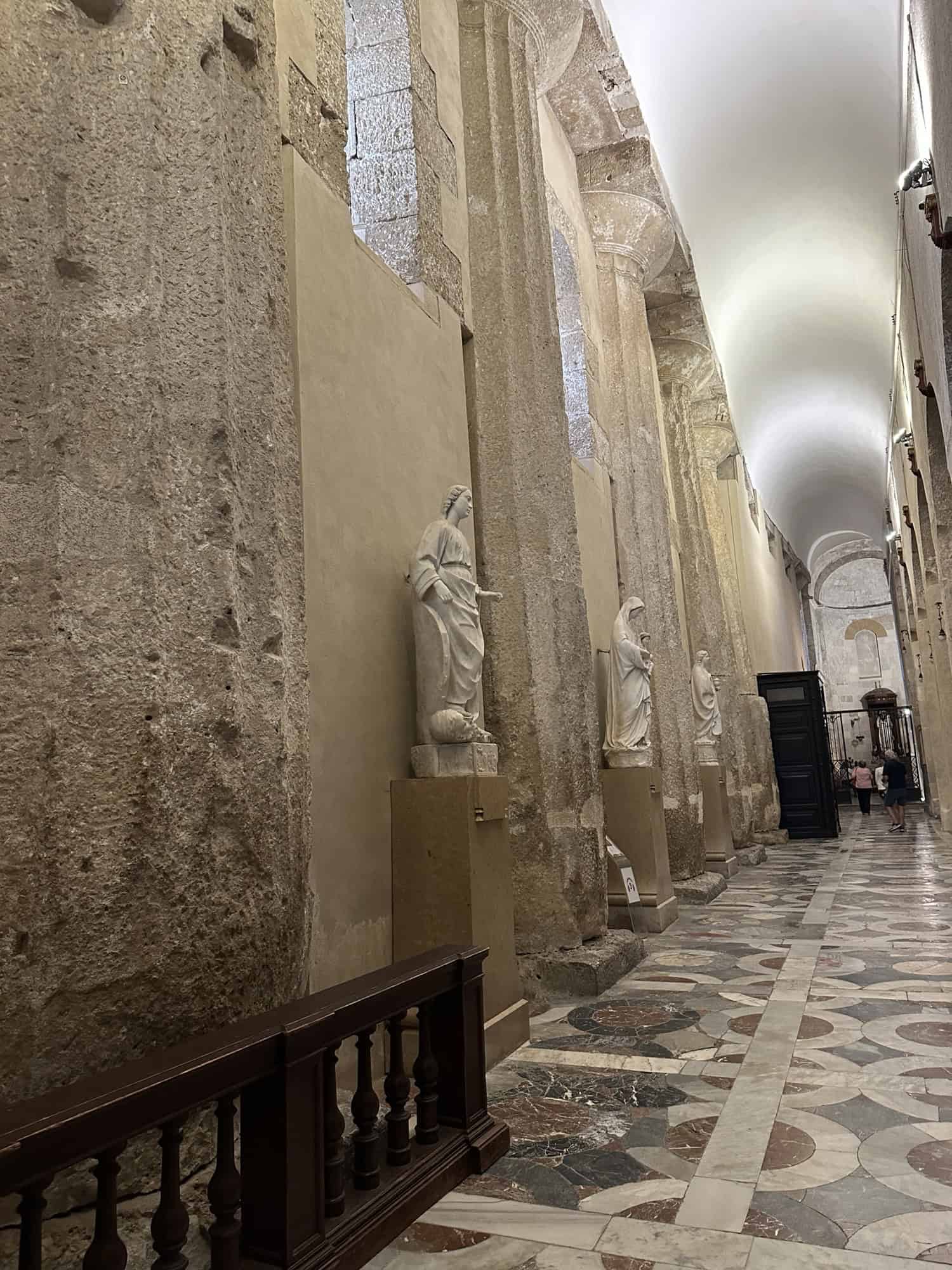 After lunch we walked around Ortigia and saw an artist live painting sunset scenes and we bought a painting from him for 20€. We love local artwork, especially sunset scenes and have 2 from our trip to Santorini. I can’t wait to hang this one up in our kitchen next to it. We continued our stroll through town and stumbled upon the Siracusa cathedral which we were able to enter for 2€ each. The ceiling and the columns were massive. It really makes you wonder how they built something like this back then with less technology than we have today and yet it lasts for centuries. Today we have all of the technology at our fingertips, but buildings aren’t made to last like they used to. I had similar thoughts when we toured the Sagrada Familia, how the newer section was less impressive than the original. Is it because the workers aren’t as skilled or detailed? Technology is great, but it also comes at a cost and I sometimes think that the original craftsmanship and quality is more impressive that some of our technological advancements.