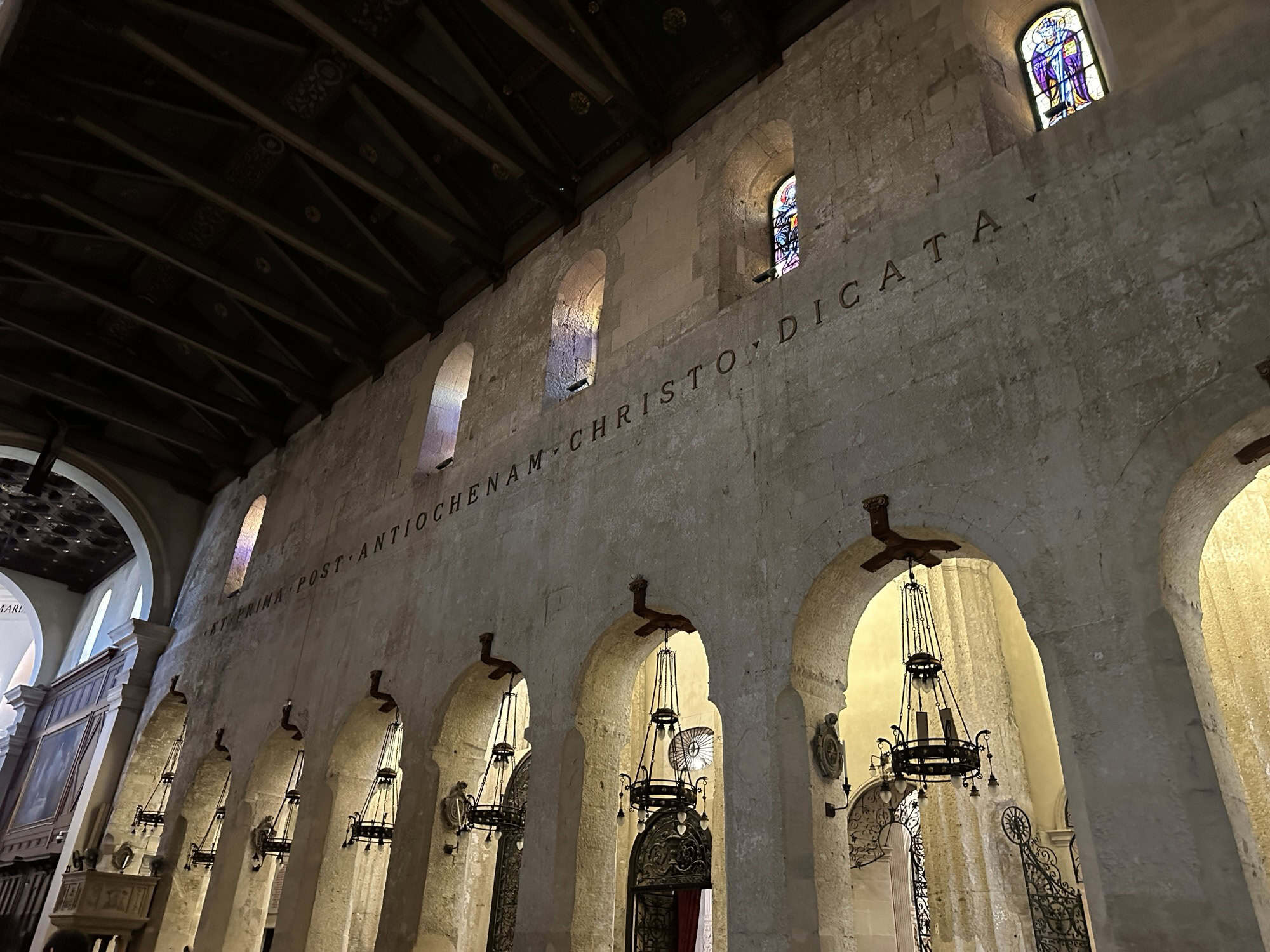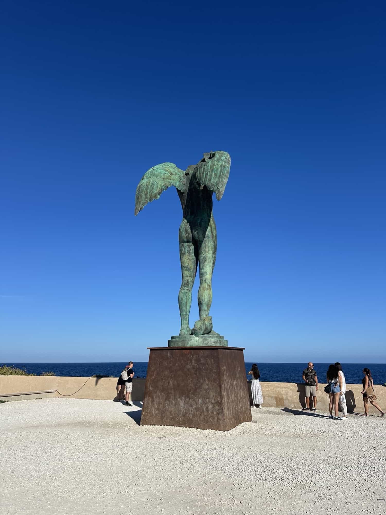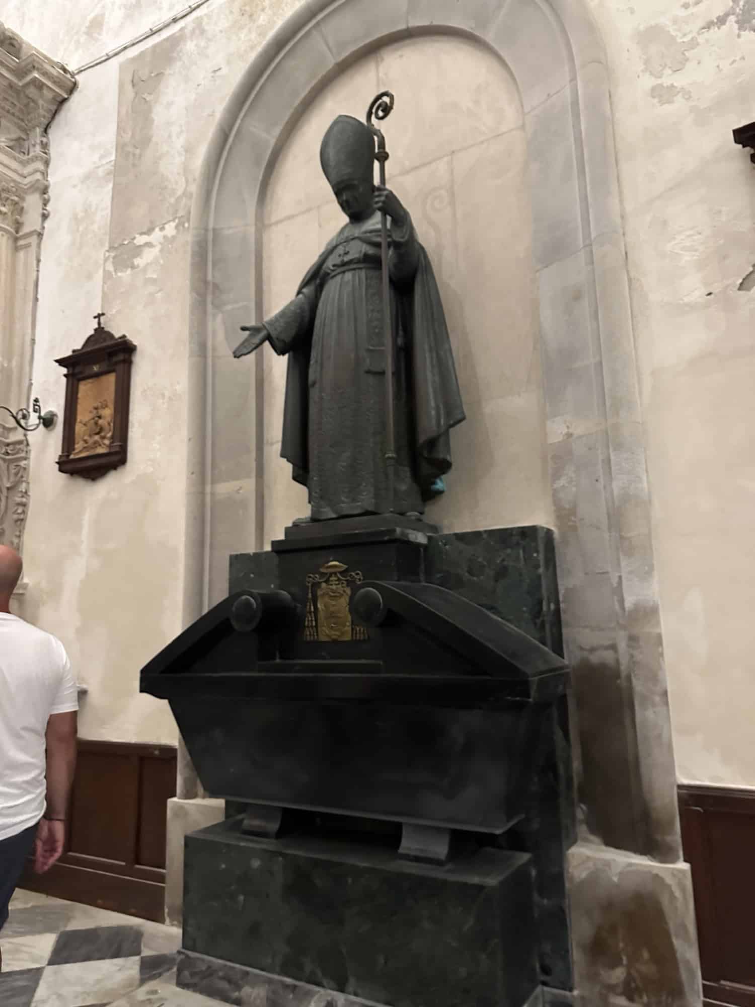 After lunch we walked around Ortigia and saw an artist live painting sunset scenes and we bought a painting from him for 20€. We love local artwork, especially sunset scenes and have 2 from our trip to Santorini. I can’t wait to hang this one up in our kitchen next to it. We continued our stroll through town and stumbled upon the Siracusa cathedral which we were able to enter for 2€ each. The ceiling and the columns were massive. It really makes you wonder how they built something like this back then with less technology than we have today and yet it lasts for centuries. Today we have all of the technology at our fingertips, but buildings aren’t made to last like they used to. I had similar thoughts when we toured the Sagrada Familia, how the newer section was less impressive than the original. Is it because the workers aren’t as skilled or detailed? Technology is great, but it also comes at a cost and I sometimes think that the original craftsmanship and quality is more impressive that some of our technological advancements.