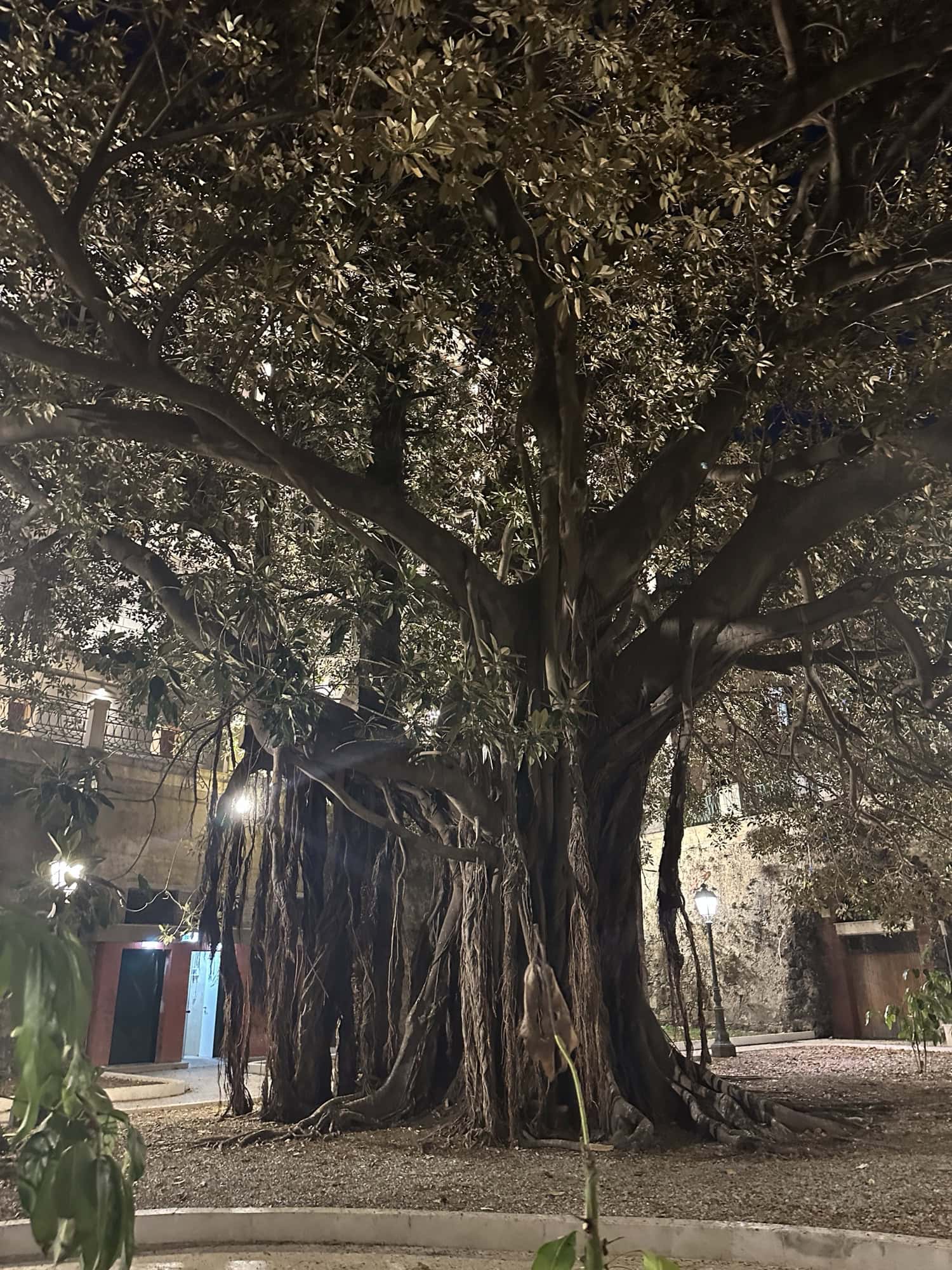 After touring the cathedral the sun was starting to set so we walked down by the harbor. We grabbed a seat at one of the cocktail bars with couches on the water, ordered a glass of wine and sat back to enjoy the sunset. Once the sun went down it got very chilly so I wanted to walk back to the airbnb to change before dinner. We passed through a park with trees that looked like they were from the Avatar movie. It sounded like 100 birds were perched and chirping in the trees but it was dark and we couldn’t see any of them. I swapped my shorts and tank top for a long crochet maxi dress and walked to dinner at La Marregiata.