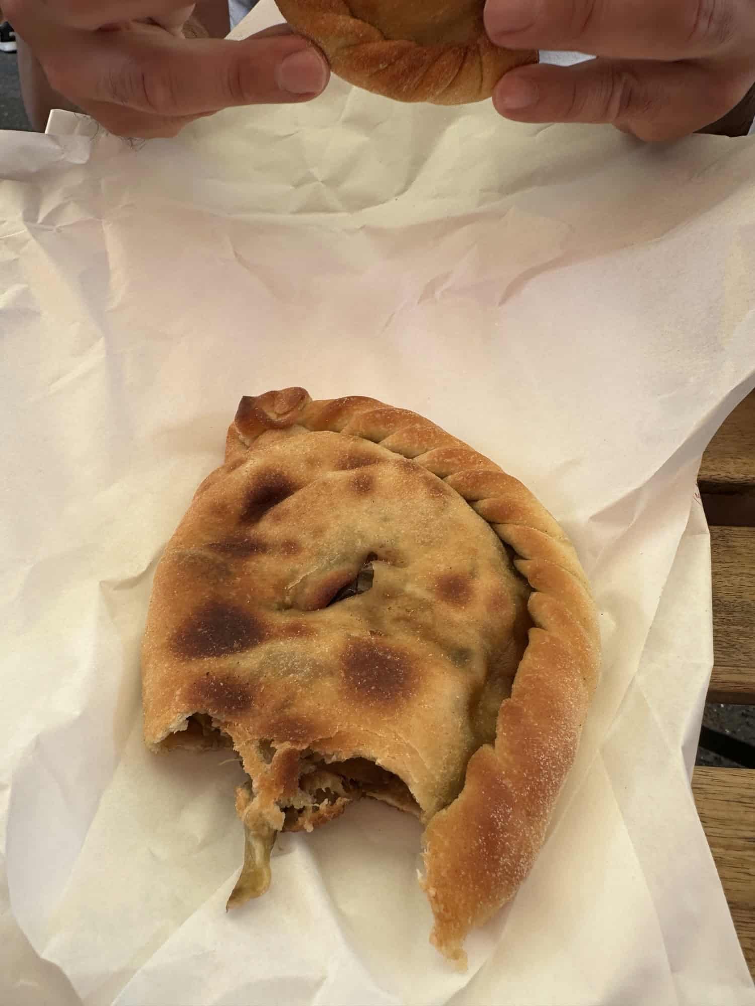 We walked to a sandwich shop called Caseificio Borderi, known for their paninos. When we got there, there was the regular deli line for paninos but there was also a stand where one of the workers was selling freshly baked calzone looking breads. He gave us some samples and we bought 2 for 5 euro. Stelios enjoyed the eggplant and ricotta one (the closest thing he could find to Spanakopita in Italy) and I enjoyed the Eggplant one. I wish I knew/remembered what these delicious calzone like sandwiches were. The shell was thin more similar to an empanada, not fluffy like a calzone, and the inside was savory.