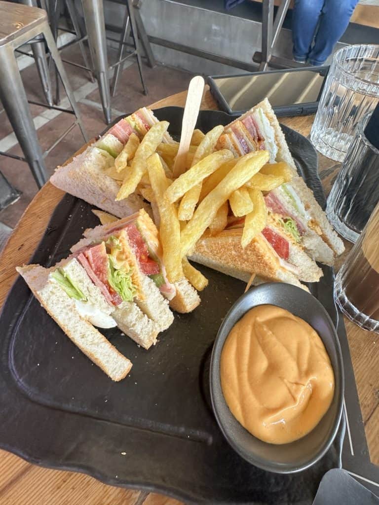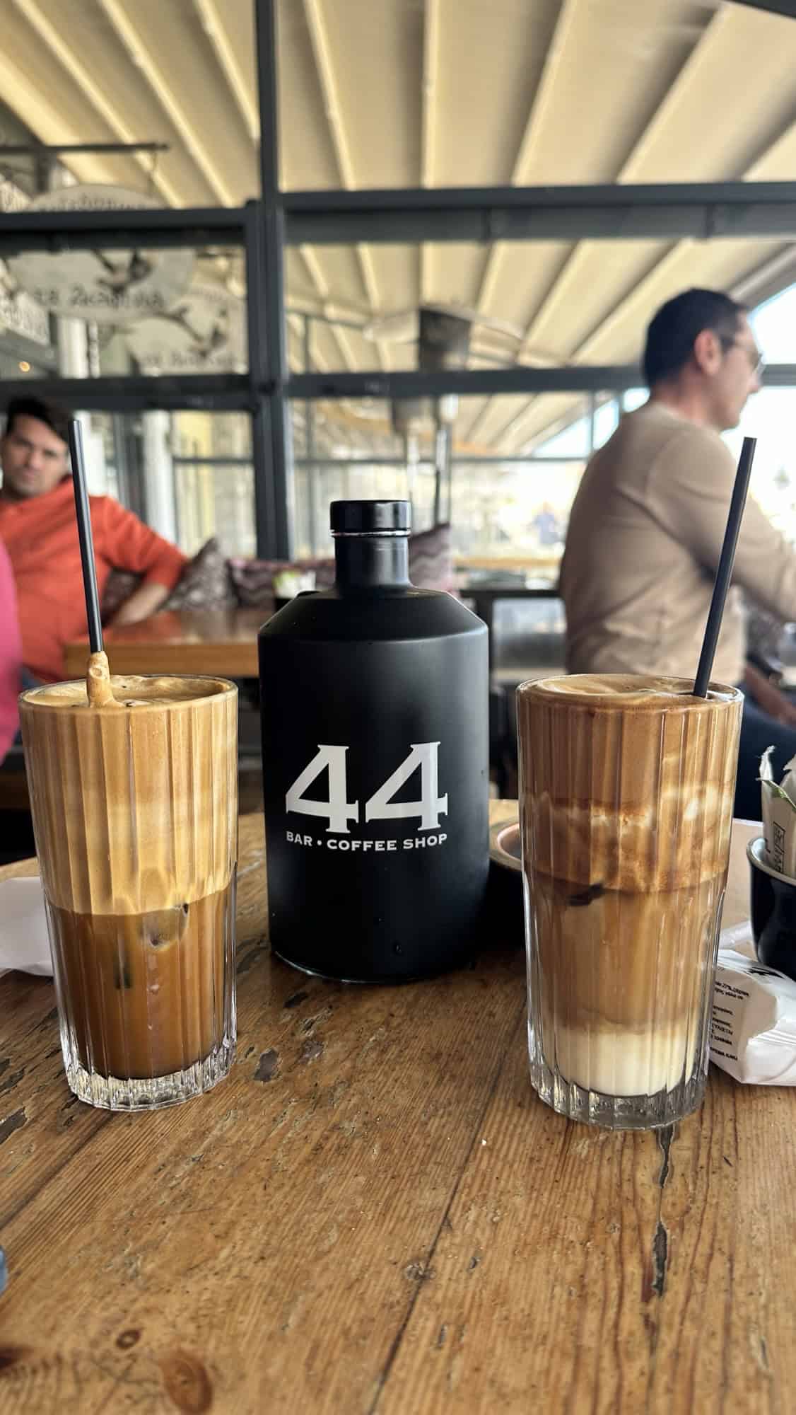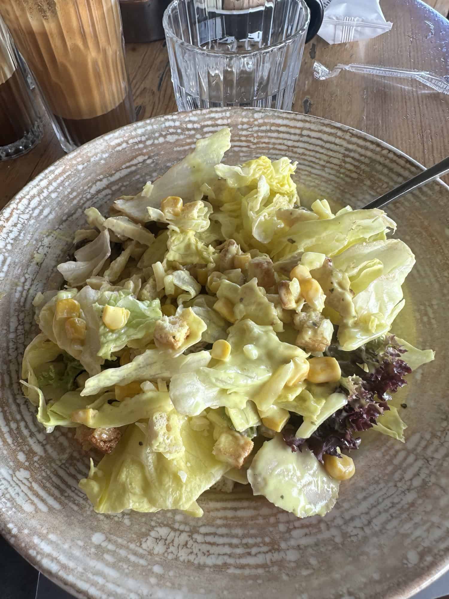 We grabbed a table at 44 Cafe – a coffee bar that also has salads, sandwiches, and wraps. After eating so much yesterday all I wanted was some lettuce. I ordered a Caesar salad, Stelios got a club sandwich, and we got 2 frappes. My salad was definitely not a Caesar salad, nor did it look appetizing but the dressing was actually very tasty and I just needed vegetables after all the heavy food yesterday.