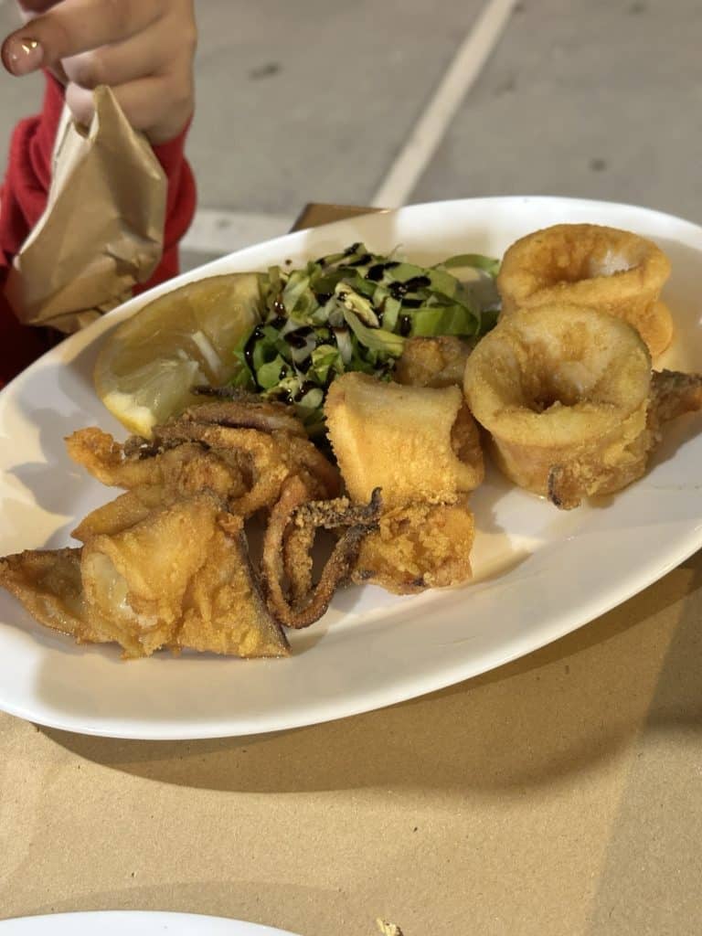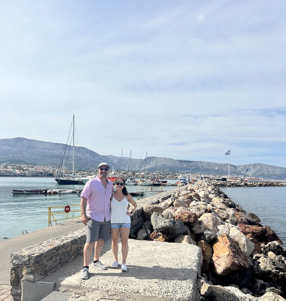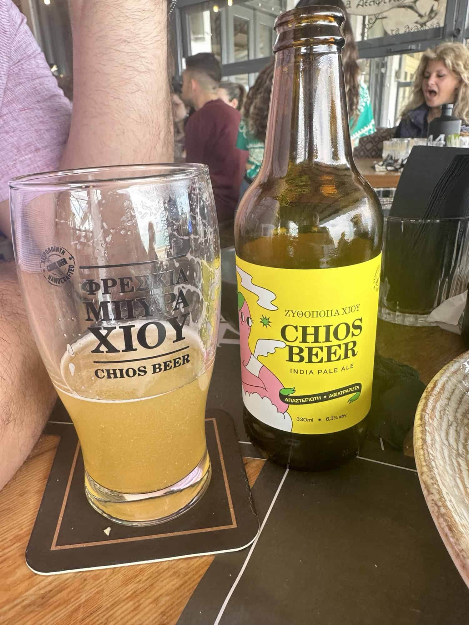 After the hike we drove back home, showered, and drove to Chora for dinner. It was 9:30pm – I was dead tired after the hike (although it seems I’m just always sleepy on this trip) and Leo and Stelios were wide awake. I tried to power through dinner in hopes that I would actually sleep through the night tonight. We walked along the port and grabbed a table at Mi Bainaktaris Estiatorio. We ordered a mix of light bites to share for dinner including spicy feta dip, Greek cheese balls, Greek salad, octopus, calamari, fries, feta with honey pie, Leo’s mastica lemonade, glass of red wine for me, and a chios beer for Stelios. We finished up dinner and went home. Time for bed, kalinychta.