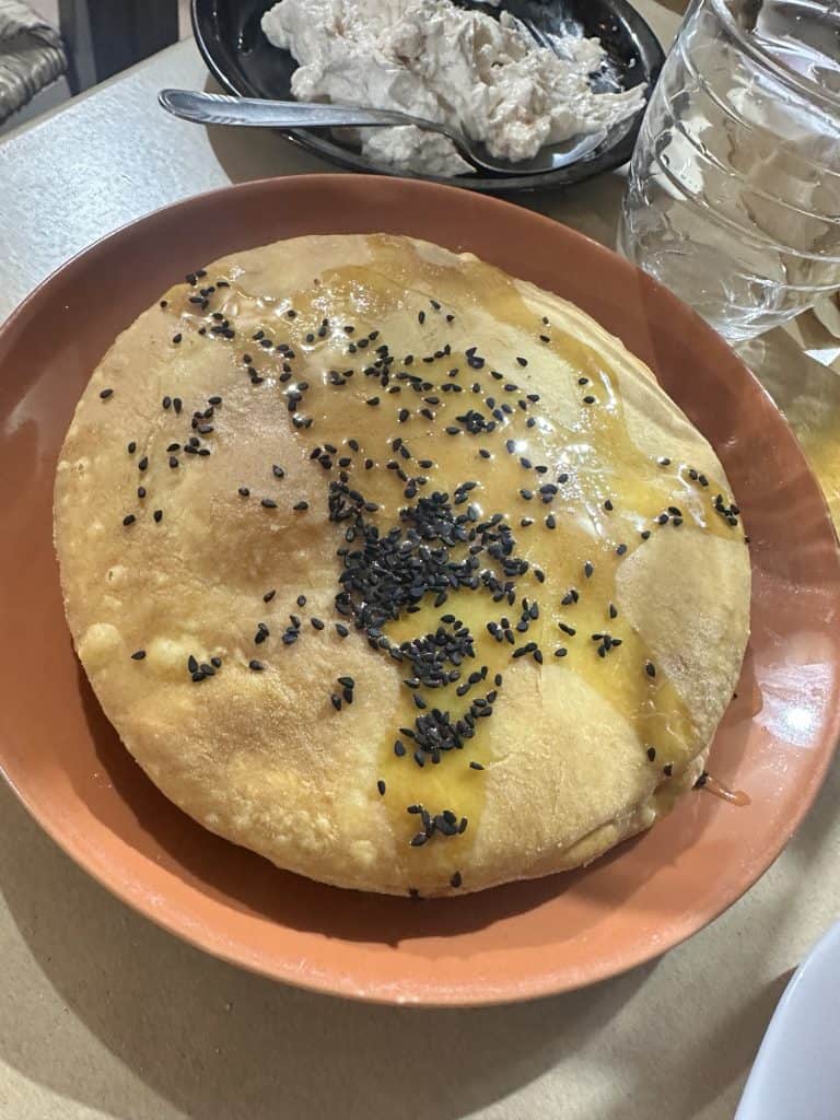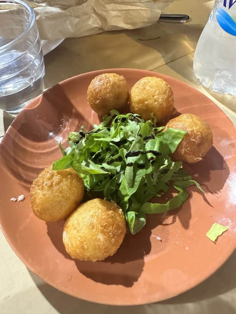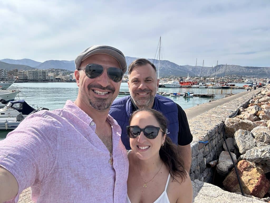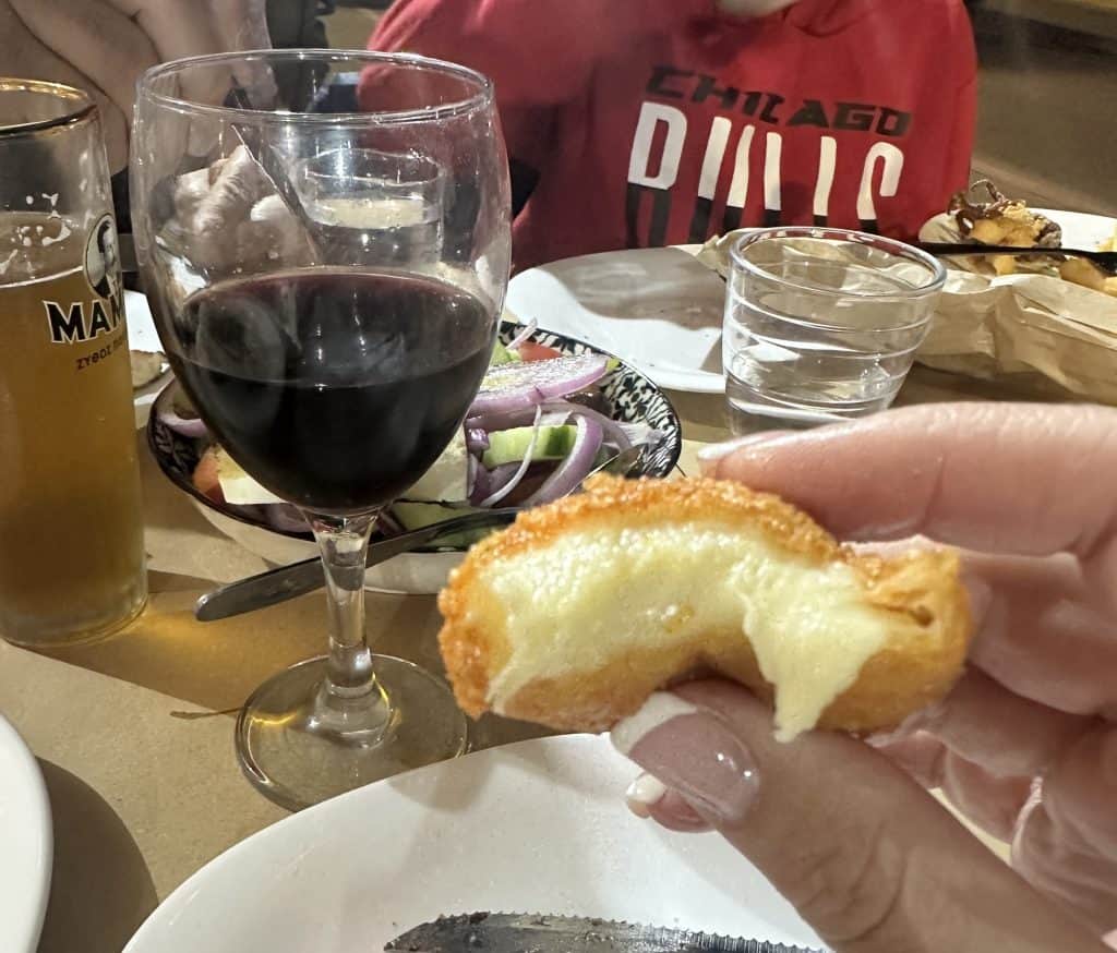After the hike we drove back home, showered, and drove to Chora for dinner. It was 9:30pm – I was dead tired after the hike (although it seems I’m just always sleepy on this trip) and Leo and Stelios were wide awake. I tried to power through dinner in hopes that I would actually sleep through the night tonight. We walked along the port and grabbed a table at Mi Bainaktaris Estiatorio. We ordered a mix of light bites to share for dinner including spicy feta dip, Greek cheese balls, Greek salad, octopus, calamari, fries, feta with honey pie, Leo’s mastica lemonade, glass of red wine for me, and a chios beer for Stelios. We finished up dinner and went home. Time for bed, kalinychta.