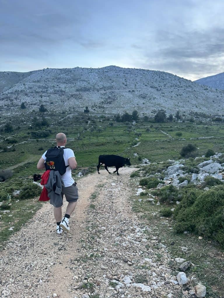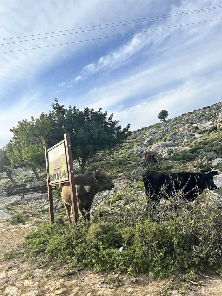 The hike was beautiful, remote, and we were the only ones on the mountain the whole way up. We did encounter a lot of local cows who stopped and stared at us as we passed by. I realized we missed the first turn at one point and had to backtrack 10 minutes