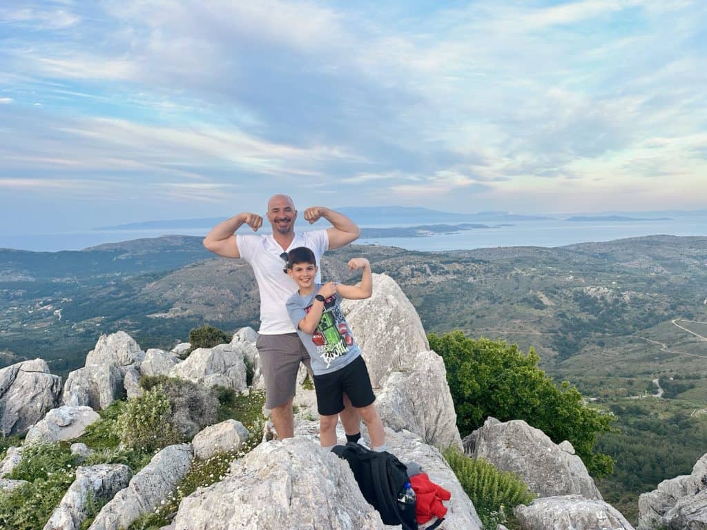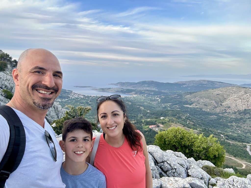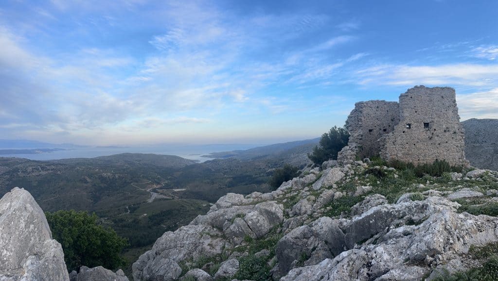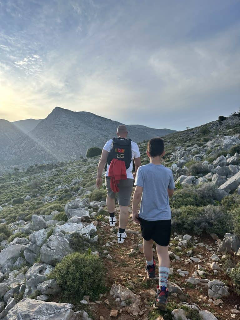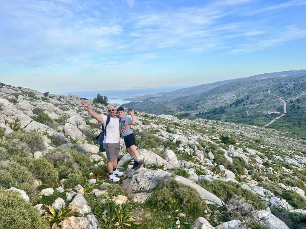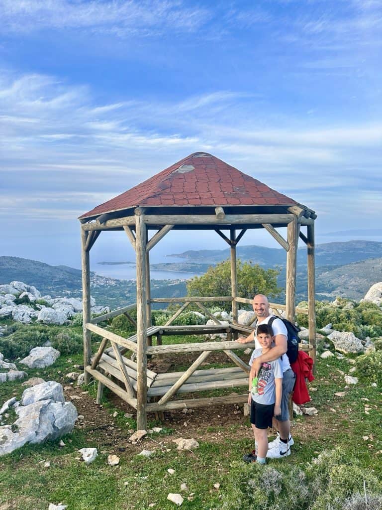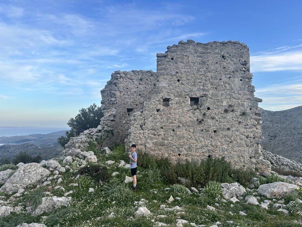 For some reason I’ve been getting extremely sleepy around 5pm on this trip which makes no sense because that’s 11am back home. I needed to push through so we decided to go on a hike with Leo. I had saved a few hikes on AllTrails prior to the trip and picked one that was closer to the house and only 2 miles to see how Leo could handle it. While 2 miles is an easy walk, the incline and elevation in the Chios mountains can be somewhat steep. We drove 25 minutes to the starting point in Kardamyla and then started on our 2 mile hike up the mountain to a spot called Grias Castle.
