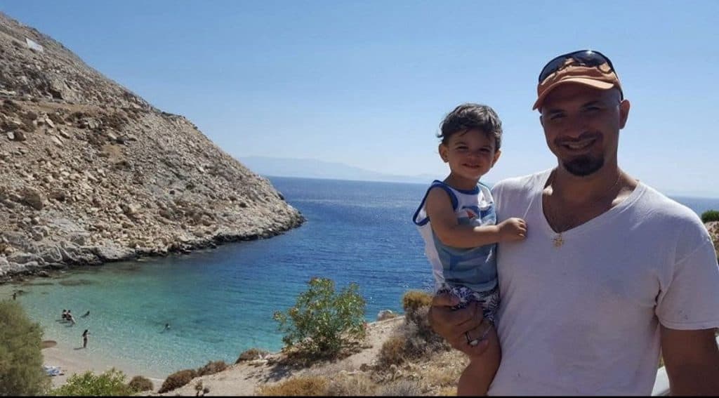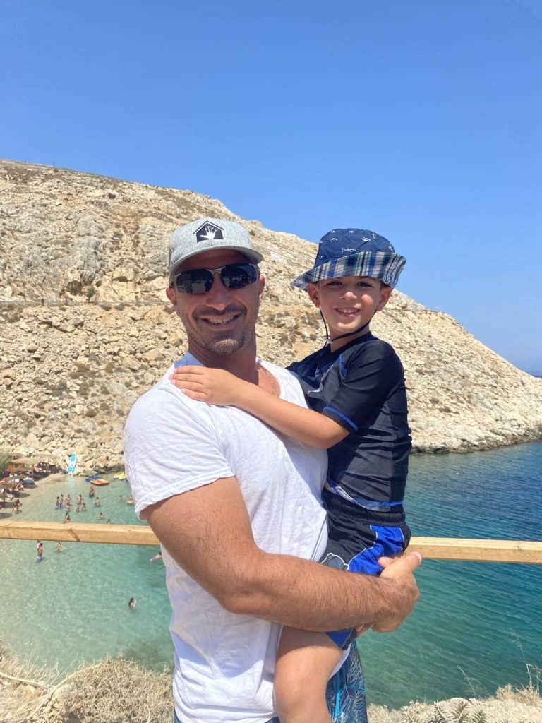 For lunch, we decided to venture out of Chora & drive to Lagada which is a cute smaller port town on the water. On the way there we stopped at Glaroi beach to recreate the picture of Stelios and Leo from when Leo was a baby, and from our last trip to Greece.