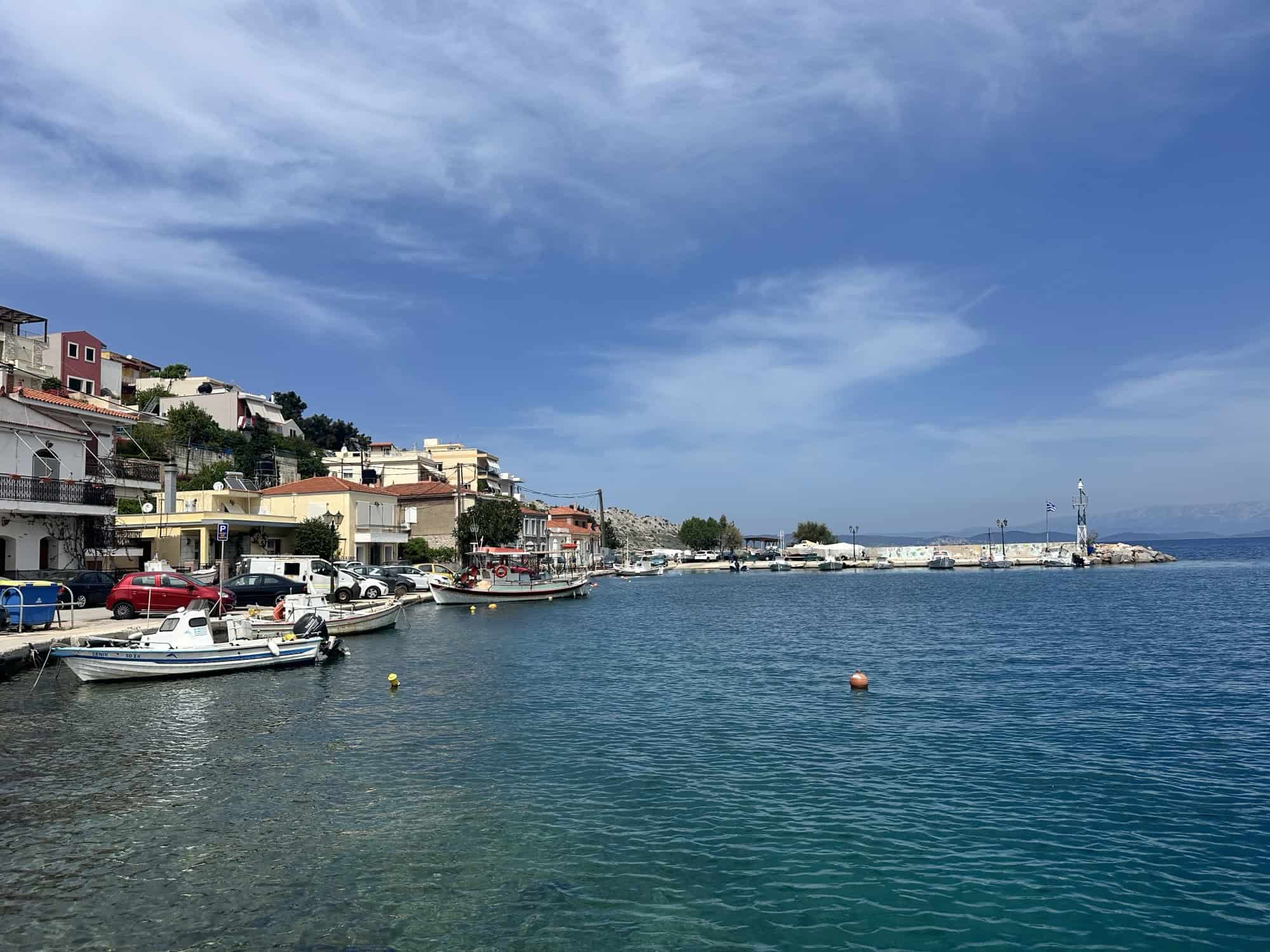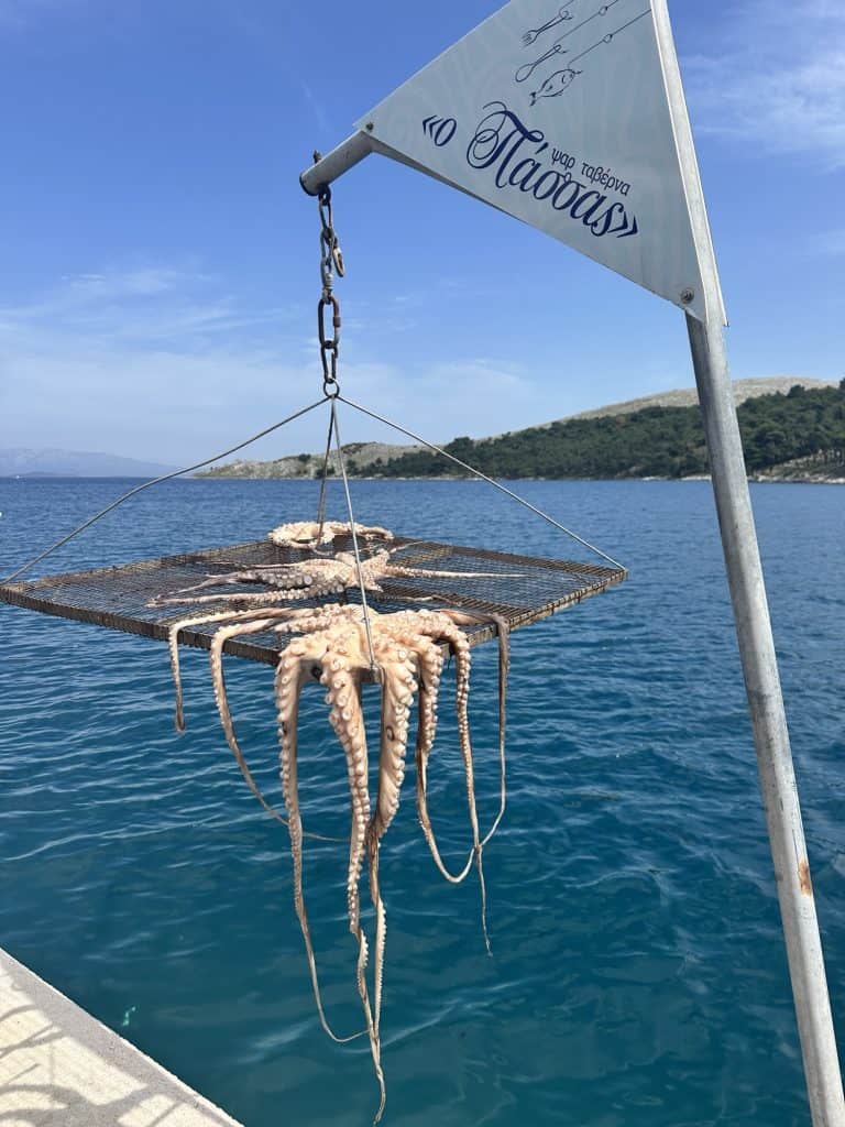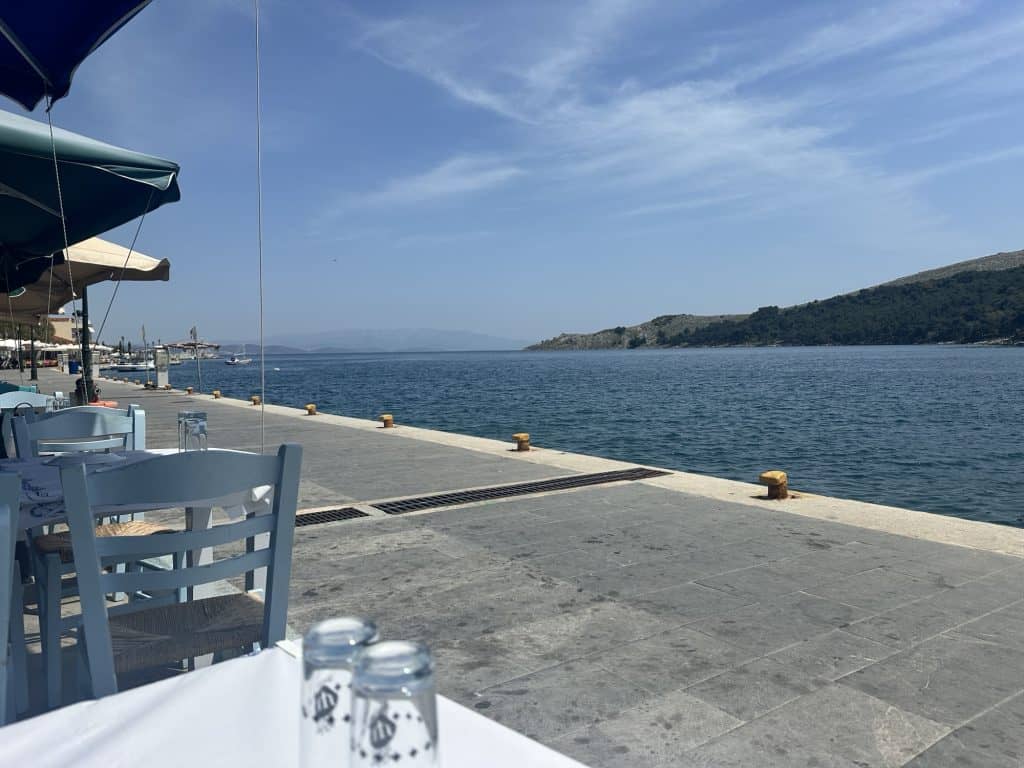 There was a much cooler breeze on this side of the island compared to Chora and the seaside tables restaurants reminded me of Paros a bit. Why did we wait so long to come to this side of the island? I decided on our next trip we need to venture out of Chora more. I get why we go there so often, because that’s where all of Stelis family and friends live but after walking the same port and main street every day it can feel a bit repetitive, so it was nice to have a change of scenery today.