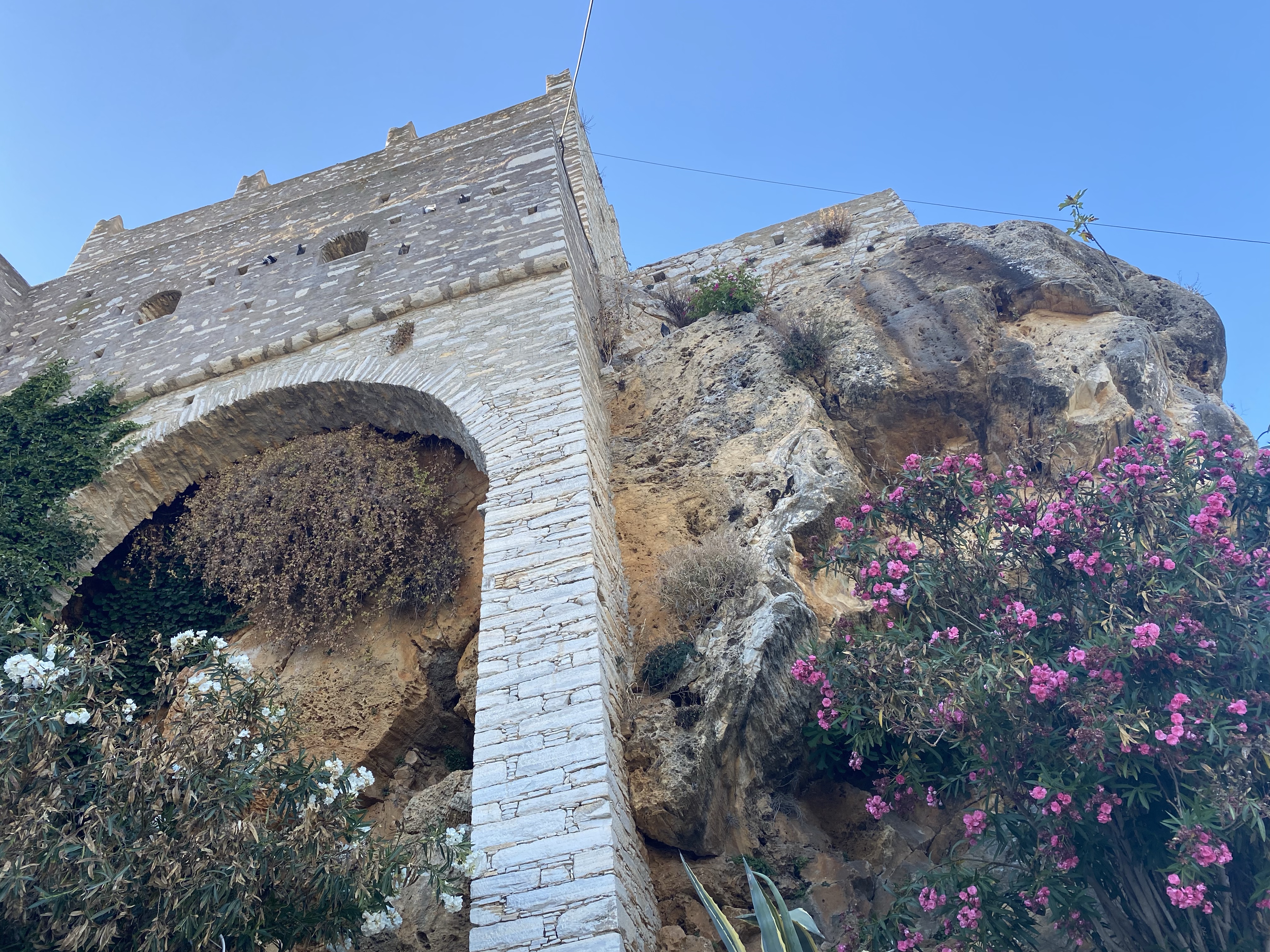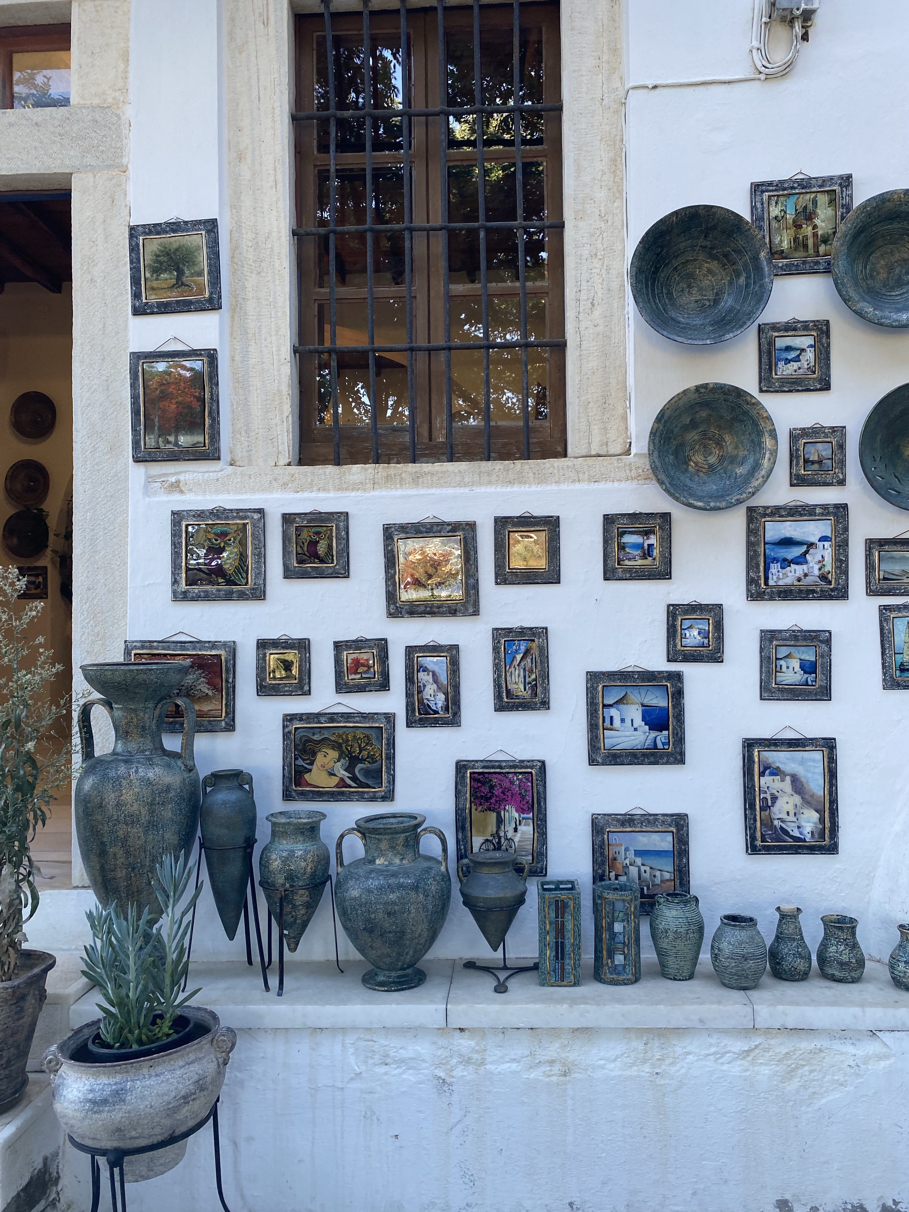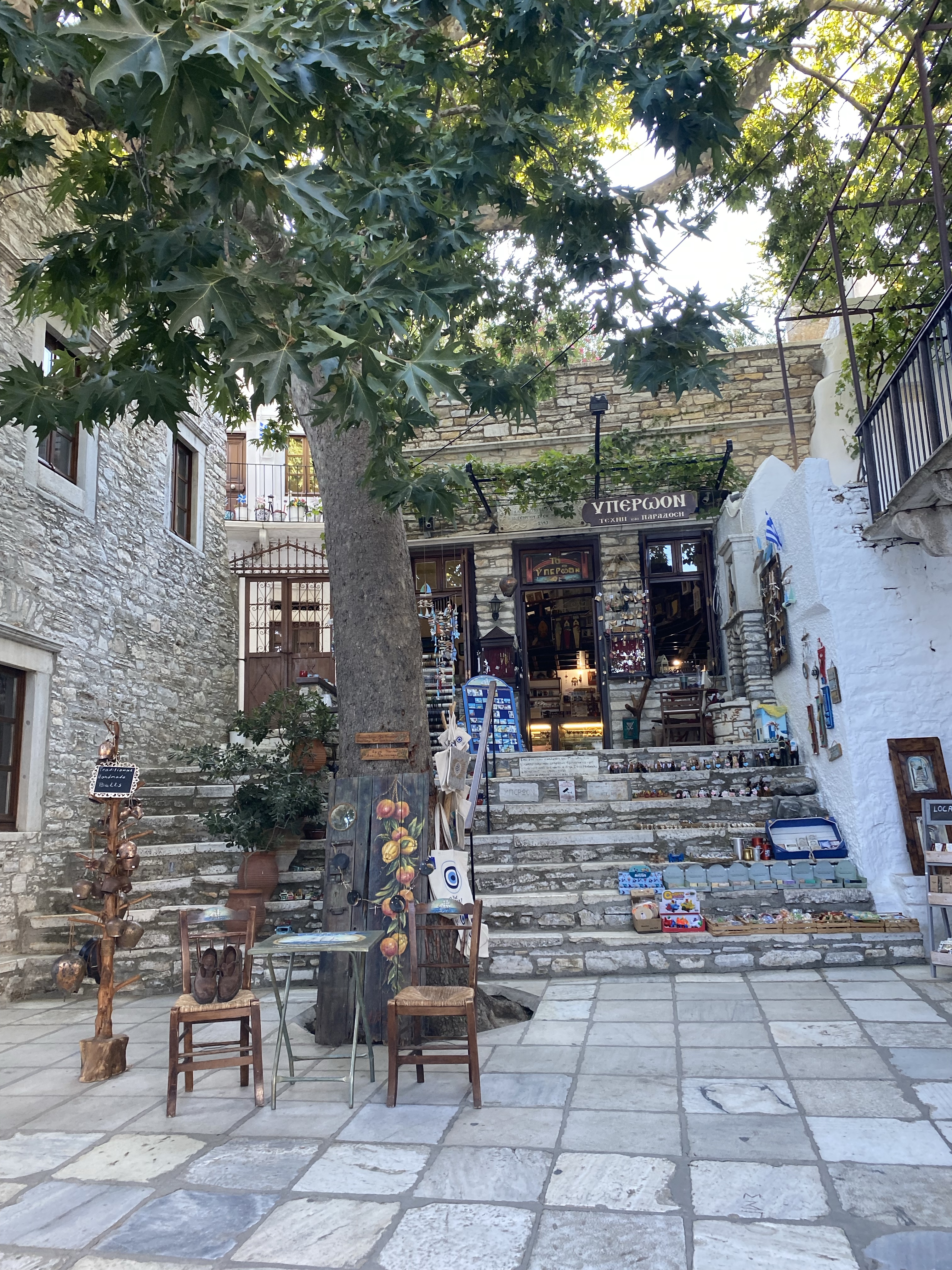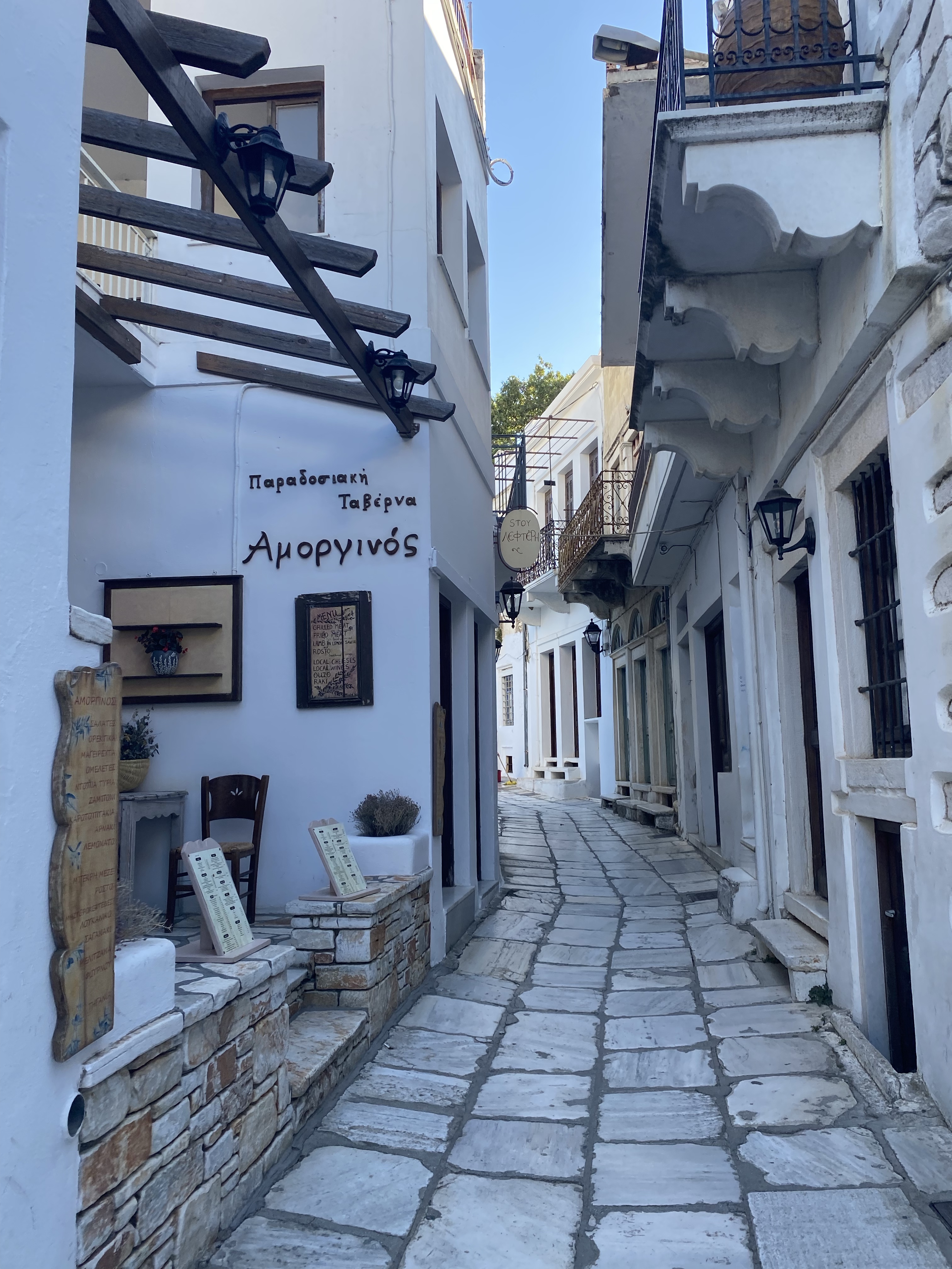 Around 3pm we had enough of the beach and biked back to Naxos Town to shower and change for dinner. We biked 40 mins through the mountains, and around very windy roads, but Stelios is an excellent driver and I never feel unsafe on the bike. We went all the way to Aperianthos, which was the village that was recommended to us by everyone we met in Paros to check out during our stay in Naxos. We saw the Tower of Zevgolis – it belonged to the Somaripa family of Venetians feudal lords and today is occupied by their ancestors. We also passed through some cool village shops with local pottery, art, and herbs, but overall I thought the village of Aperianthos was very underwhelming. At least the bike ride up the mountain was fun and filled with amazing views, plus we had some time to kill before dinner.