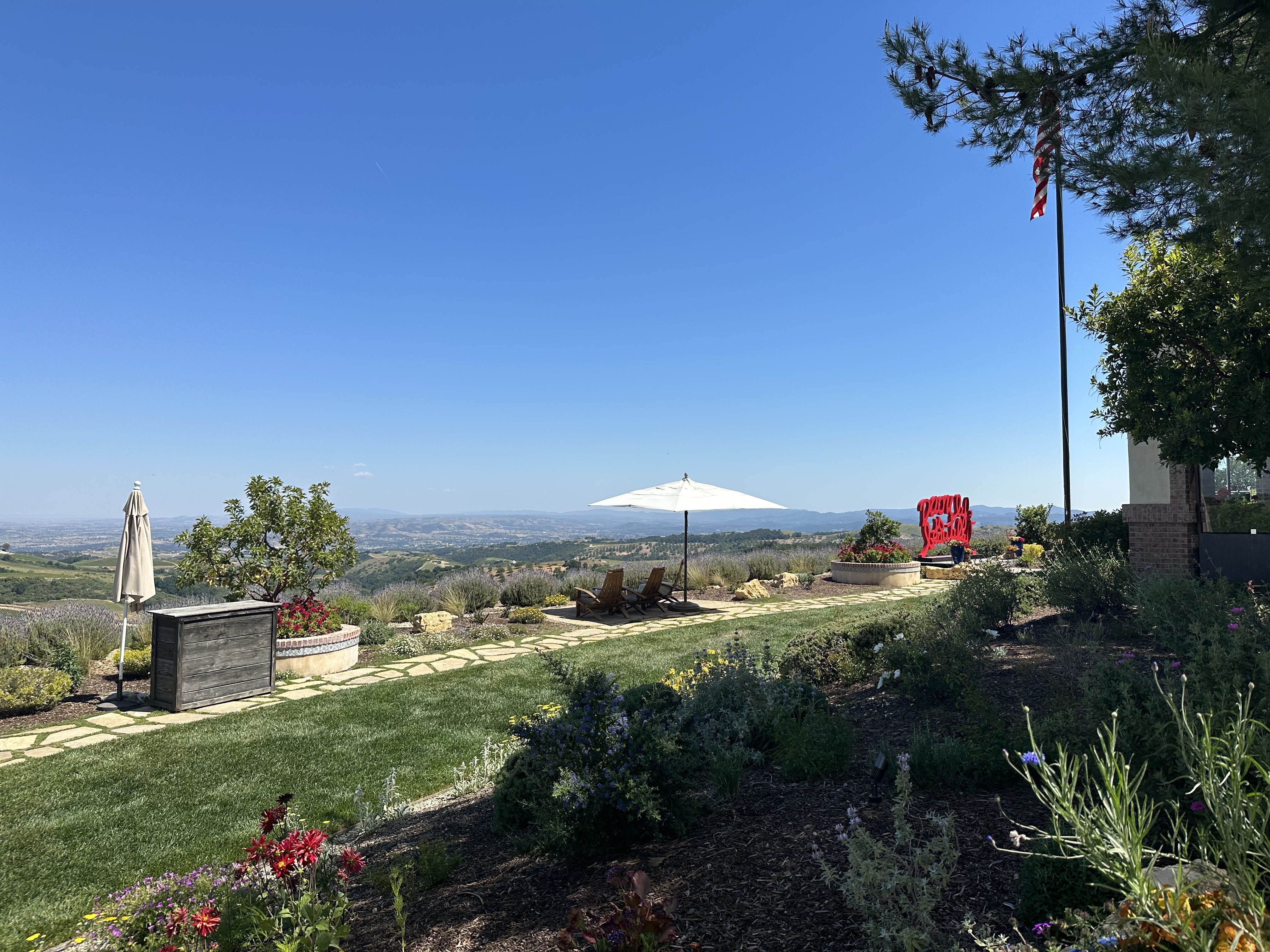 Our next stop was Daou. This is the winery I was looking forward to the most simply because the views are supposed to be incredible – and upon arrival it was simply breathtaking. The photos below simply do not do it justice. The winery resembles a large Spanish villa, with the rolling hills of Paso and the vineyard below. The outdoor patio has large couches, stone tables for dining, and beautiful landscaping surrounding the winery.