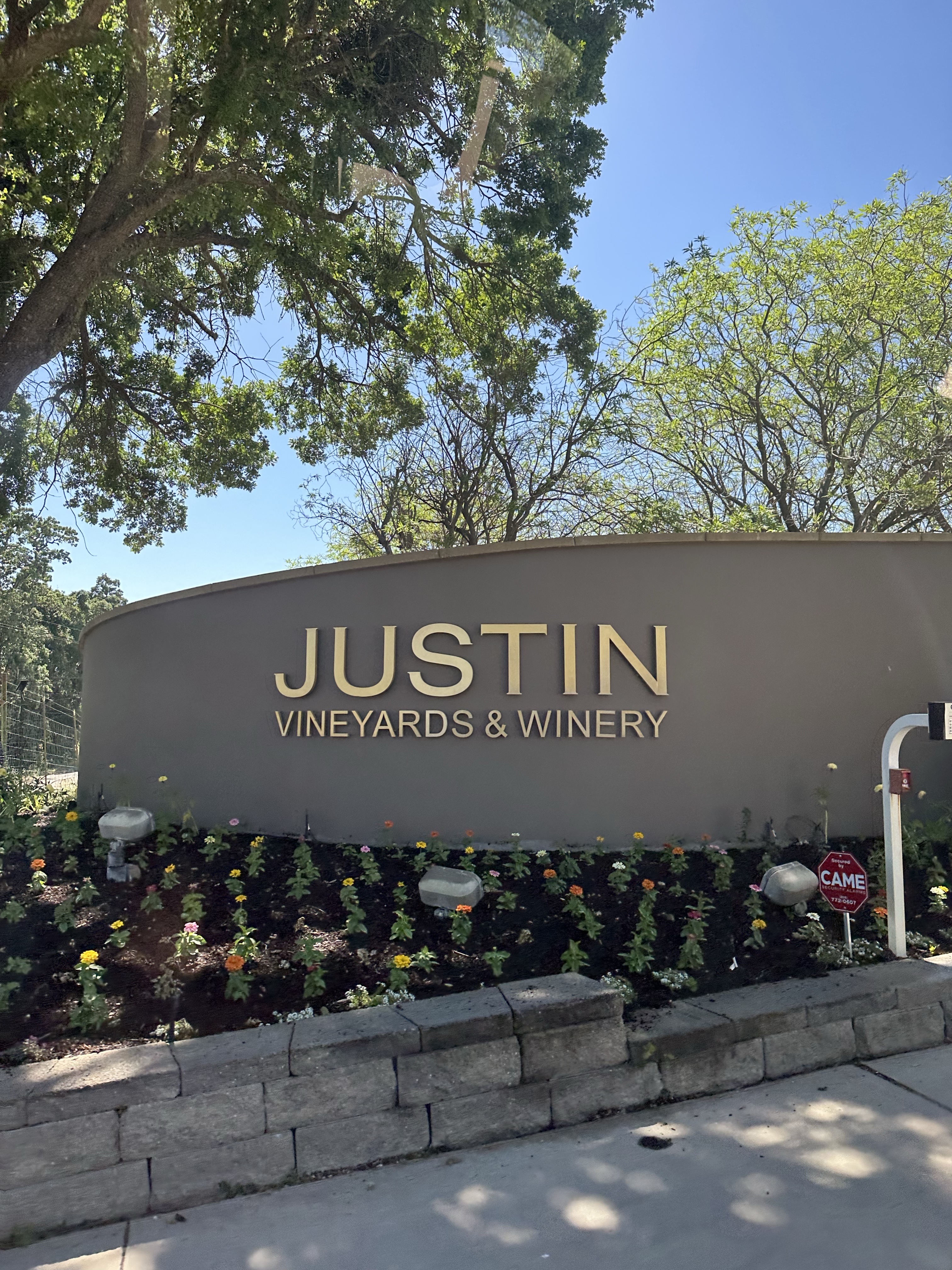 Our last and final stop was Justin Vineyards. We were set to arrive at Justin about 30 min later than our original reservation time, but luckily it was a weekday so Sean said we should be fine. However just to be safe Sean called Justin and was able to move us to a later reservation time slot.