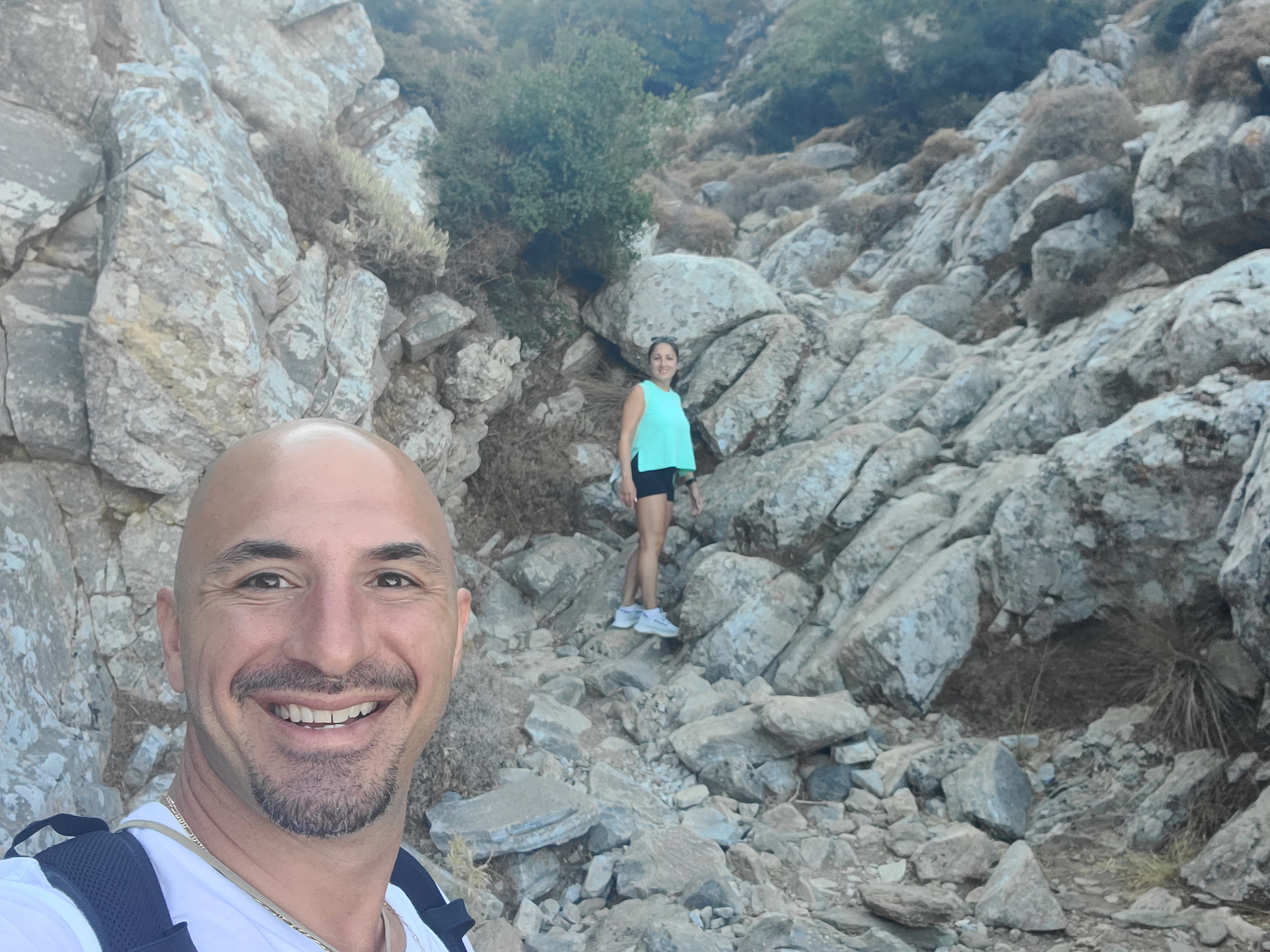 This hike was STRENUOUS in terms of elevation and the fact that you are literally climbing up boulders and rocks, maneuvering on all 4’s at times WAS DIFFICULT. Also you occasionally have to watch out for the prickly thorn bushes that hug some of the boulders. Both Stelios & I got pricked a few times. This continued for the next hour.