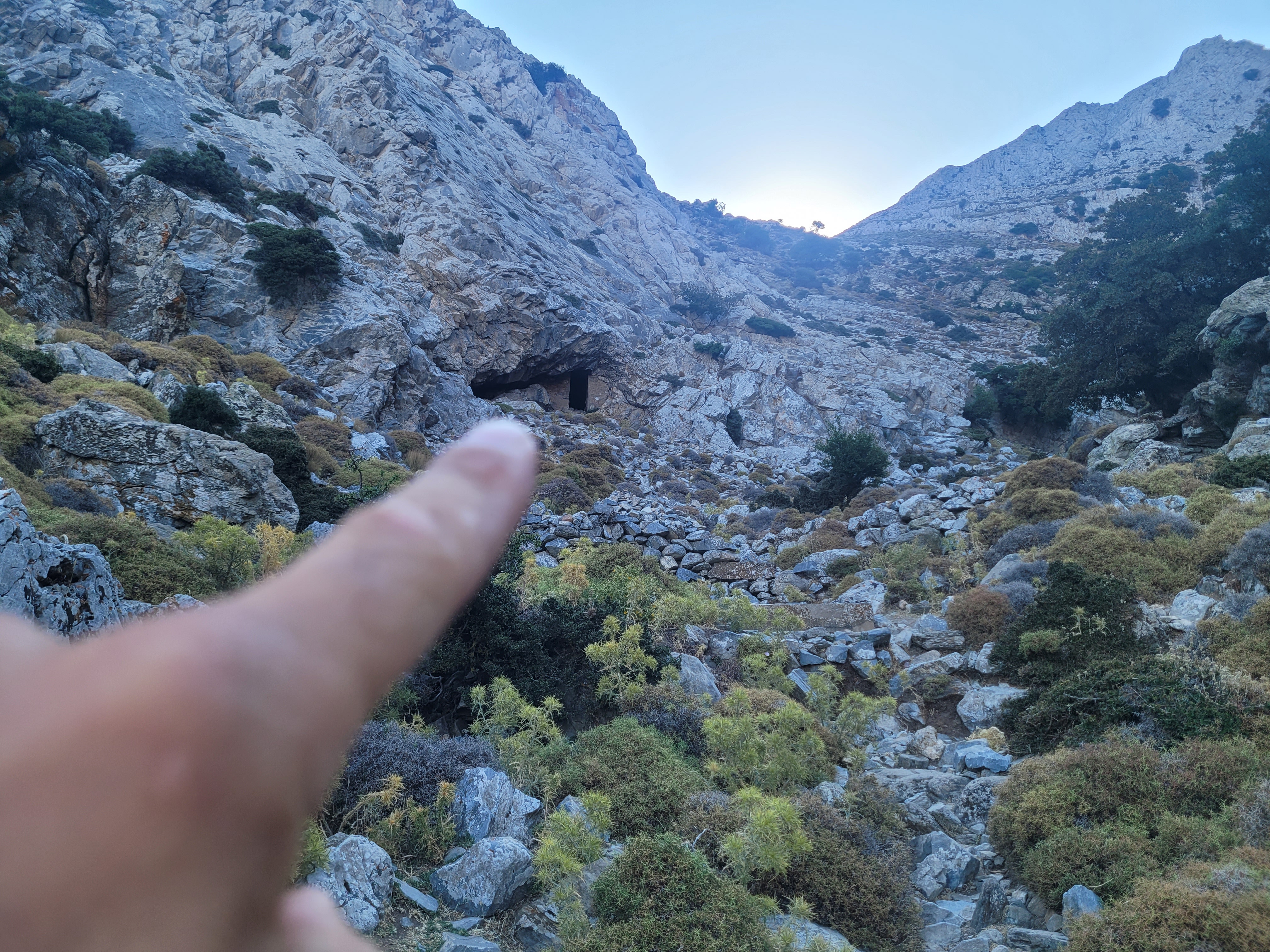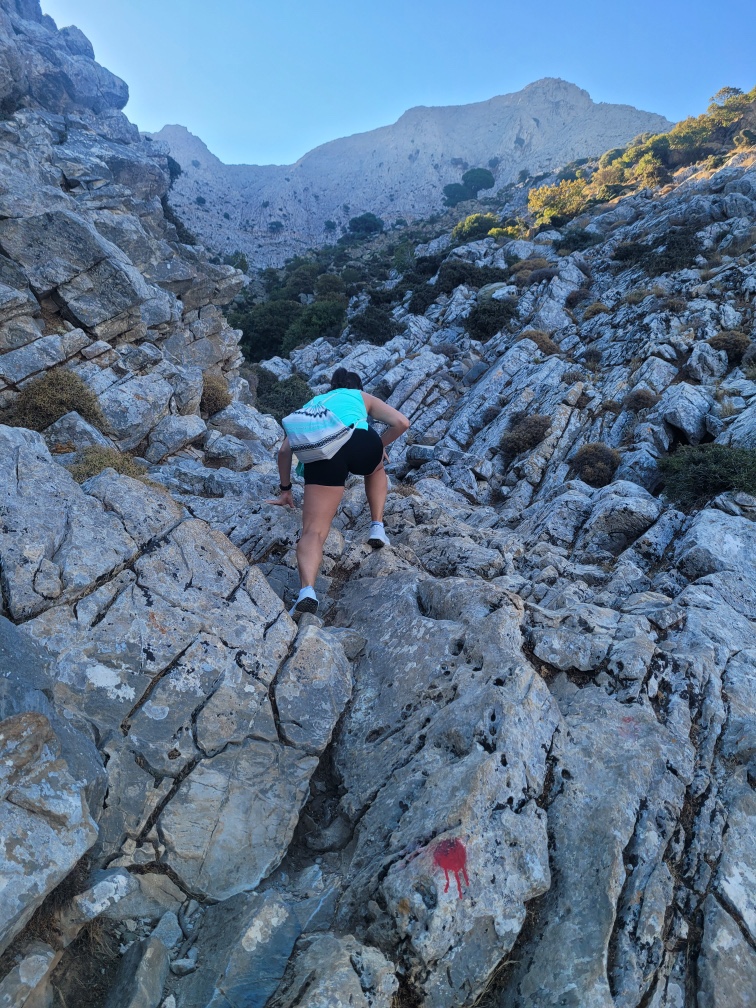 Once the walking stone path ends the true hike begins and you have to climb up a series of rocks to get to the Cave of Zeus.