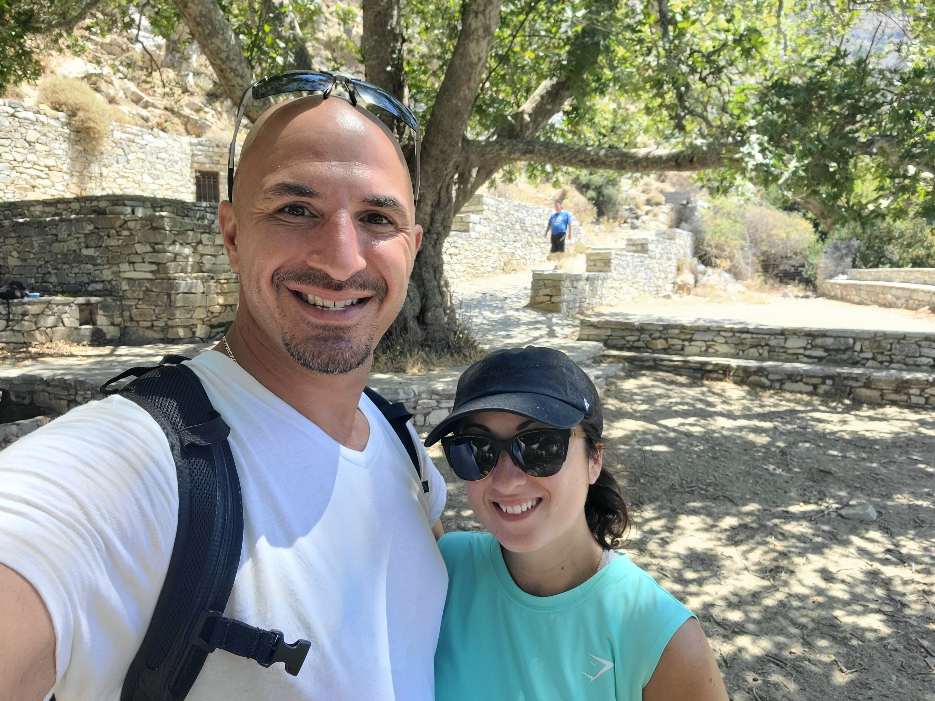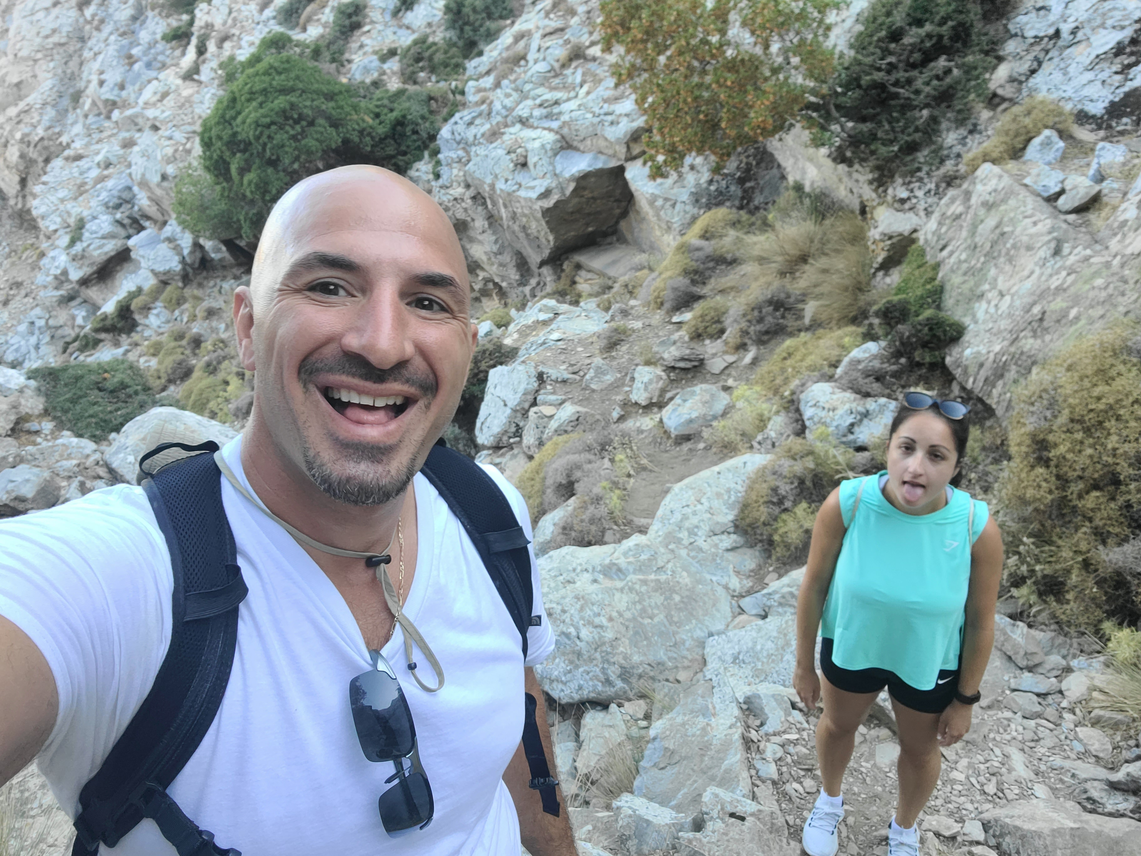 On AllTrails this hike was marked as a moderate hike and the reviews that I read made the hike sound tough but not horrible. Prior to this vacation I was running 4-5x a week and going to Pilates, so I figured I could handle it. Maybe it’s because all we did was eat and drink the past 7 days and I haven’t worked out since we got to Greece, but I felt like I WAS GOING TO DIE. This is NOT a fun leisurely “moderate” hike. This is moderately difficult for a good hiker & extremely difficult for an amateur hiker like me. Stelios said it was the hardest terrain he’s ever experienced on a hike, and the 2nd hardest hike he’s done overall. (Simply because the first hike was 4 days long up the Inca Trail in Peru).