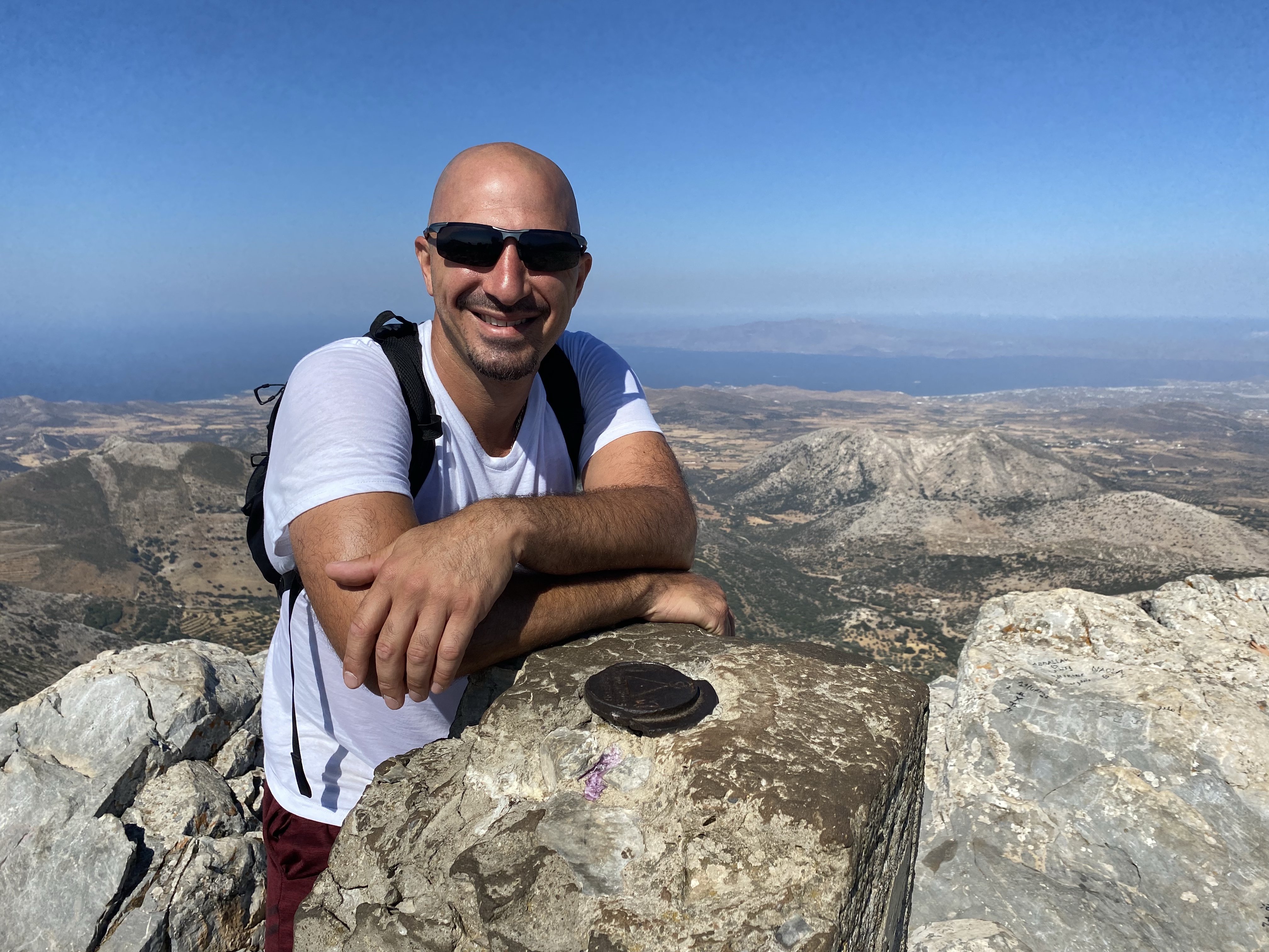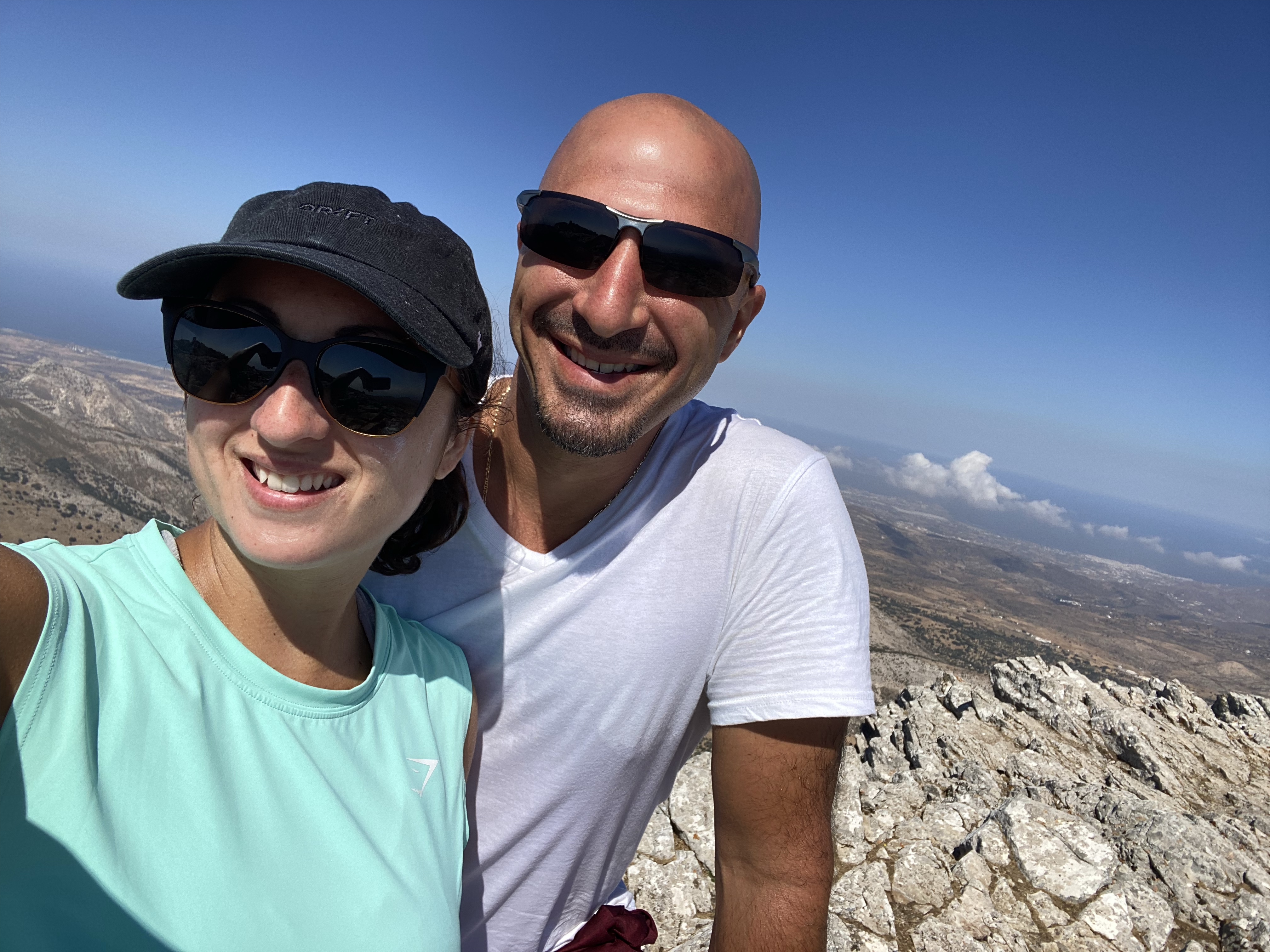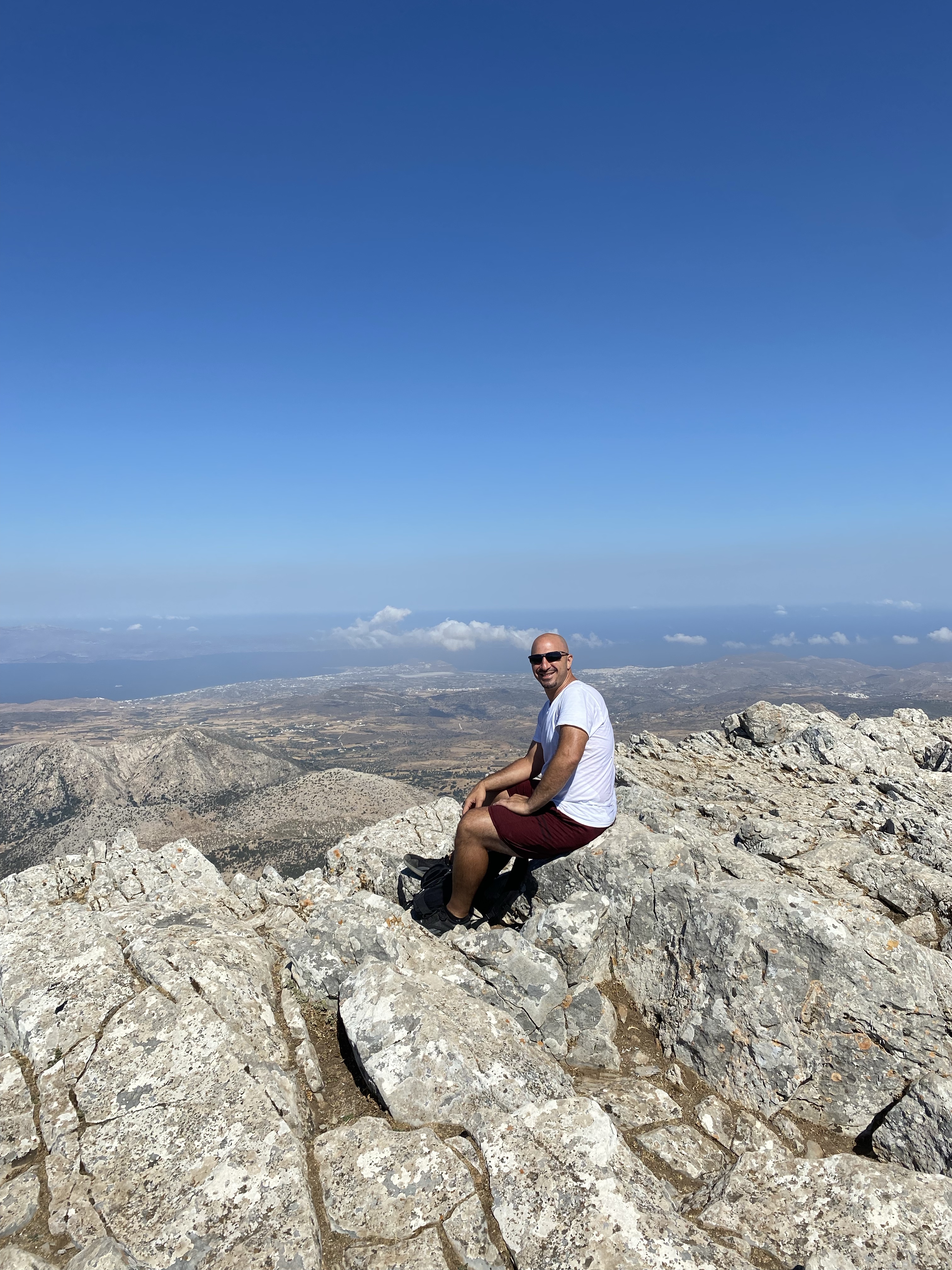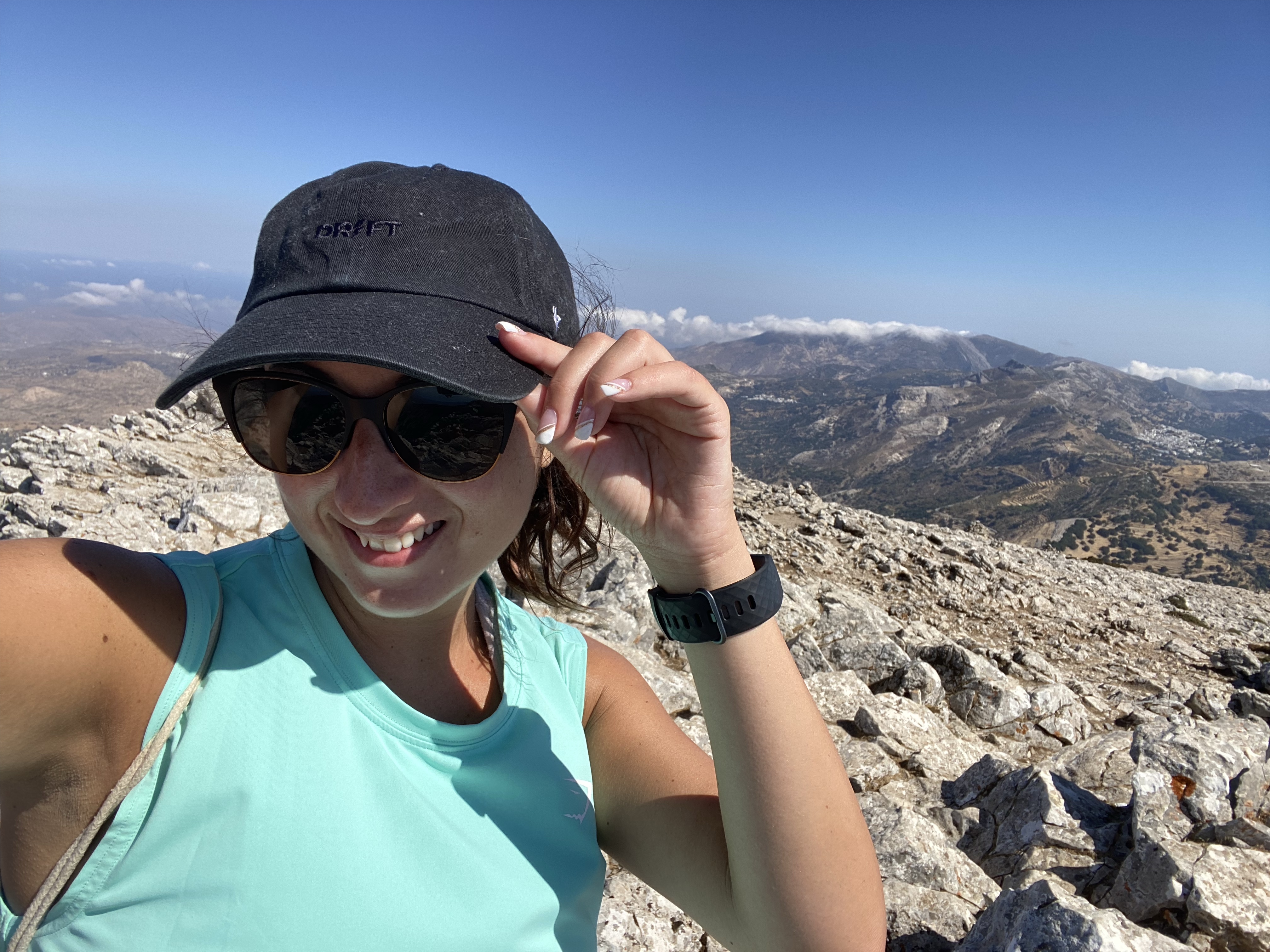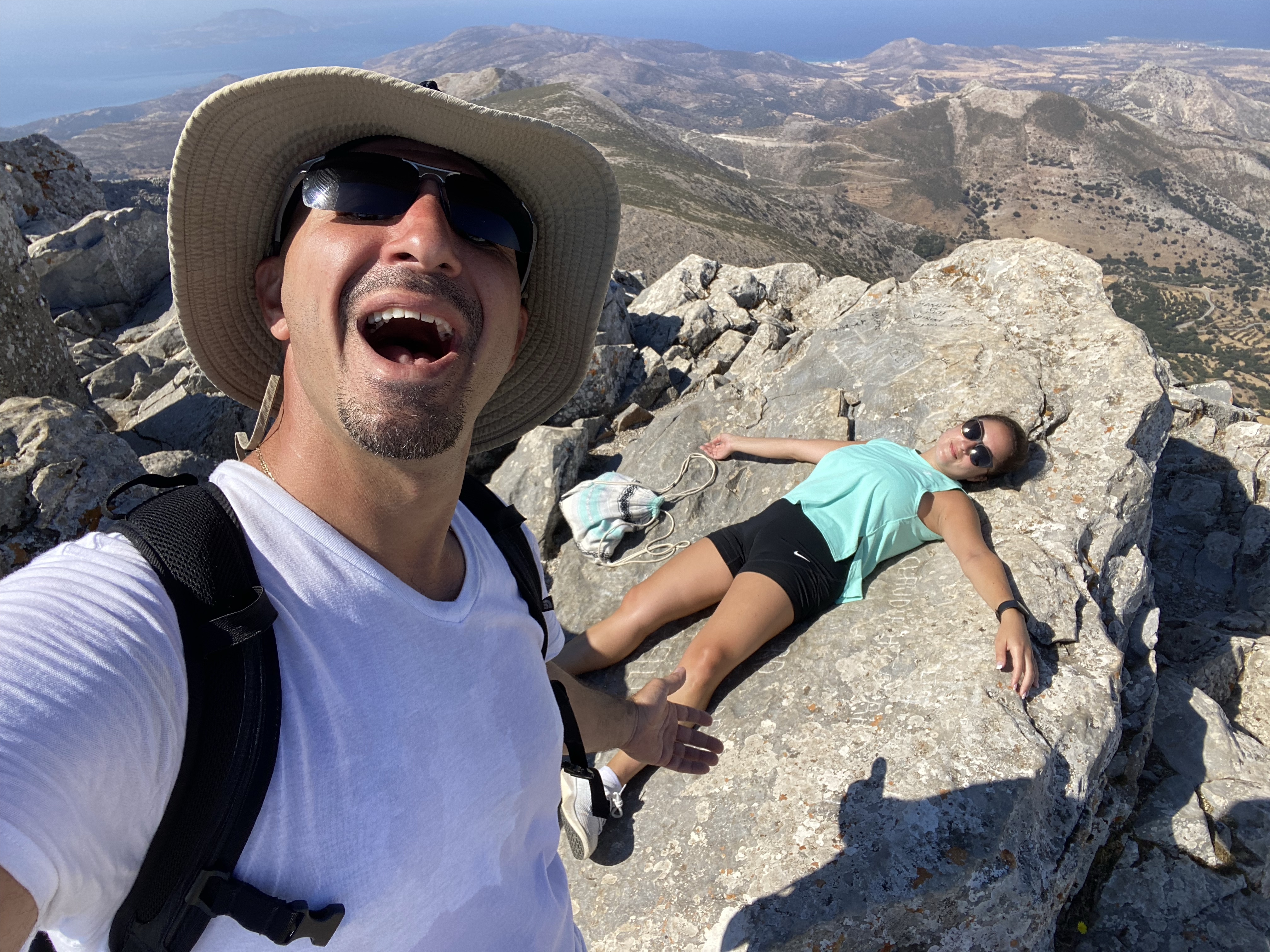 We FINALLY got to the top after 1.5 hours (to me it felt like 3) that includes stopping for 15-20 min to explore the cave of Zeus & stopping for water breaks. Once we reached the top I sprawled out and flopped on one of the flatter rocks to catch my breath and reflect on what just happened.