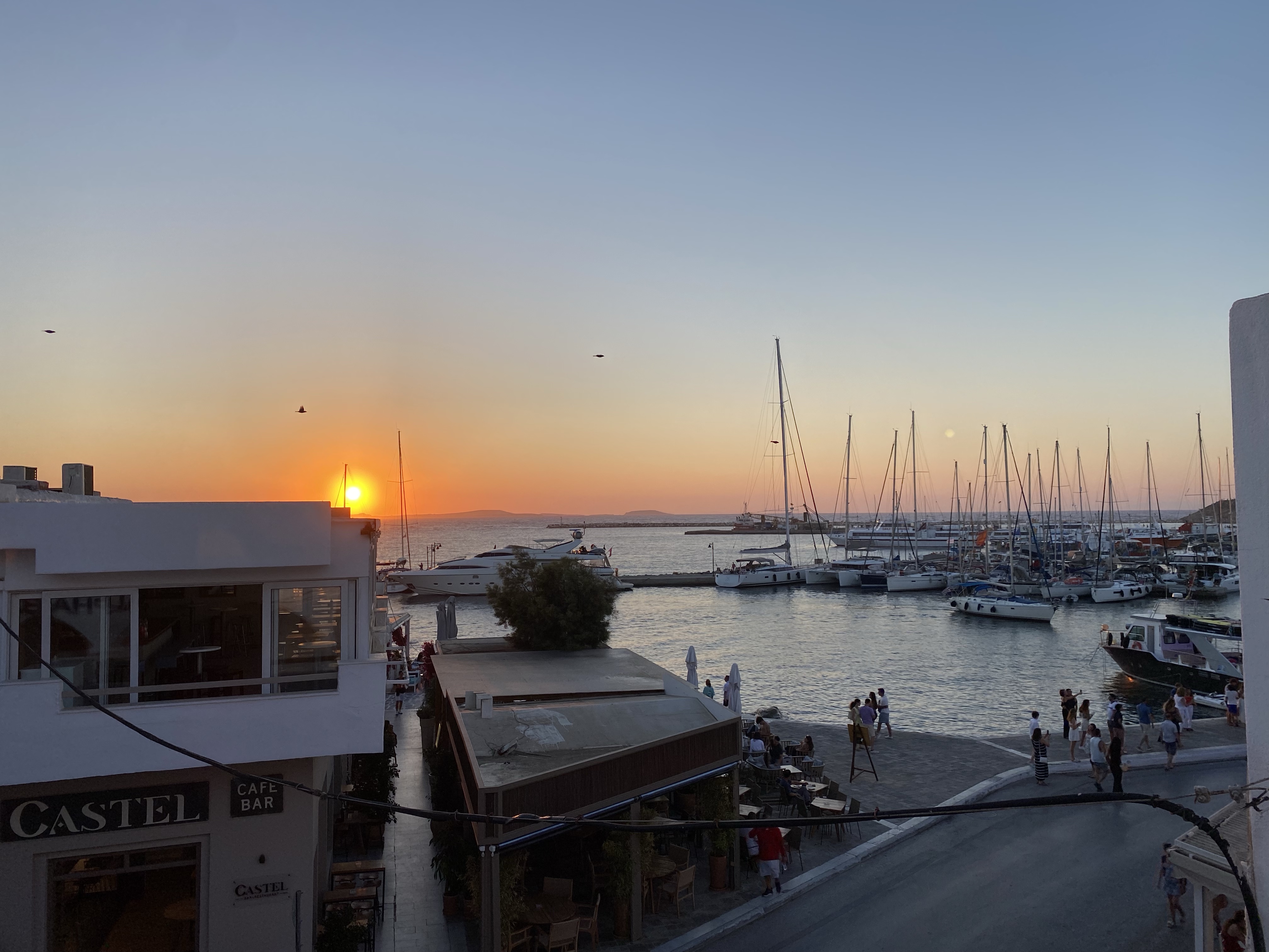 After housing our two gyros, we walked back to our Airbnb to relax on the balcony and sip on some bottles of Greek Rosé. We waited for the sun to go down & watch another incredible sunset over the port of Naxos.