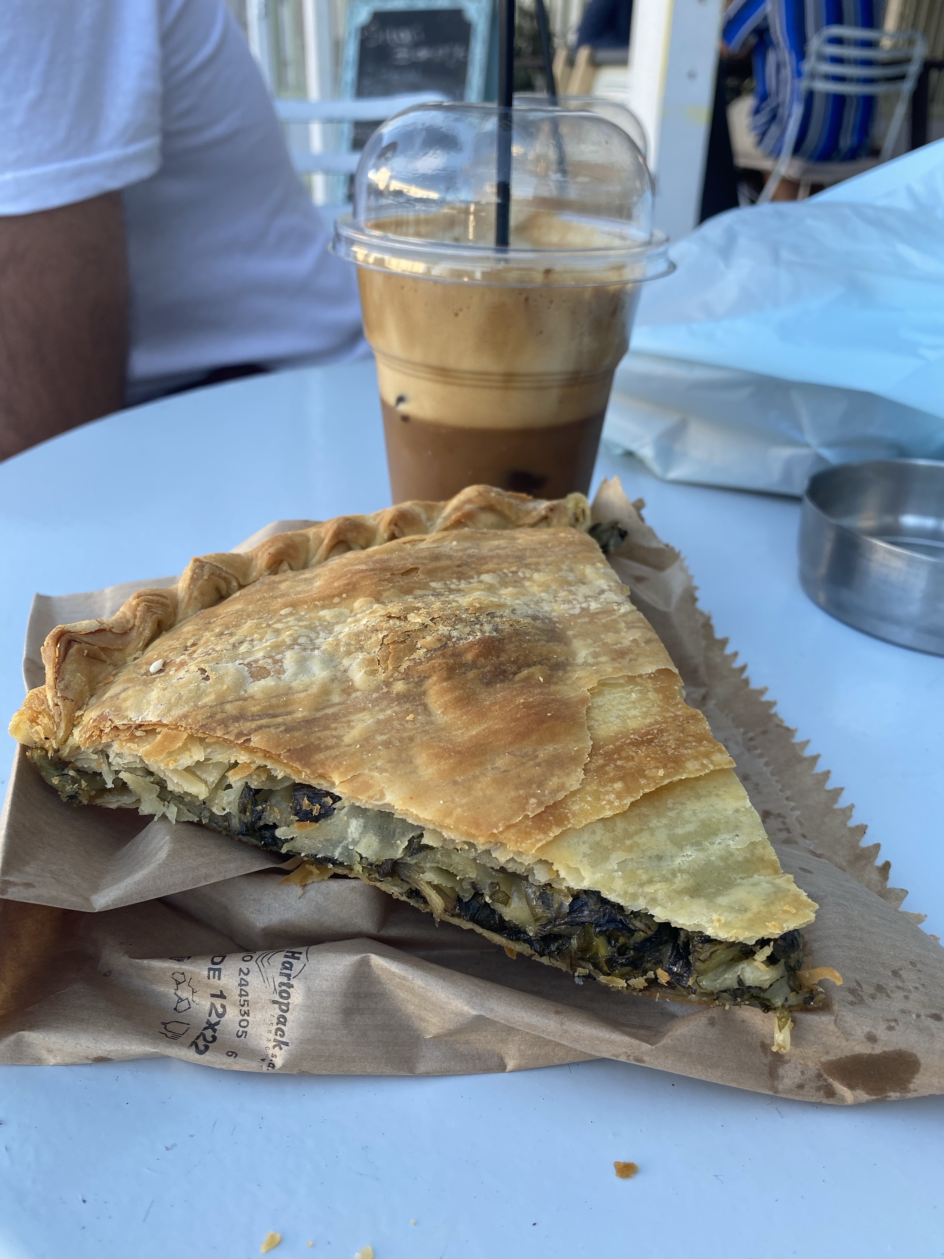 We walked to the Platia (town center) for an early breakfast, since most restaurants are not open this early in Greece. We saw the Bakery lights on and walked in. I got a Vegan Spanakopita (couldn’t risk eating dairy before our 4 hour hike) and Stelios had a regular Spanakopita. Looking back now, we probably should’ve had something heartier with more protein. But like I said, our options were limited this early in the day.