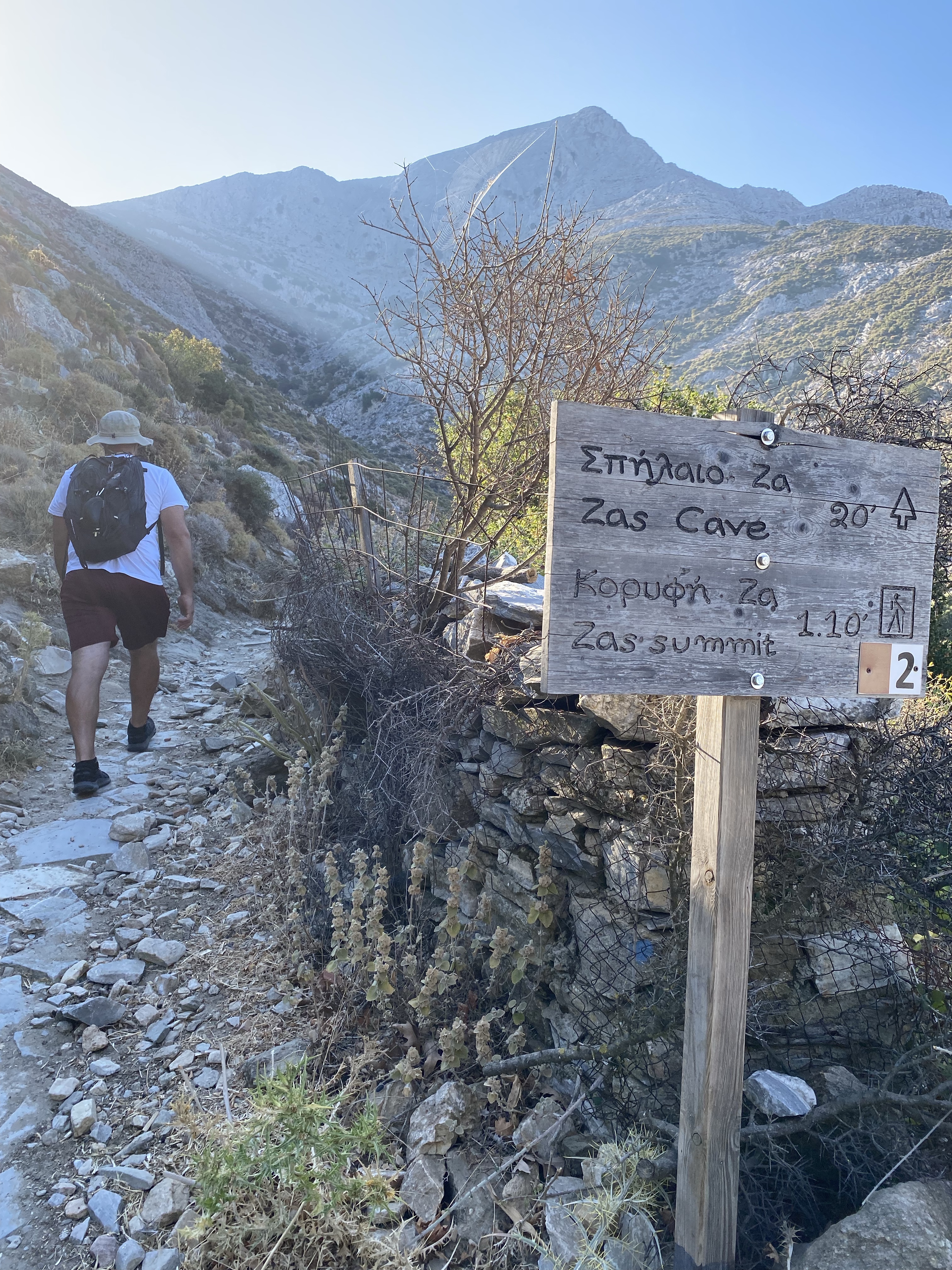 The cave was REALLY COOL so I was glad we took this route rather that going to the other starting point or we wouldn’t have passed it. We walked a few meters into the cave but the rocks were slippery and the flashlight on our phones wasn’t bright/strong enough for us to see deeper in. If you want to really explore the Cave of Zeus you need a legit flashlight. After snapping some pics and checking out the cave for 10 minutes we started back up the summit trail.