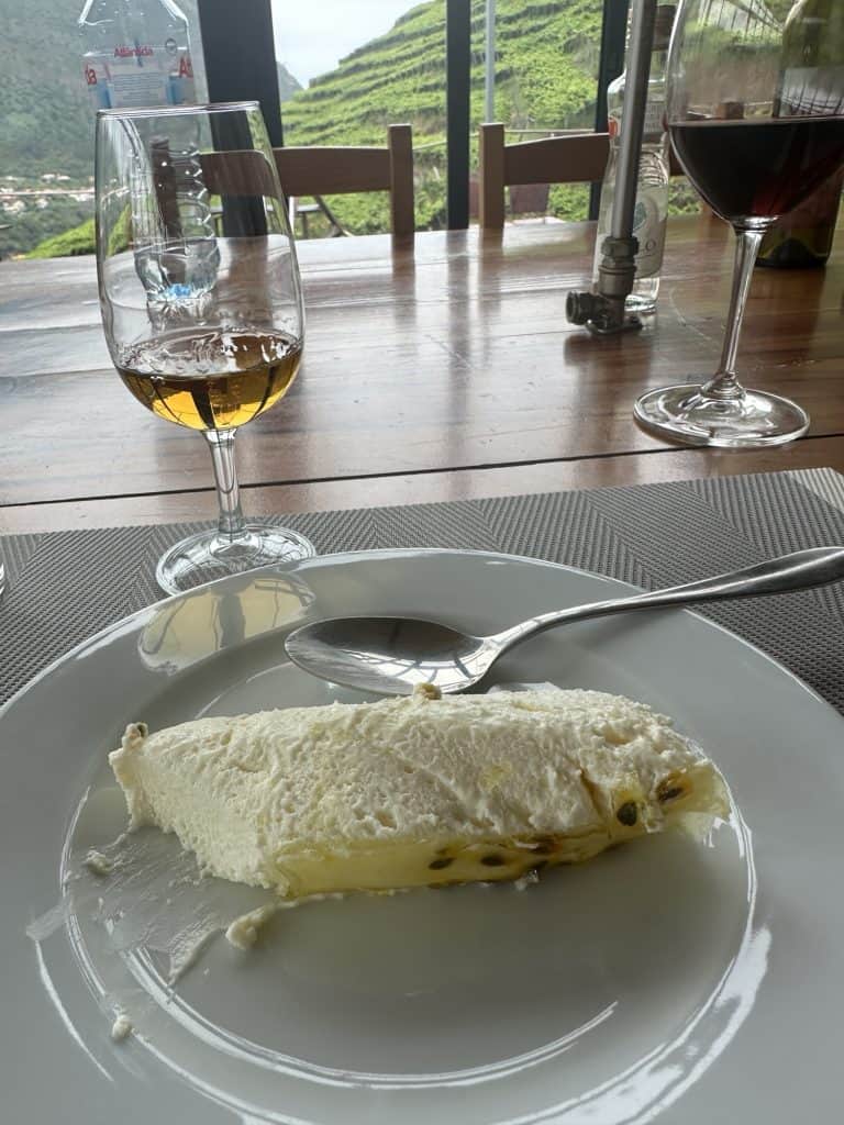 Overall the pours at TerraBona were more generous and I liked their wine better, but they only did white wine there where as Quinta do Barbusano had more variety. After tasting the 6 wines they asked us which was our favorite and we were served an additional glass (or two) with lunch. For lunch we had bolo de caco, salad, Espetada, and a side of potatoes. However, the dessert course was my favorite – homemade passion fruit pudding, I basically licked the plate clean. By 3pm we had finished our wine tour and jumped in our car to head back to Funchal. While the north of Madeira was beautiful, lush, and remote, it had been fairly cloudy and I was excited to be back on the sunnier side of the island.