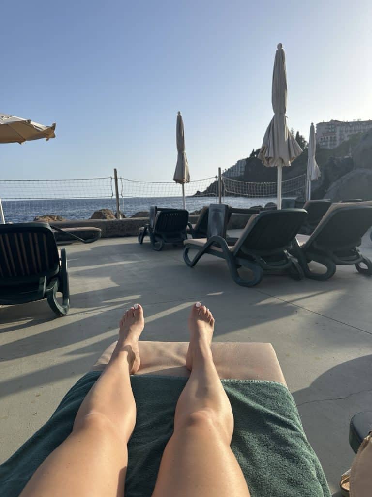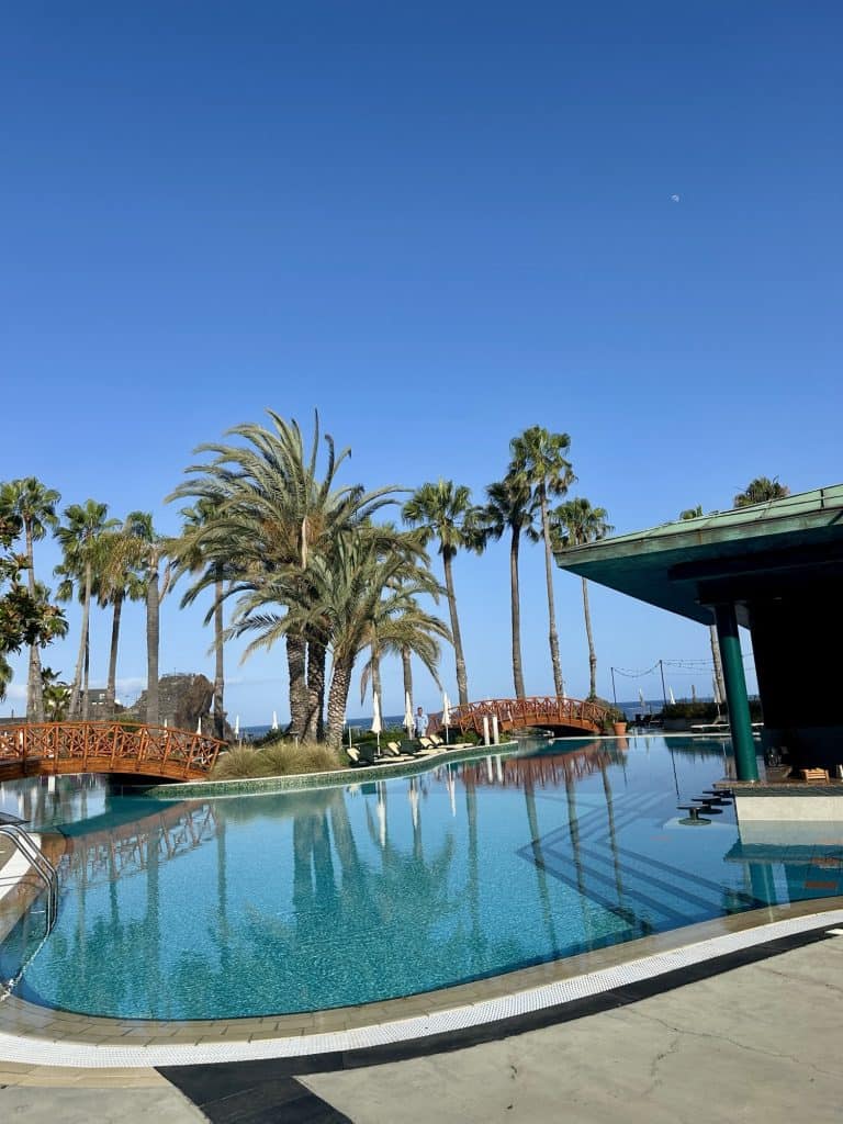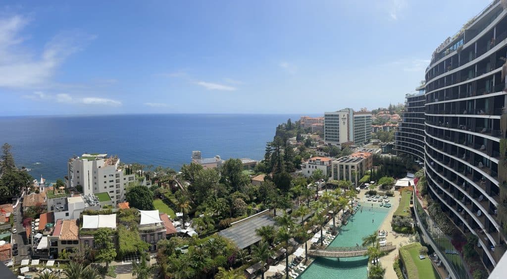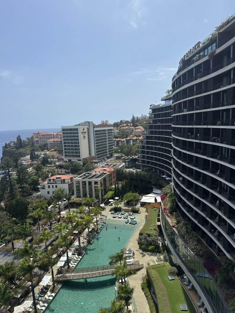 We checked into the Savoy Palace by 3:45pm. This hotel immediately gave old money vibes with the suede couches, curtains, and gold accents. We had a sea view room but this hotel was set back a bit further from the ocean compared to Cliff Bay. We did however have ocean access if we wanted to jump in for a swim later through their sister hotel Royal Savoy. There was also a beautiful view of the mountains on the walk to our room.